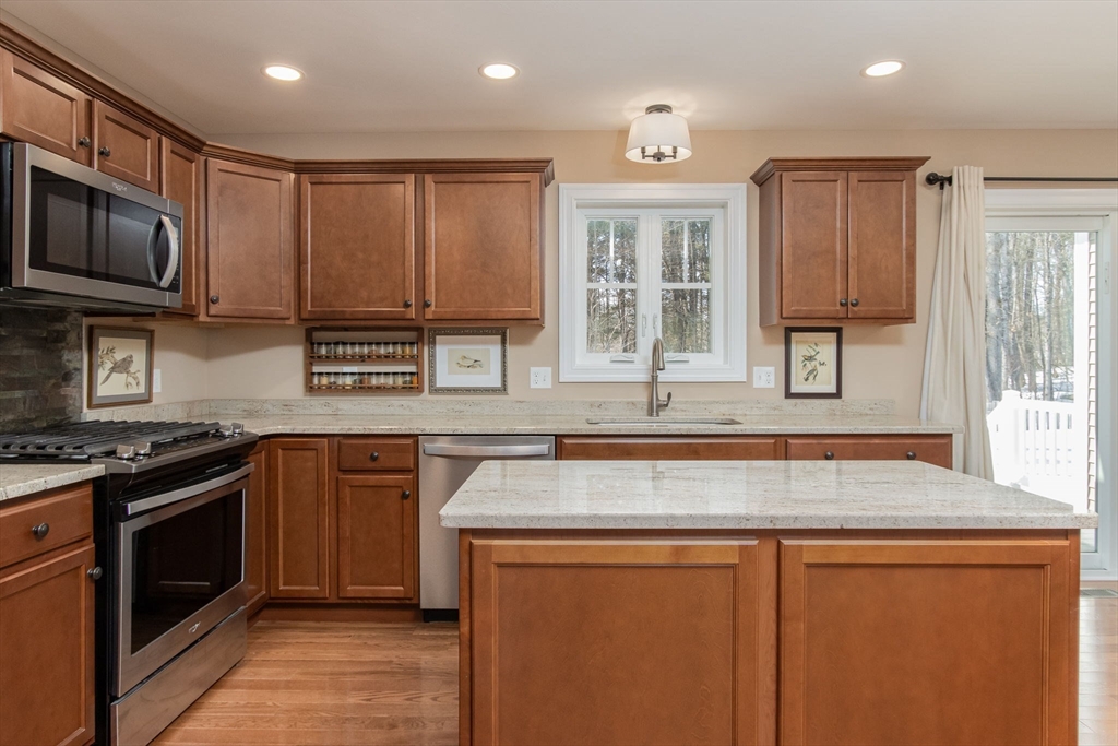 Welcome home to peaceful, effortless 1-level living in the sought-after Neighborhood at Birch Drive. Built in 2021 & impeccably maintained, this better-than-new 3 bdrm, 2 bth home offers 1,482 sq ft of sun-filled, open-concept space on a quiet cul-de-sac. Thoughtful upgrades include hardwood. & laminate flooring throughout, enhanced recessed lighting, upgraded bth stonework, prof. landscaping, 4-ft cedar fenced yard & whole-house, WiFi connected & hardwired Generac generator. Central air, on-demand hot water, town water & sewer. Private backyard retreat that will come to life in the spring with tons of flowers, mature blackberry, raspberry & blueberry bushes, plus organic garden beds. Massive, bone-dry bsmt. offers potential to nearly double living space! 2-car garage, minutes to Pepperell Center, Nashua & Rt.3, & 495. Set in a 20-home community w/nature at your doorstep, this is the kind of home buyers wait for! Turnkey, energy-efficient & thoughtfully upgraded in all the right ways.