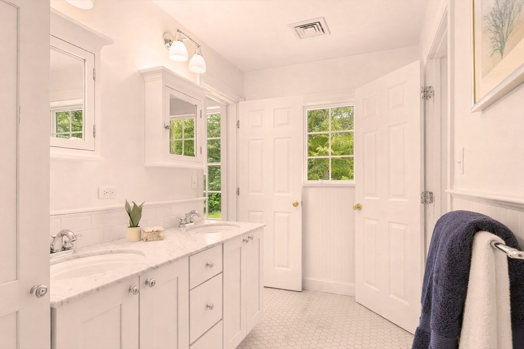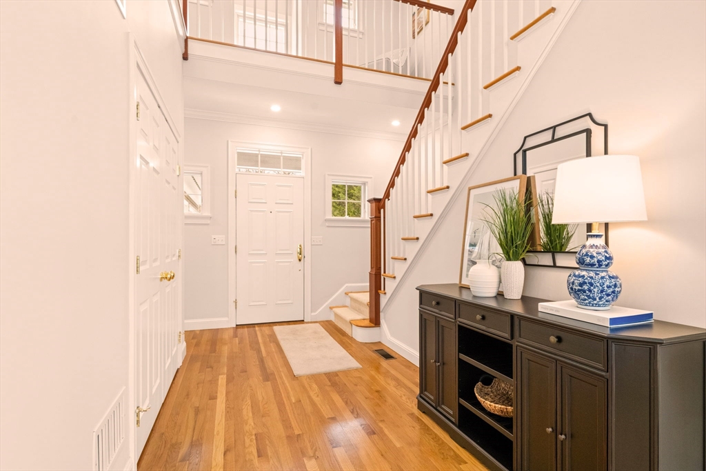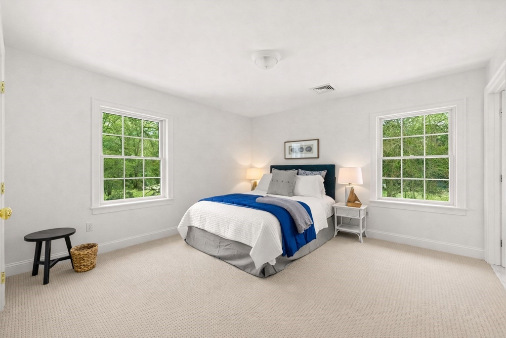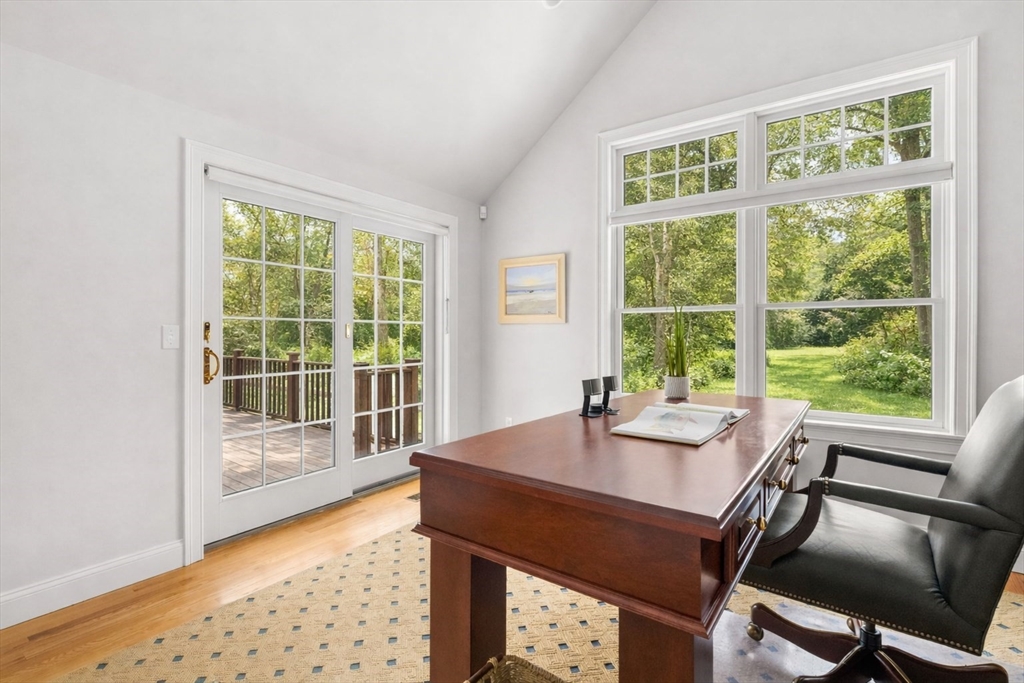 This elegant coastal colonial presides on nearly one acre of land in highly desirable Acoaxet! Dramatic two-story foyer ushers you into the heart of the home, which is a spectacular fireplaced living room with built ins, and French doors to the spacious rear deck. Open dining area extends into a chef's kitchen, with upgraded quartz countertops and stainless steel appliances. Adjacent to the kitchen is a spacious pantry/laundry, powder room, and first floor office with cathedral ceilings and French doors to the deck. Upstairs is a spacious primary suite with vaulted ceilings, walk-in closet, and spa-like bath. Two guest bedrooms share a "Jack and Jill" bath, and additional fourth bedroom has a full bath with laundry, and additional walk-in closet/bonus room. Finished lower level offers an abundance of versatile space. The home is in meticulous condition with many features and upgrades found throughout...all but minutes to the Acoaxet Club and fabulous area beaches and amenities!