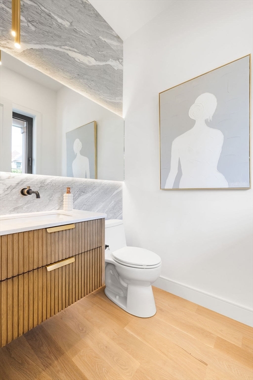 One unit left! Welcome to 1597 Centre St, Unit 1, perfectly located in Newton Highlands, less than 5 min. walk to the T stop and Crystal Lake beach. This unit features an open concept first level, offering a huge chefs kitchen with high end appliances, gorgeous custom cabinetry and a living/dining area perfect for entertaining with fireplace, in-ceiling speakers and built-in bookcases. Large euro style tilt/turn windows provide endless natural light on the solid white oak hardwood floors featured throughout. Upstairs the primary offers a spacious walk-in closet and stunning en-suite bath with radiant heat. Two additional bedrooms, a bath and dedicated laundry complete this level. The third floor provides expansive space perfect for a playroom, office and/or a 5th bedroom. The fully finished lower level provides a 4th bedroom, full bath and entertainment room. The unit comes with private outdoor space, including a patio perfect for summer nights and a heated garage wired for EV.