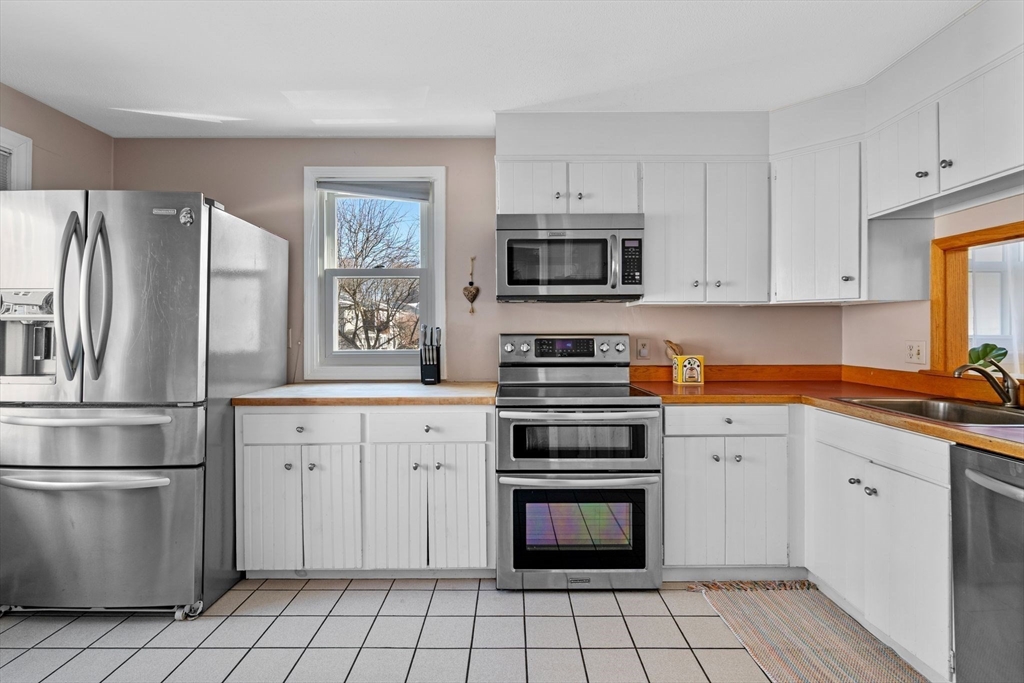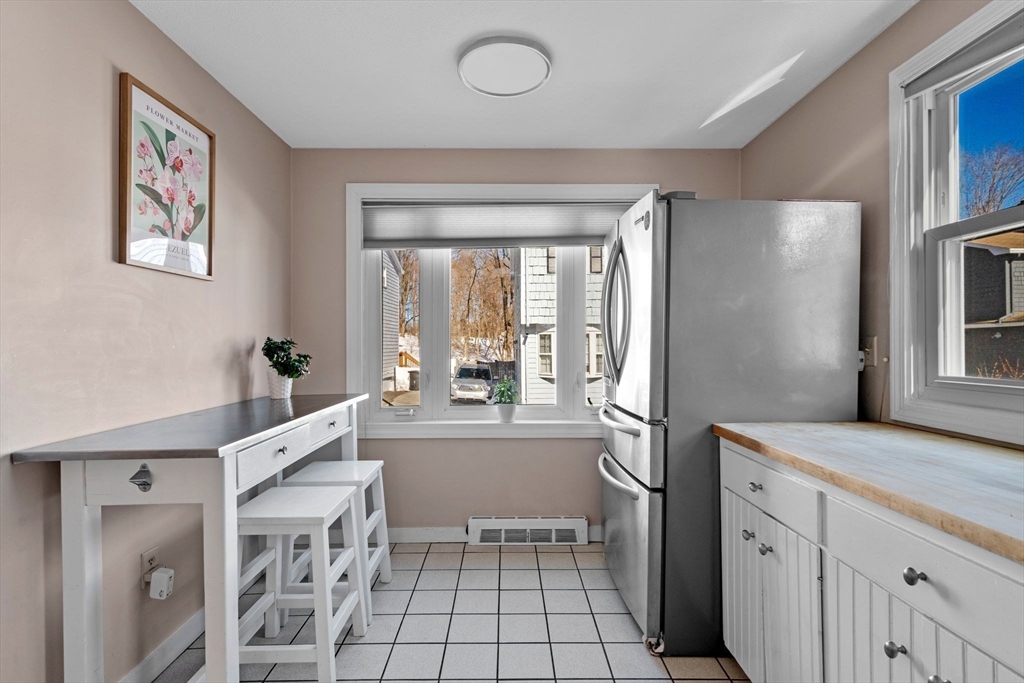 Tucked away on a charming private street just a half mile from Marblehead’s historic Old Town, this sun-filled single-family home offers a rare opportunity to enjoy coastal living with comfort and convenience. The main level features a bright open layout with hardwood floors, a classic fireplace, and seamless flow between the living and dining areas. A sliding glass door leads to a private back deck overlooking a beautifully fenced yard, perfect for relaxing or entertaining. Upstairs are three comfortable bedrooms and a stunning fully renovated bath with elegant tilework, custom vanity, and modern fixtures. Additional highlights include a brand new HVAC system with central air, a private paved driveway for two cars, and a new outdoor storage shed. The dry basement with high ceilings offers excellent potential for future finished living space. A wonderful opportunity to own a move-in ready home close to shops, restaurants, and Marblehead Harbor. Moments to beaches, parks, and downtown.