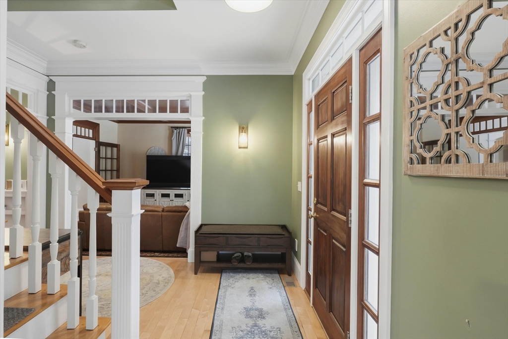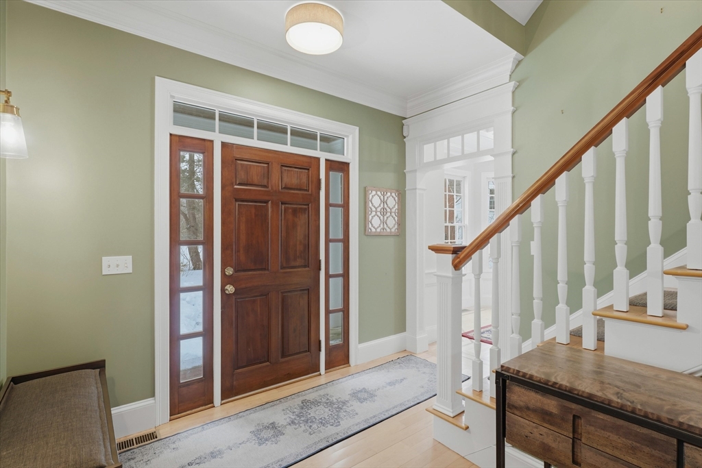 Ideally located just minutes from Newburyport’s shops, restaurants, & waterfront. Circa 1998 custom-built home offers exceptional quality and thoughtfully designed layout ideal for entertaining & working from home. Architectural highlights include extensive built-ins, coffered ceilings, maple floors w inlaid cherry border, & bay windows, 11-foot ceilings, & fine millwork throughout. The home provides a rare balance of privacy & convenience, combining a country-like setting with close proximity to the beach & 2.5 miles to downtown Newburyport. Designed for seamless indoor-outdoor living, the layout flows naturally, featuring a new gourmet kitchen, screened porch, and elegant dining room w/ a wet bar. A dedicated home office. The primary suite offers a spacious bath with dual vanities, new tile shower, a 6' soaking Jacuzzi style MTI tub, & 2 walk-in closets. Additional potential includes a walk-up third floor ready for expansion and a finished lower level for an exercise room.