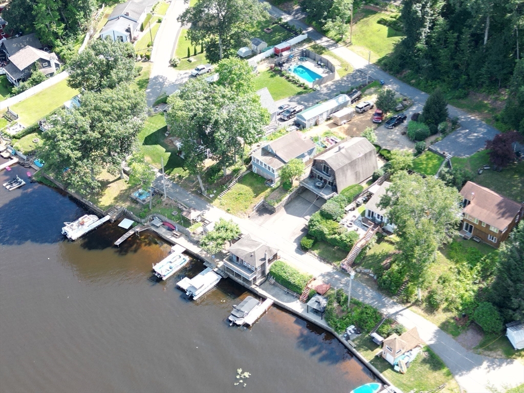 Very unique waterfront property on fully recreational Lake Wickaboag featuring a well-maintained 3-bedroom, 1.5-bath home with panoramic lake views. The main home offers an open-concept layout with hardwood floors, a fully applianced kitchen with pantry, and a dining area slider that leads to a deck overlooking the lake—perfect for entertaining or enjoying peaceful mornings by the water. The living room features abundant natural light, creating a warm and inviting atmosphere. The main bedroom includes a slider to a private deck with serene lake views, while the additional bedrooms are generously sized and offer flexibility for family, office, or guest space. A separate boathouse sits directly on the water and includes a kitchen, bath, bedroom, and sliders to a deck with private dock access. The boathouse offers potential for an ADU, guest quarters, or extended living (buyer to verify). Additional highlights include a 2-car garage, ample off-street parking, passing title 5 in hand
