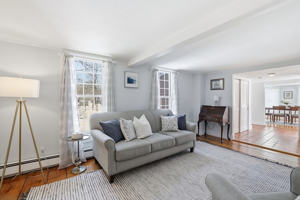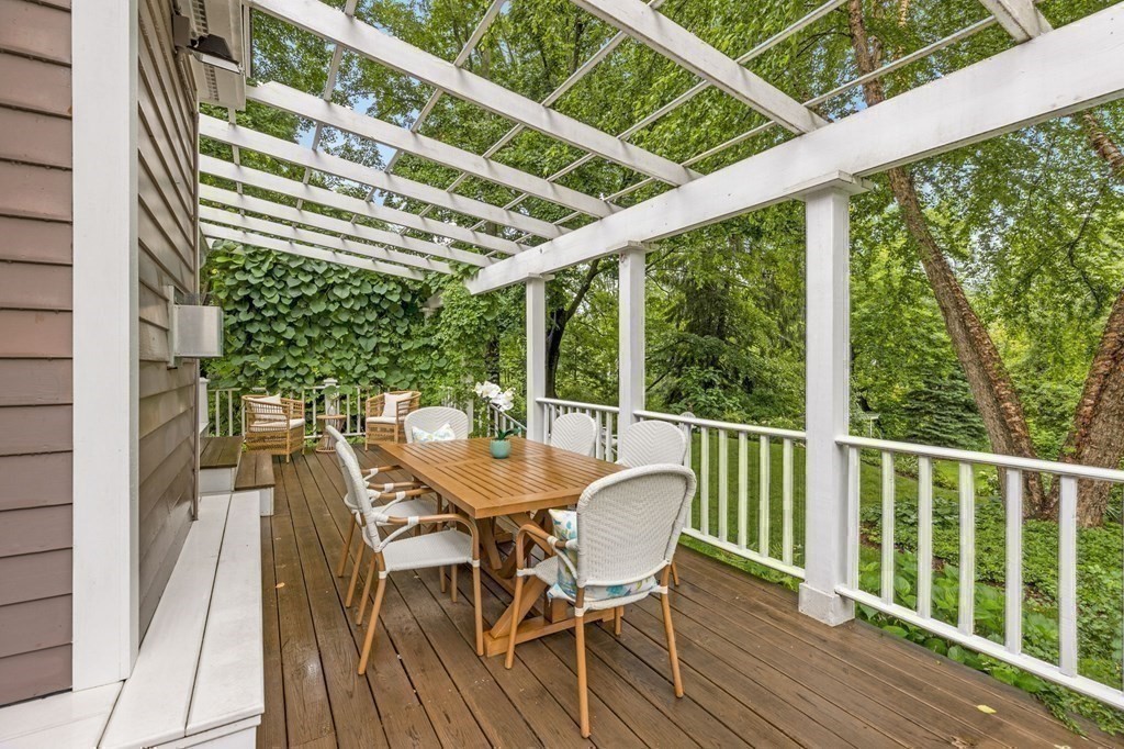 Exceptional opportunity in one of Holliston's most sought after, cul-de-sac, downtown neighborhoods! Surrounded by a lush landscaped yard, this meticulously cared for quality-built Antique exudes character & charm. The BRIGHT SUNLIT kitchen & AIRY open floor plan offers an ideal layout! Open the doors off the stunning white kitchen to enter a private backyard oasis. Relaxing on the pergola covered deck overlooking the expansive yard will feel like you’re living on the countryside. 3 spacious bedrooms upstairs w/2 full baths, featuring a primary w/cathedral ceiling, closet system, & skylight in the ensuite bath. The 4th bedroom on the 1st floor offers a versatile space/ office. Gorgeous wide pine floors of the past are met w/ luxuries of the present including many updates, plantation shutters, gas fireplace, SubZero, Wolf & Bosch appliances! Plenty of storage space in the Pristine Basement! WALK to The Rail Trail, Lake Winthrop, cafes, shops, schools, playground, & more! Move right in!