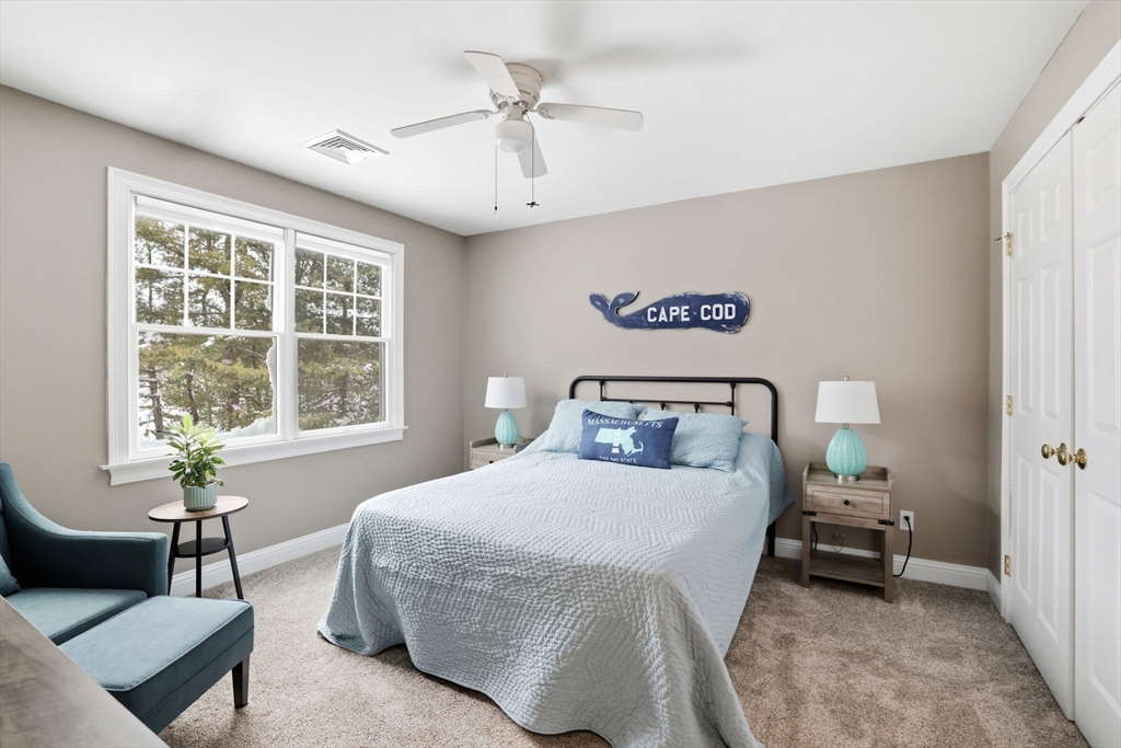 Set at the end of a private cul-de-sac in the sought-after Residences on Tihonet Pond, this New England–style home offers cranberry bog views and easy living surrounded by nature. Start mornings on your covered porch and spend summers by the heated saltwater pool. Hardwood floors run through the sunlit main level, where the kitchen with pantry opens to a new composite deck for seamless indoor-outdoor flow. The dining area leads to a screened mahogany porch, perfect for warm evenings and cozy conversations. A fireplaced family room, separate living room, and half bath complete the first floor. Upstairs, the primary suite features a custom built closet and en suite full bath with a private balcony, plus two additional bedrooms and a full bath. Fresh paint, new carpet, updated appliances, and two new decks make it move-in ready, with trails, pond/boathouse access, and kayak storage just outside your door. Its time to love where you live!