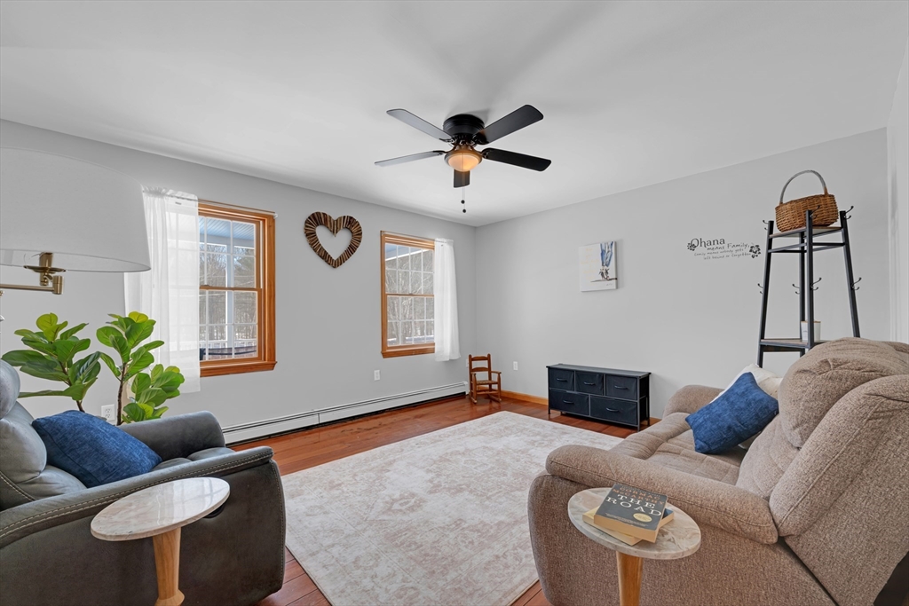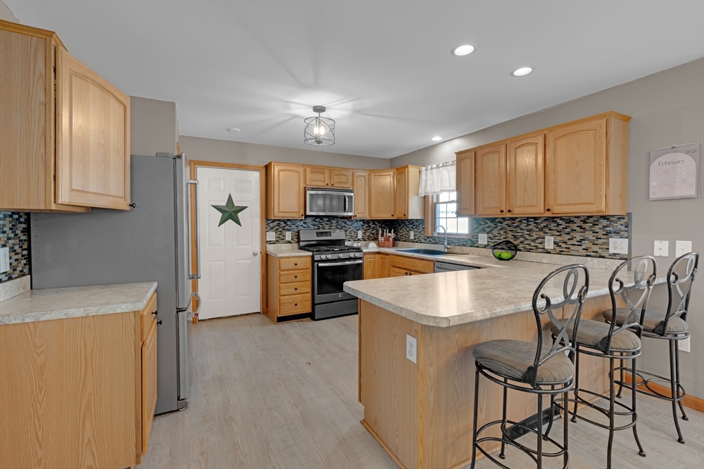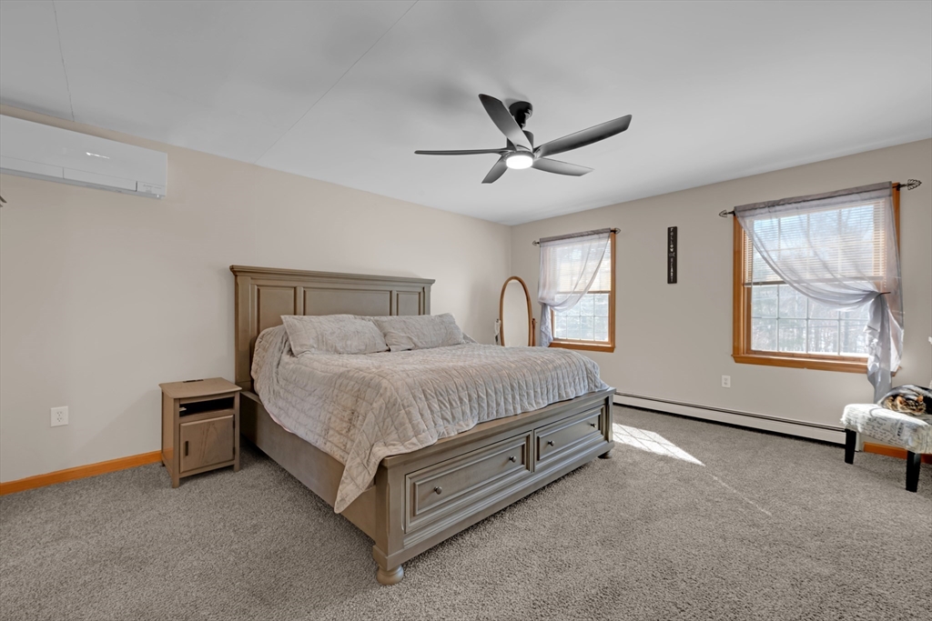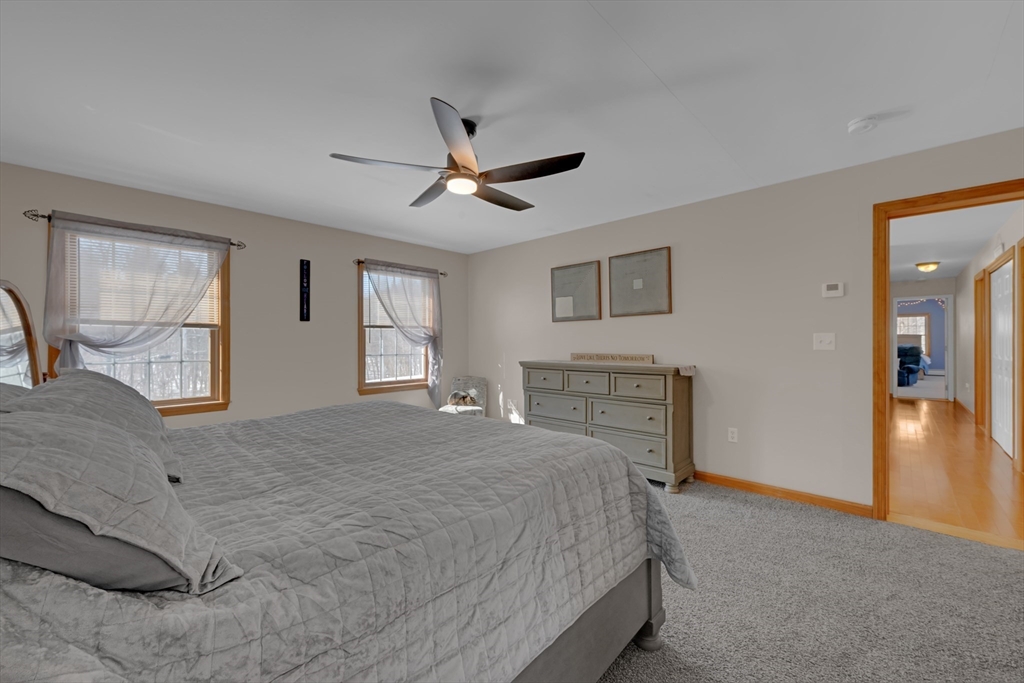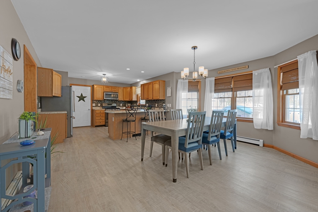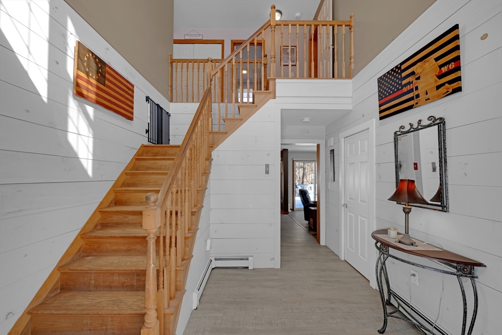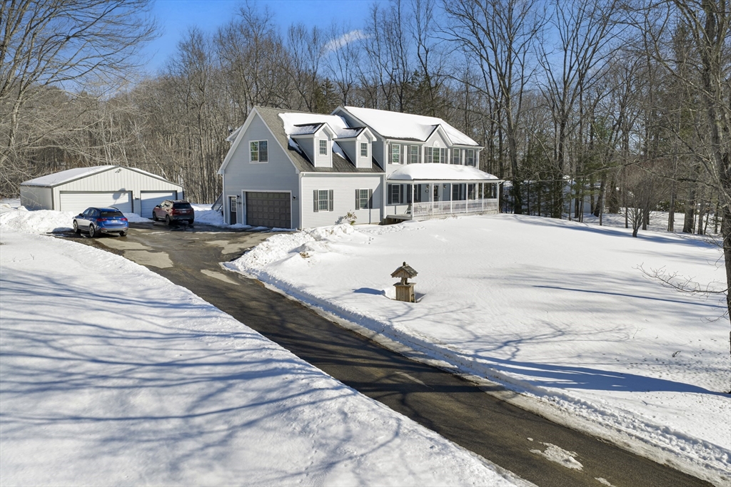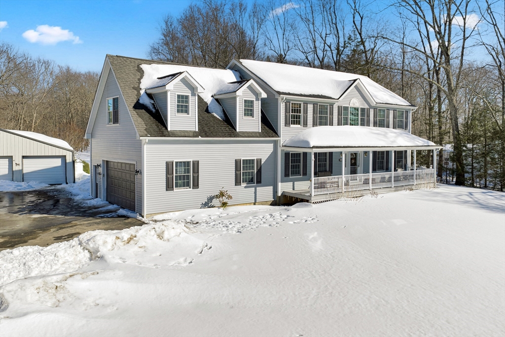 Welcome to 80 New Braintree Road in North Brookfield, a well-maintained 4-bed, 2.5-bath home set on .97 acres in a quaint & peaceful town. Offering 2,889 sq feet of living space, this property provides a flexible floor plan suitable for a variety of lifestyles. The main level features an open-concept layout with a welcoming shiplap entryway and spacious living areas ideal for everyday living. Enjoy scenic sunset views from the front farmer’s porch, adding to the home’s country charm.The fourth bedroom includes its own private entrance & offers excellent potential for an in-law setup, guest space, or home office. Additional highlights include a large, private yard and exceptional garage space with a 2-car attached garage plus a heated detached garage with capacity for up to 8 vehicles, perfect for hobbyists or additional storage. Conveniently located in a quiet setting while still accessible to local amenities, this property offers a rare combination of privacy, space, and versatility.