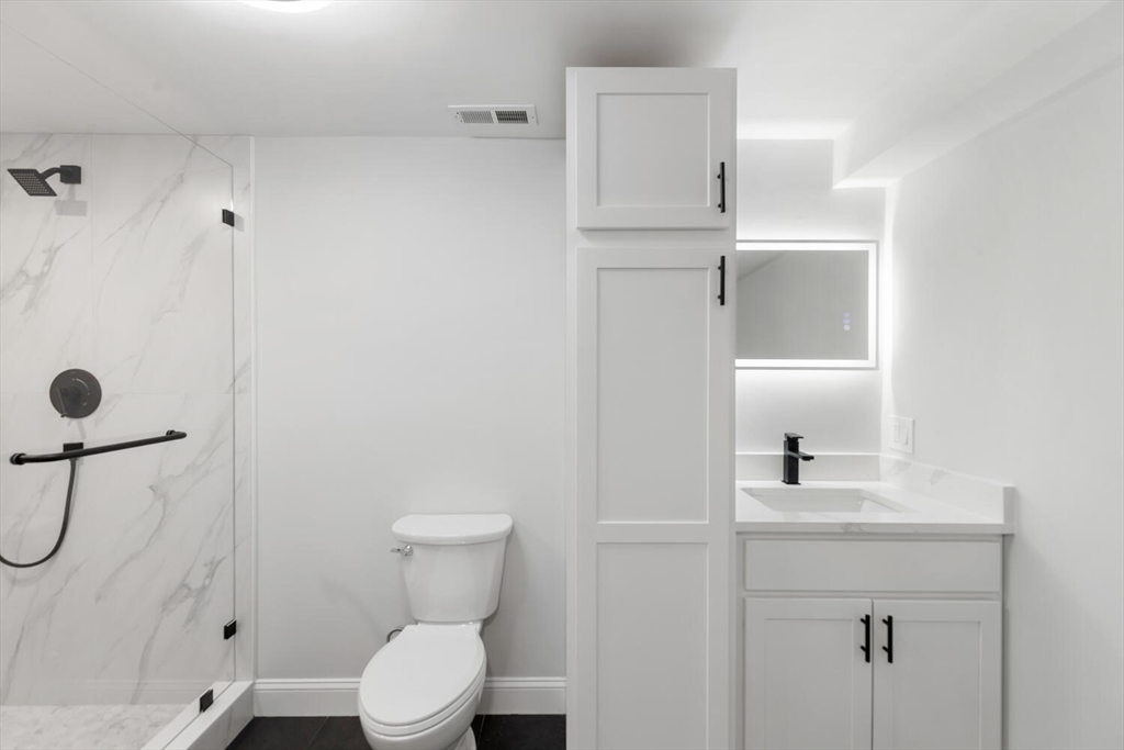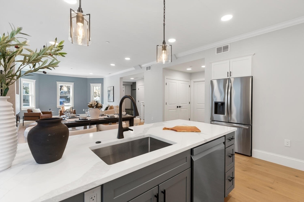 Welcome to 227 Highland Avenue unit-1 Somerville.This beautiful Multi-level condominium offering modern design,abundant natural light,modern finishes throughout and commuter convenience.This stunning 3-bedroom,3-full bath residence features an open-concept layout perfect for both everyday living and entertaining.The spacious living area showcases wide-plank hardwood floors,recessed lighting,sleek fireplace with elegance creating a warm and inviting atmosphere.The contemporary kitchen is highlighted by a large quartz island,stylish pendant lighting,stainless steel appliances,custom cabinetry,overlooking the living&dining room area.The primary suite features en-suite bath with glass enclosed shower with walk-in closet,nice size 2nd bedroom&full bath complete the main level.The beautifully finished lower level expands the living space with a spacious family room,3rd bedroom,&full size bath.This level also features a stylish wet bar,beverage refrigerator.1 parking space and storage unit.
