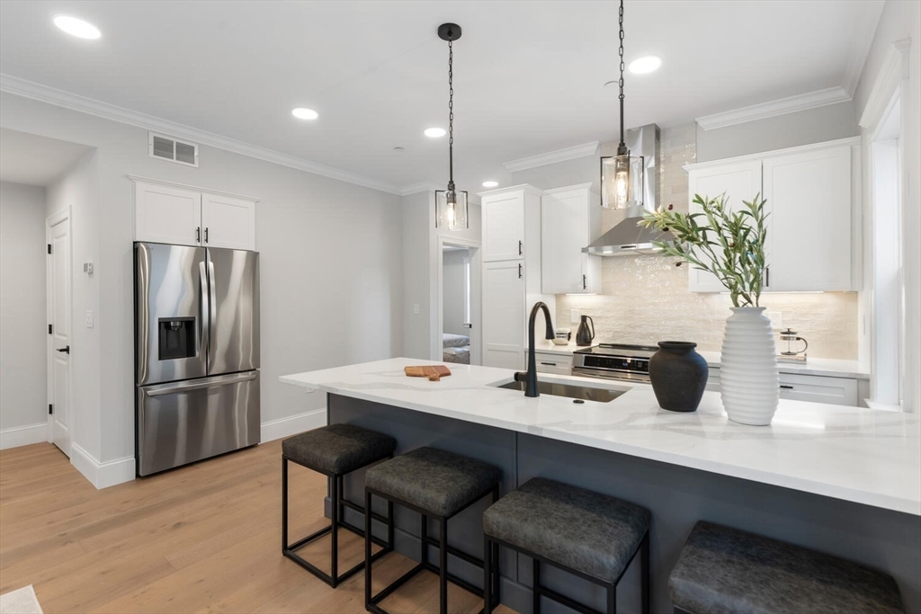 Welcome to 227 Highland Avenue unit-2 Somerville.This beautifully renovated 2nd floor unit is a perfect blend of modern finishes, space with 2 bedrooms,2 full baths and commuter convenience.This stunning 2-bedroom,2-full bath residence features an open-concept layout perfect for both everyday living and entertaining.The spacious living area showcases wide-plank hardwood floors,recessed lighting,sleek fireplace with elegance creating a warm and inviting atmosphere.The contemporary kitchen is highlighted by a large quartz island,stylish pendant lighting,stainless steel appliances,custom cabinetry,overlooking the living&dining room area.The primary suite features en-suite bath with glass enclosed shower with walk-in closet, nice size 2nd bedroom & full bath.Enjoy your own private balcony.1 parking space&storage unit.Conveniently located in the Spring Hill neighborhood,Gilman Square Green Line Station,Davis Sq& Sullivan Square ,Assembly Row, Bike Path and just minutes to Downtown Boston.