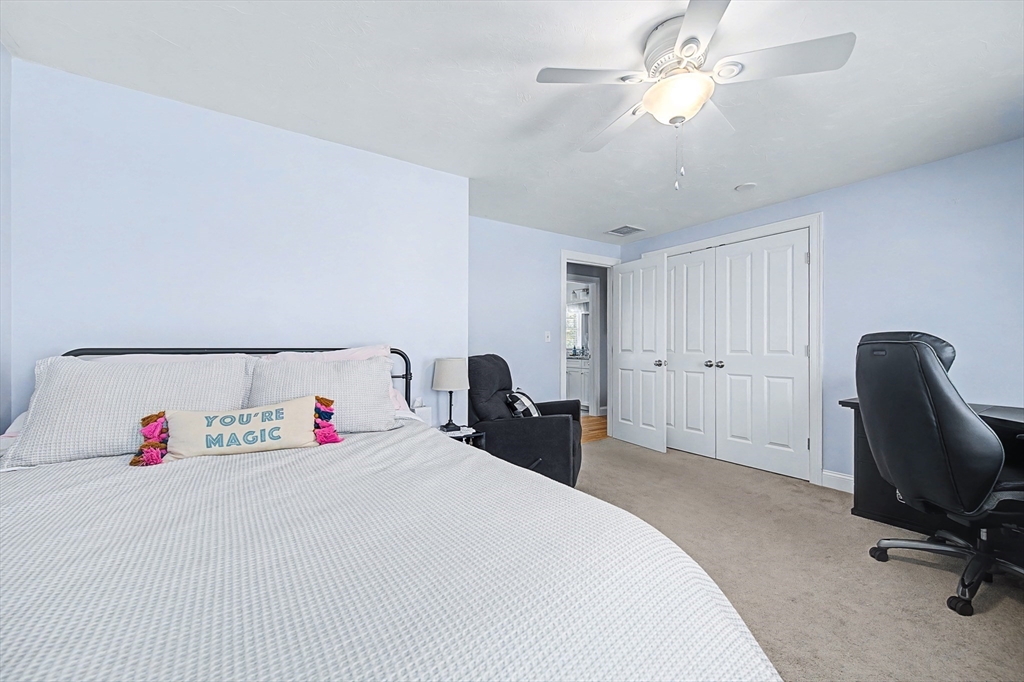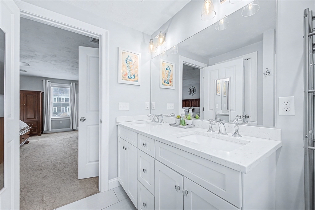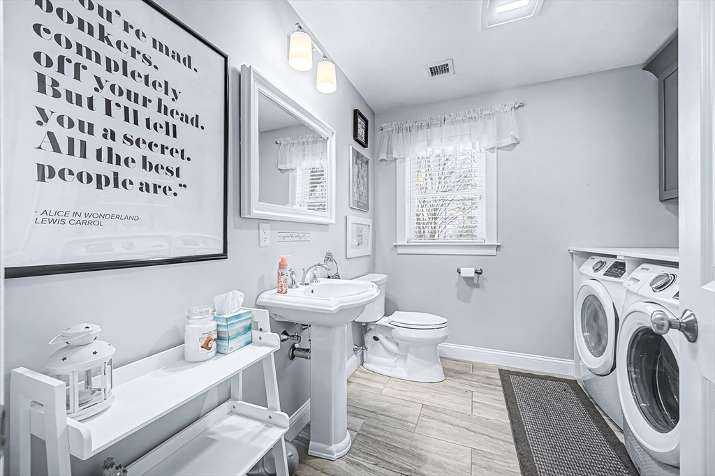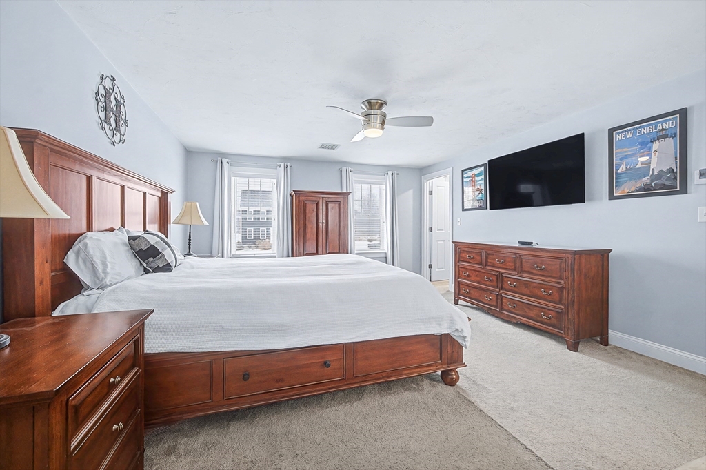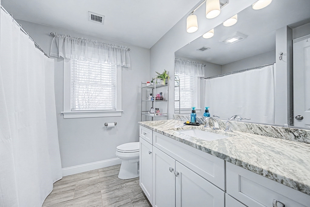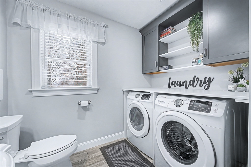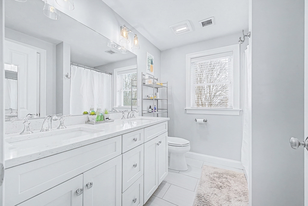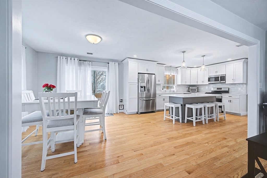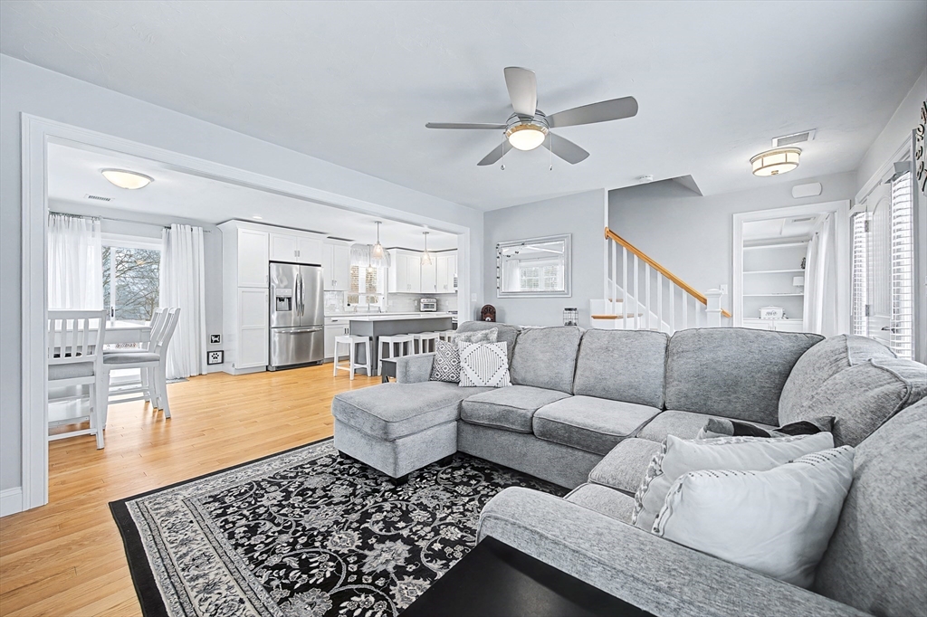 Beautiful Colonial in highly desirable Touisset Woods, a premier seaside subdivision. This well-designed home features a designer kitchen with upgraded cabinetry, pantry with rollouts, oversized island, stainless steel appliances, quartz countertops, tiled backsplash, and recessed lighting. Hardwood floors throughout the main level, stairs, and second-floor hallway. The open layout offers an eat-in dining area, formal dining room with crown molding and tray ceiling, and a spacious living room with natural gas fireplace. Upstairs includes two generous bedrooms and a primary suite with two walk-in closets and a private bath with granite countertops and double vanity. Many closets feature custom California Closet systems for exceptional organization. Custom mudroom with built-in bench and large closet. The lower level offers additional finished space. Professionally landscaped yard with irrigation, fully fenced vinyl backyard, and closed storage/shed