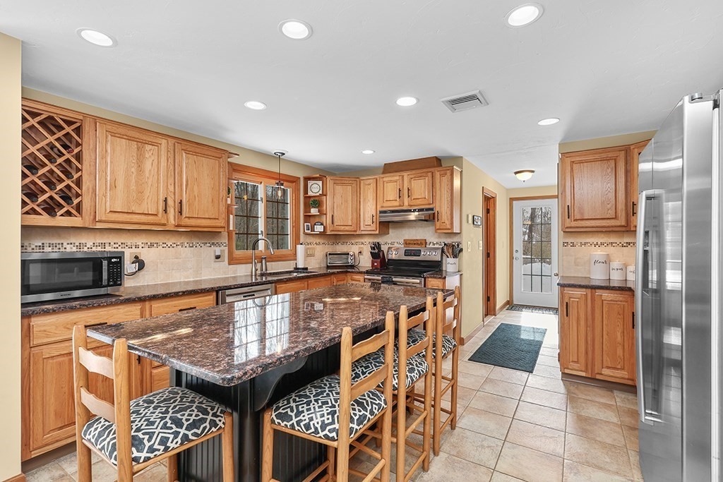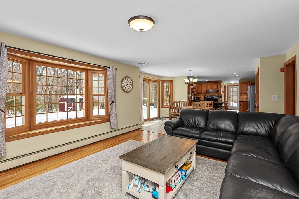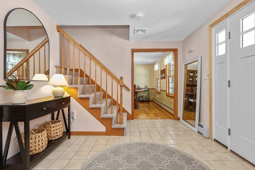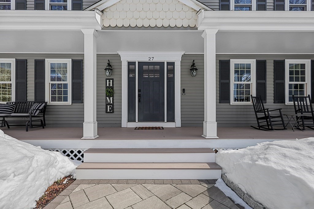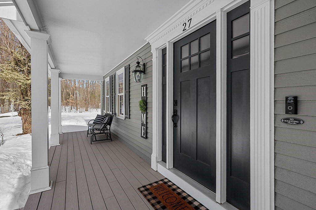 Welcome Home to 27 Liberty Hill in one of Blackstone's most desirable neighborhoods! This UPDATED TURN-KEY Colonial offers an ideal floor plan w/ 3080sf including a finished lower level, perfect entertainment space designed with pool table, sitting area & game space. Relax on the charming front porch or 3-tier patio overlooking your professionally landscaped 2.25-acre lot creating the perfect blend of privacy & outdoor living. Meticulously maintained w extensive upgrades for true peace of mind: 2019 roof, New Harvey windows '12. Updates since '23 new well tank, water filtration & radon mitigation systems, new heat pumps/AC ($25K) & generator hookup. Exterior & Interior painted, new front door, new vinyl porch, PVC posts & paver walkways ($8K). Interior updates: Impeccable Hardwood & Hickory wood floors, new designer lighting, new faucet & toilets, new ceiling fans & so much more! See Feature Sheet! Move right in & enjoy comfort, style & quality in this exceptional home & neighborhood!
