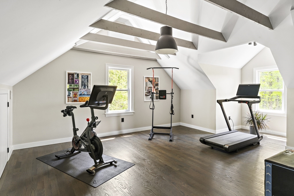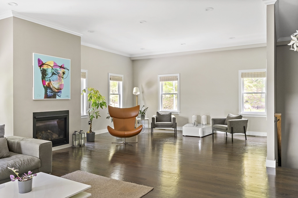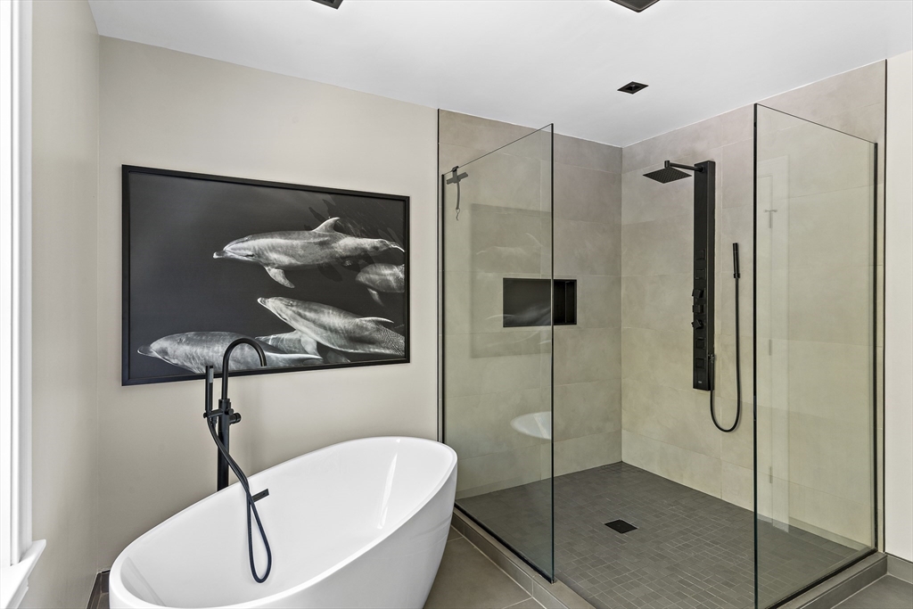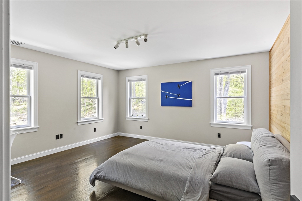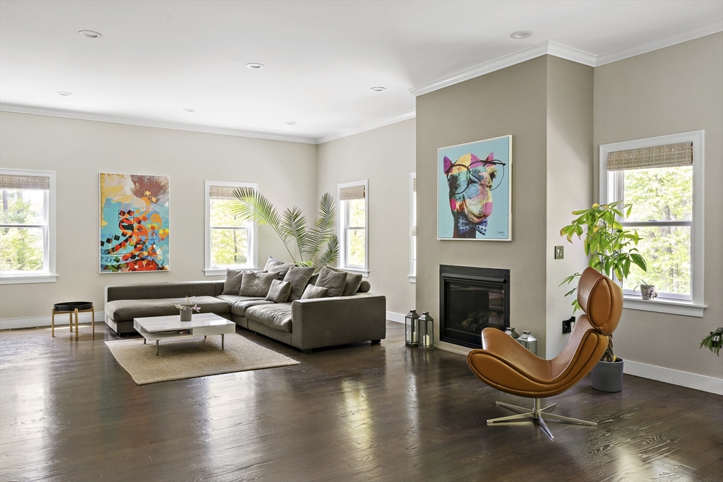 Modern luxury meets wooded seclusion in this young home perched upon a hill w/ dramatic views & 4+ acres of privacy. This minimalistic sanctuary was renovated in 2023, & offers 3 floors of living space & an open-concept layout. 1st floor boasts 10-ft ceilings, tons of natural light & HW floors. Updated kitchen w/ sleek cabinets, quartz countertops w/ waterfall island & SS appliances. Oversized 31’ x 26’ family room is equipped w/ gas fireplace & is a versatile space. Primary suite beckons you to relax-- imagine yourself cozied up by the fireplace enjoying the woodland views or soaking in the tub overlooking the lush backyard. All other bdrms on this level are oversized; family & guests can have their own retreat. All bathrooms renovated w/ designer finishes. Finished attic adds over 900 sq. ft. of usable space w/ 2 distinct rooms. Finishable basement perfect for storage.Yard is your playground; host a BBQ, unwind in the hot tub, or explore groomed trails. Convenient location!