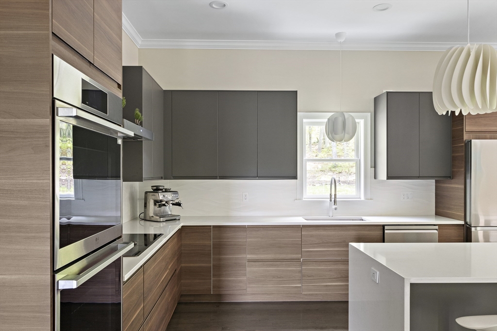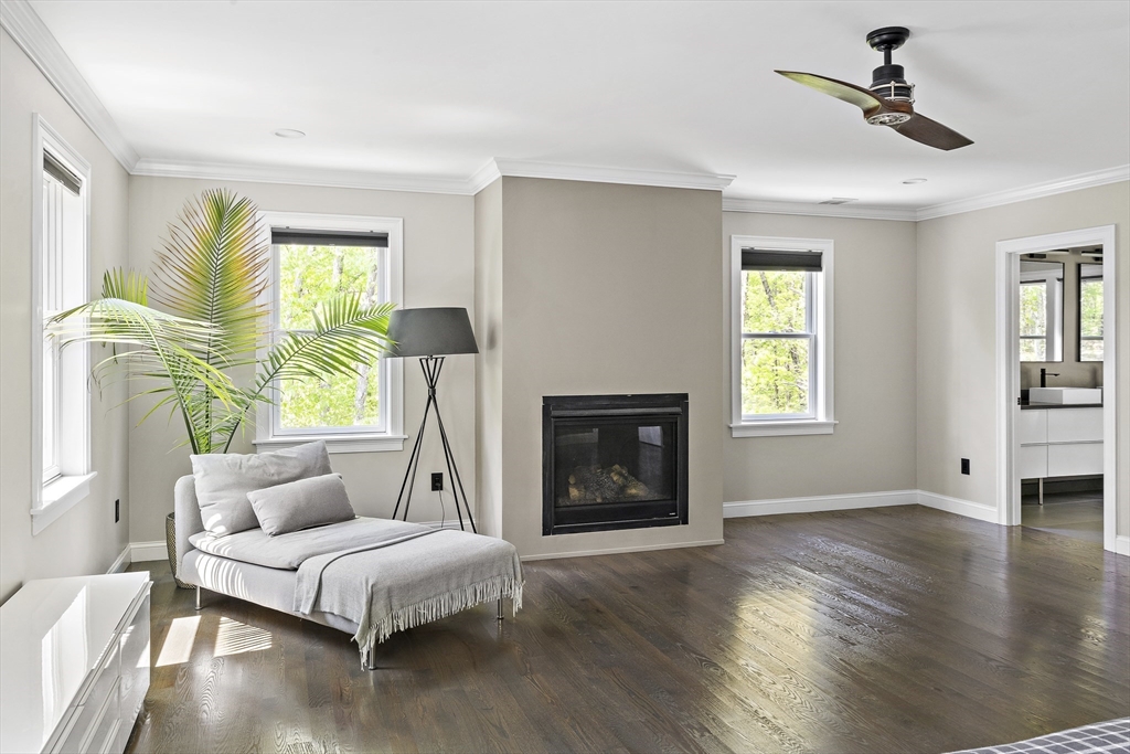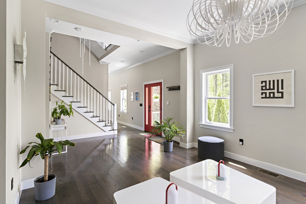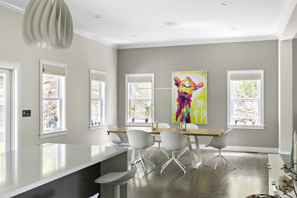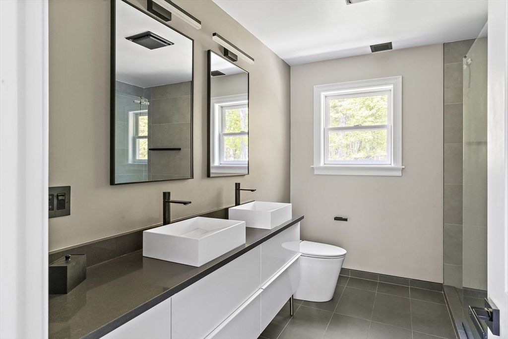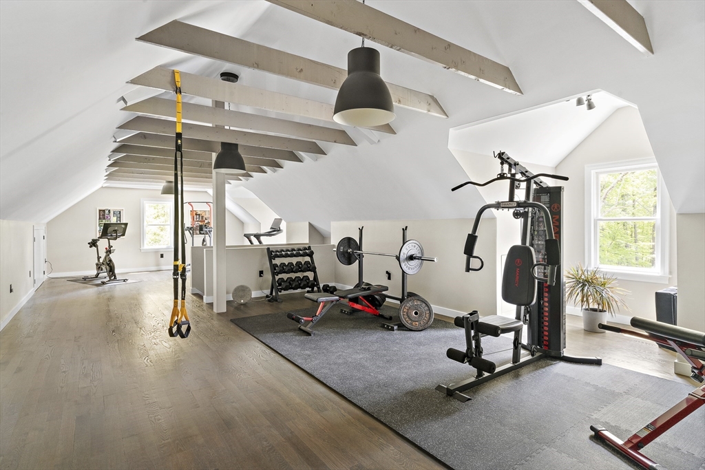 Modern luxury meets wooded seclusion in this young home perched upon a hill w/ dramatic views & 4+ acres of privacy. This minimalistic sanctuary was renovated in 2023, & offers 3 floors of living space & an open-concept layout. 1st floor boasts 10-ft ceilings, tons of natural light & HW floors. Updated kitchen w/ sleek cabinets, quartz countertops w/ waterfall island & SS appliances. Oversized 31’ x 26’ family room is equipped w/ gas fireplace & is a versatile space. Primary suite beckons you to relax-- imagine yourself cozied up by the fireplace enjoying the woodland views or soaking in the tub overlooking the lush backyard. All other bdrms on this level are oversized; family & guests can have their own retreat. All bathrooms renovated w/ designer finishes. Finished attic adds over 900 sq. ft. of usable space w/ 2 distinct rooms. Finishable basement perfect for storage.Yard is your playground; host a BBQ, unwind in the hot tub, or explore groomed trails. Convenient location!