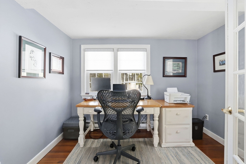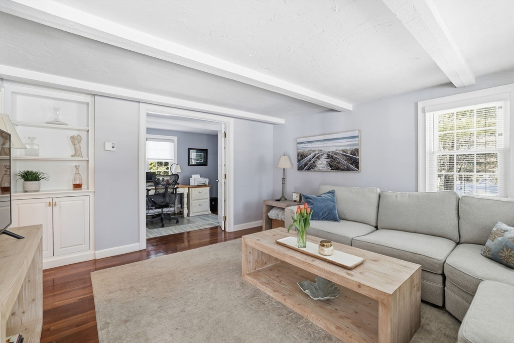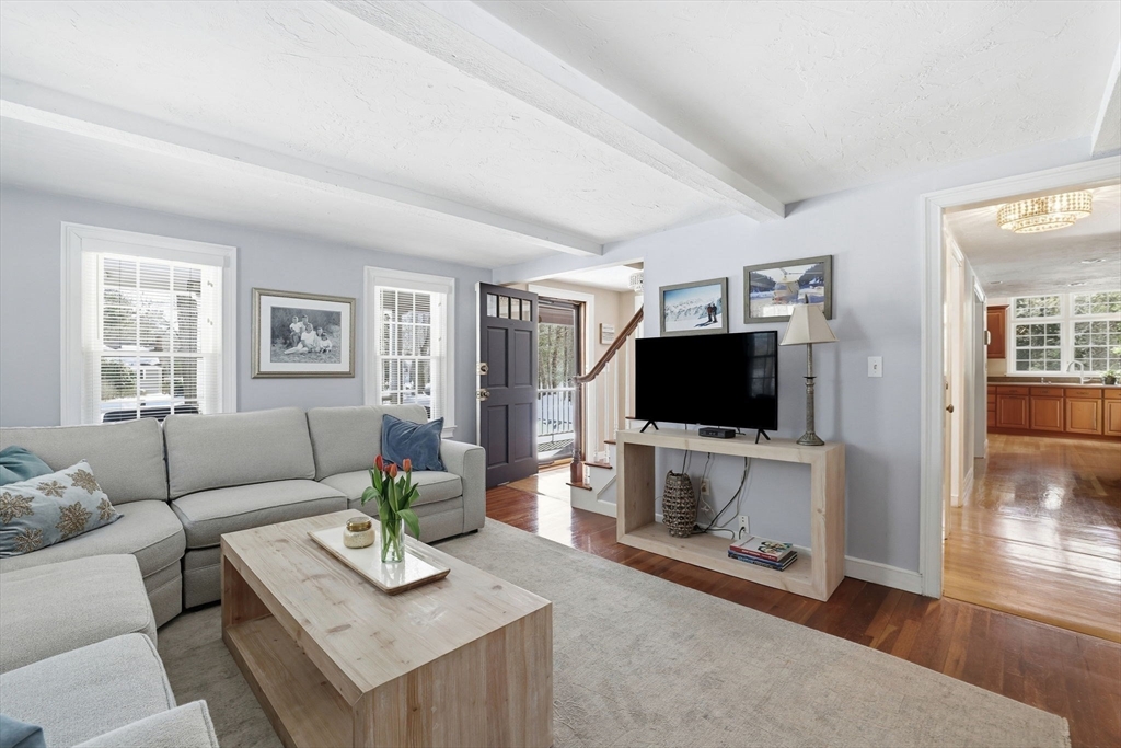 A farmer’s porch welcomes you to this classic four-bedroom Colonial, located in one of Norwell’s most sought-after neighborhoods and set on a private 1.23-acre lot. Sunlight fills the open floor plan, highlighted by a gourmet kitchen featuring stainless steel appliances, granite countertops, and a center island.The stunning family room offers cathedral beamed ceilings and a fireplace, opening directly to a low-maintenance, entertainment-sized deck — perfect for indoor-outdoor living. The first floor also includes a private office for dedicated workspace, formal living and dining rooms, and a convenient mudroom off the kitchen.Upstairs, the primary bedroom includes a half bath, along with three additional well-proportioned bedrooms and a full bath. The lower level features a playroom, providing flexible space for recreation or hobbies.The backyard oasis is designed for relaxation & entertaining, complete with a stone patio, outdoor fire pit, and bar shed— the perfect place to unwind.