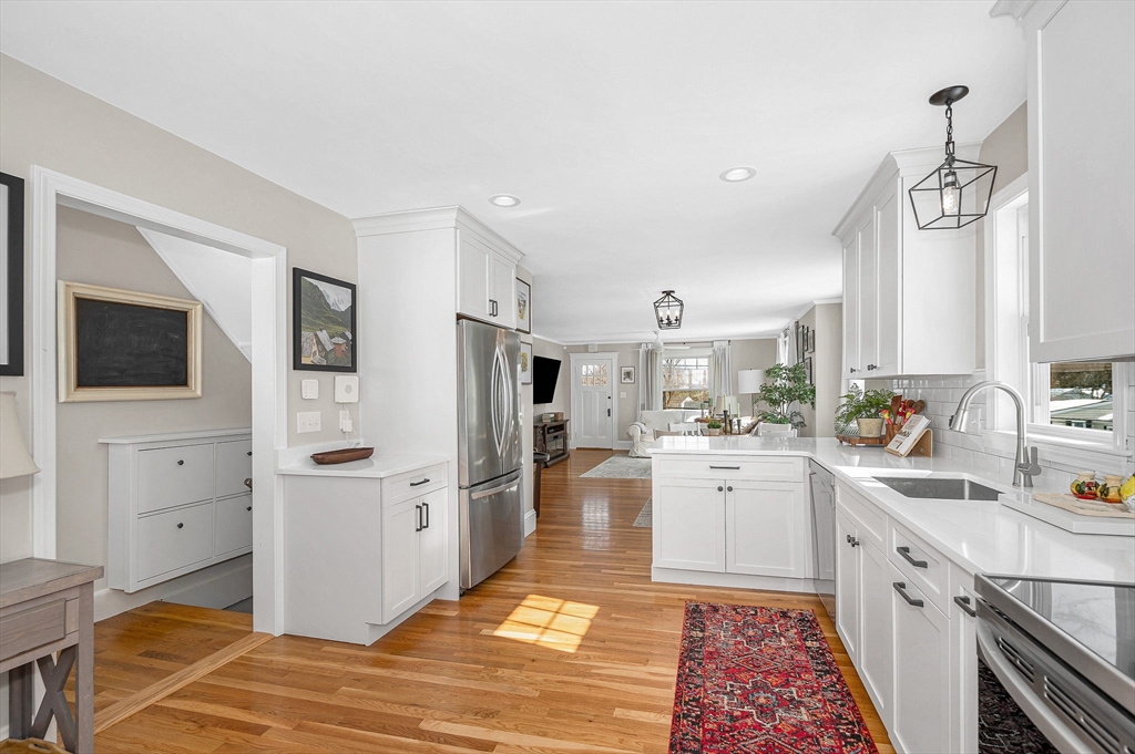 An opportunity like this in Reading does not come around often! Situated atop a high knoll creating peace and privacy, this quaint and inviting bungalow has extensive updates throughout. The gleaming hardwood floors and fine moulding express quality in craftsmanship. The first floor offers a newly renovated eat-in kitchen with new cabinetry, quartz countertops and stainless appliances. The kitchen opens to a dining room and flows seamlessly to the living room. A built-in window seat adds charm and a cozy place to curl up with a book. Also on the first floor are two bedrooms and a full bathroom. On the second level you'll find your own private sanctuary - the spacious main bedroom with skylight and a full bathroom. The landscaped yard has an abundance of flowering perennials. In the warmer months enjoy the front farmers porch or picturesque backyard from the stone patio. A convenient location, a one car garage, parking for 5 cars and all the perks Reading has to offer.