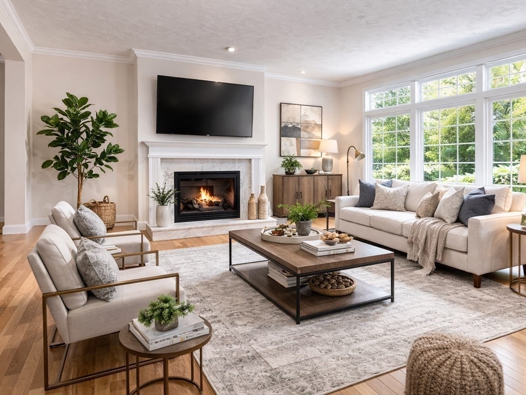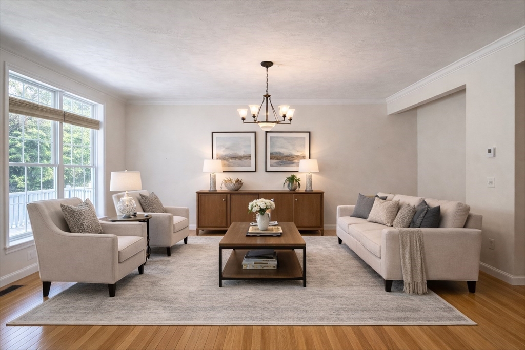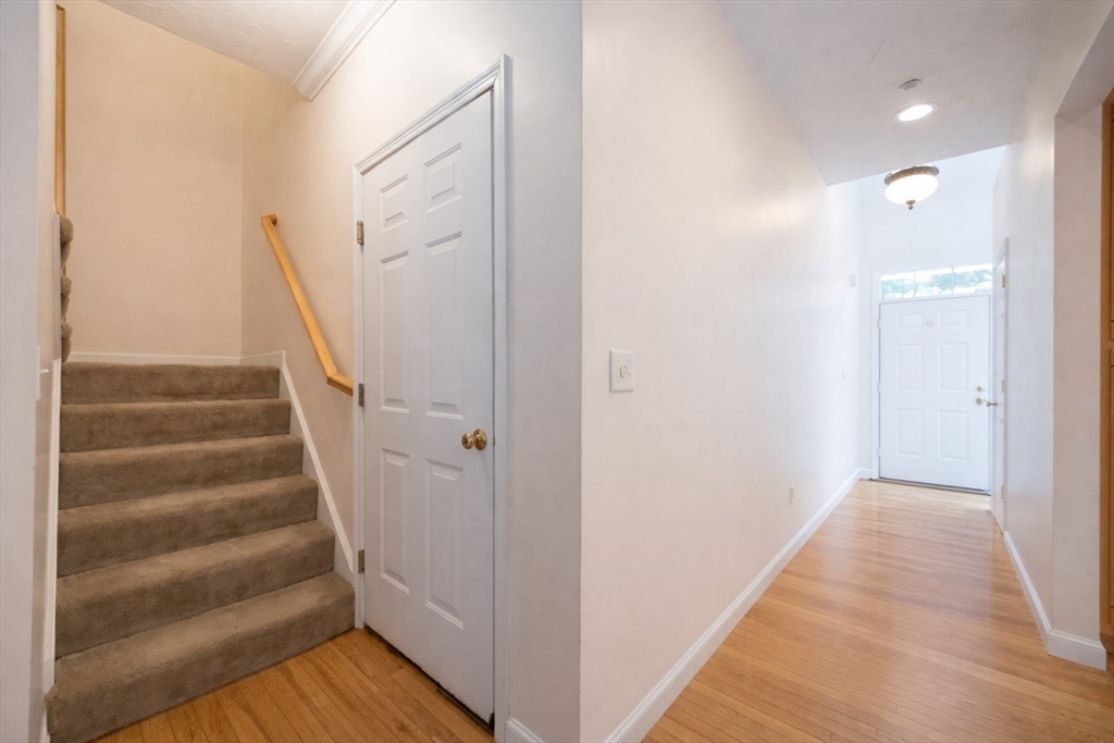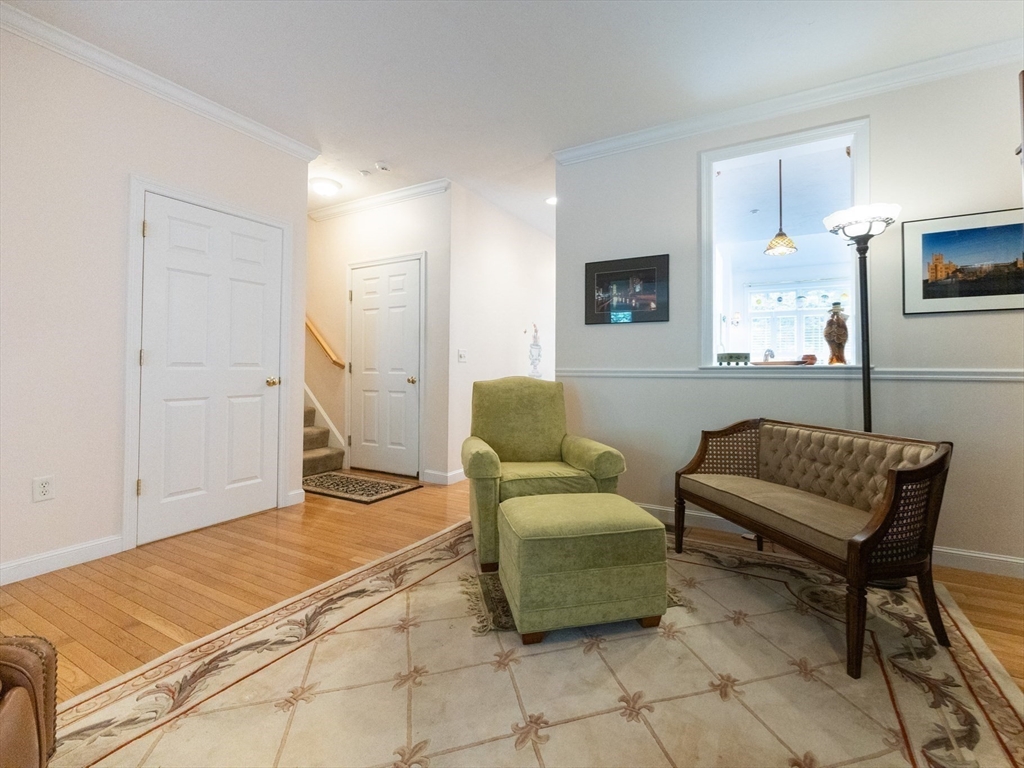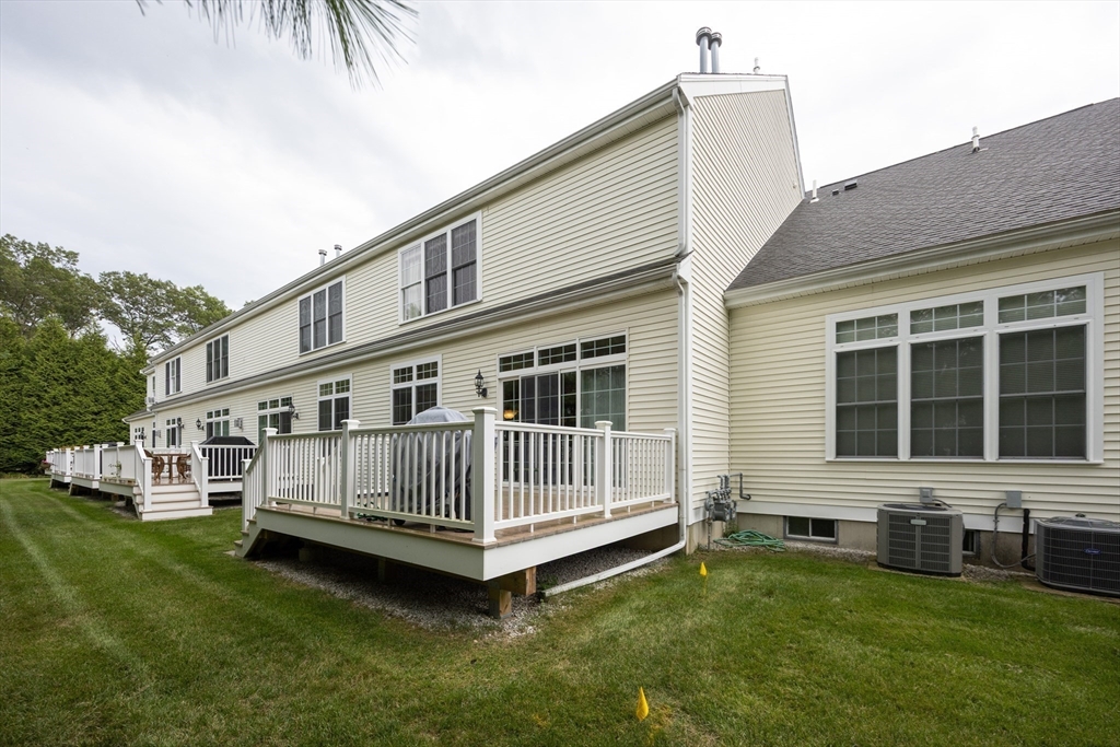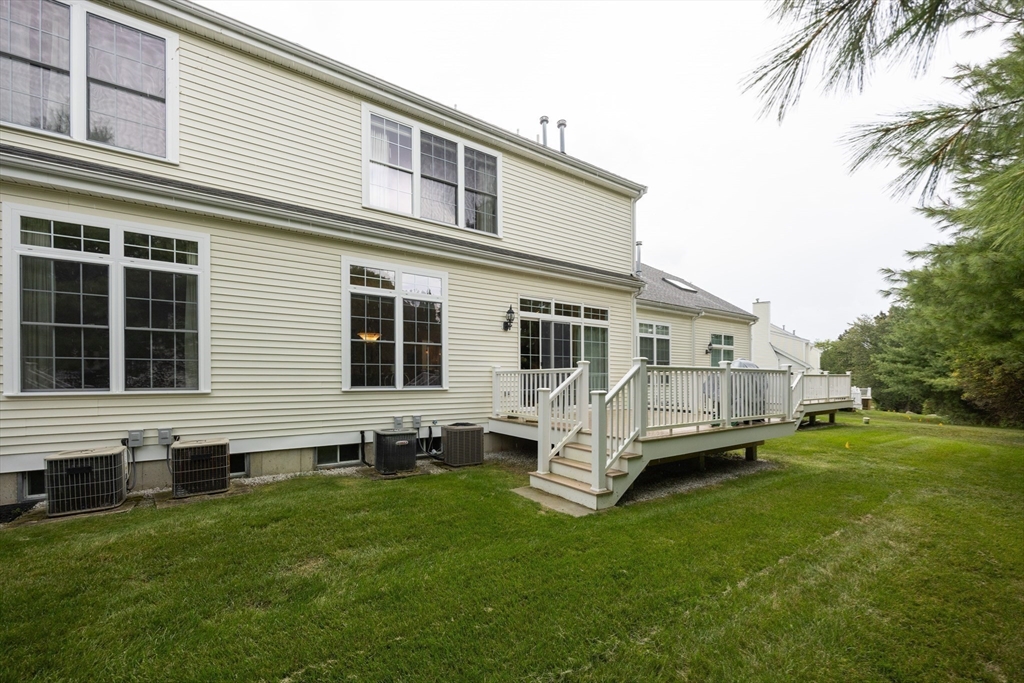 Impeccably maintained townhouse offering approximately 2,280 sq ft of refined living space with two bedrooms and two-and-a-half baths. A gracious foyer opens to a sunlit living room featuring hardwood floors, a gas fireplace with marble surround, and sliding doors to a private composite deck. The open design provides seamless flow for both everyday living and entertaining. The expansive primary suite showcases vaulted ceilings, generous closet space, and a well-appointed bath with jetted tub and shower. A second bedroom offers its own full bath and ample storage. Additional amenities include central air, gas heating, 200-amp electrical service, and an unfinished lower level with cedar closet and framed areas for potential expansion. An attached one-car garage adds convenience and storage. Ideally located near shopping, dining, commuter routes, and adjacent to scenic conservation land, this residence offers comfort, quality, and move-in readiness.