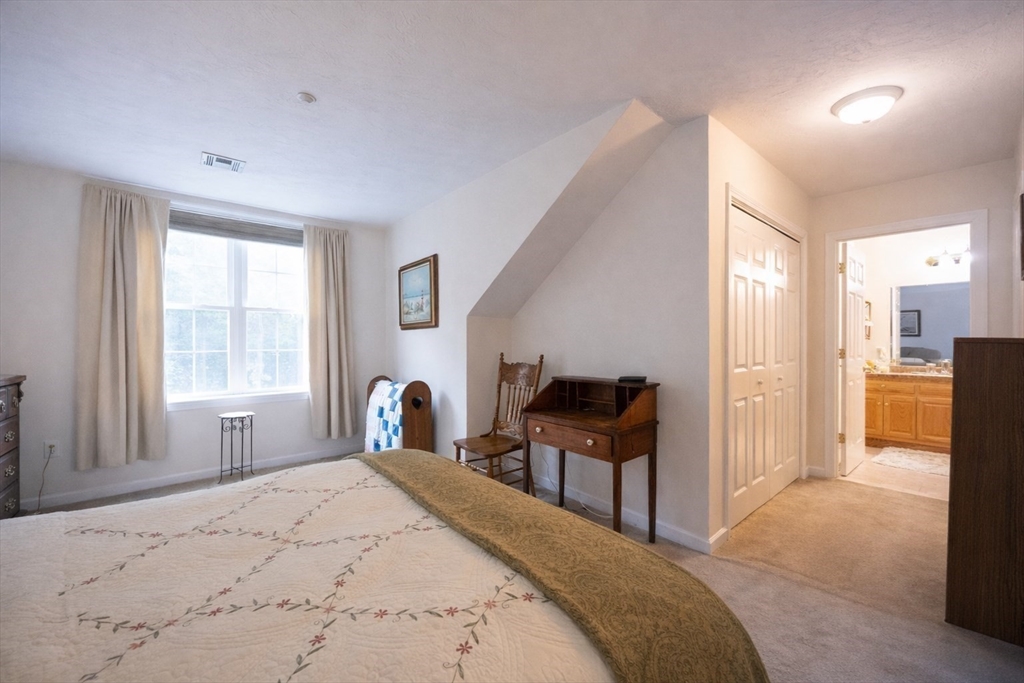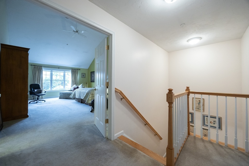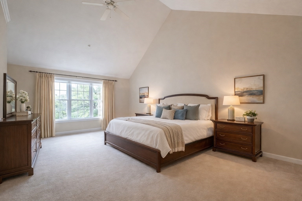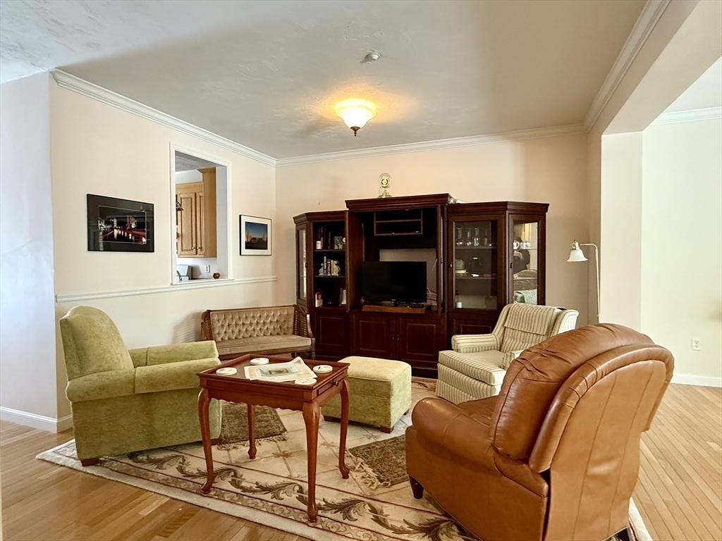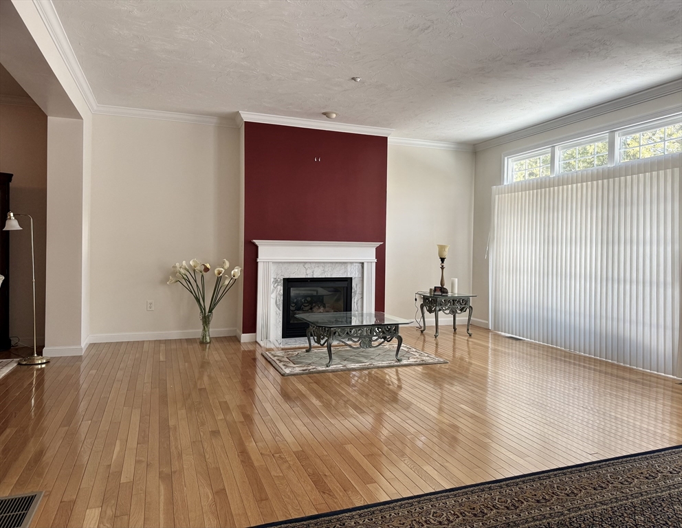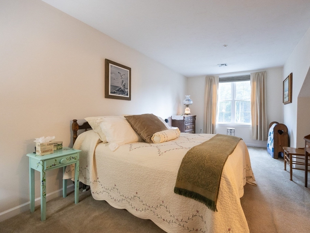 Impeccably maintained townhouse offering approximately 2,280 sq ft of refined living space with two bedrooms and two-and-a-half baths. A gracious foyer opens to a sunlit living room featuring hardwood floors, a gas fireplace with marble surround, and sliding doors to a private composite deck. The open design provides seamless flow for both everyday living and entertaining. The expansive primary suite showcases vaulted ceilings, generous closet space, and a well-appointed bath with jetted tub and shower. A second bedroom offers its own full bath and ample storage. Additional amenities include central air, gas heating, 200-amp electrical service, and an unfinished lower level with cedar closet and framed areas for potential expansion. An attached one-car garage adds convenience and storage. Ideally located near shopping, dining, commuter routes, and adjacent to scenic conservation land, this residence offers comfort, quality, and move-in readiness.