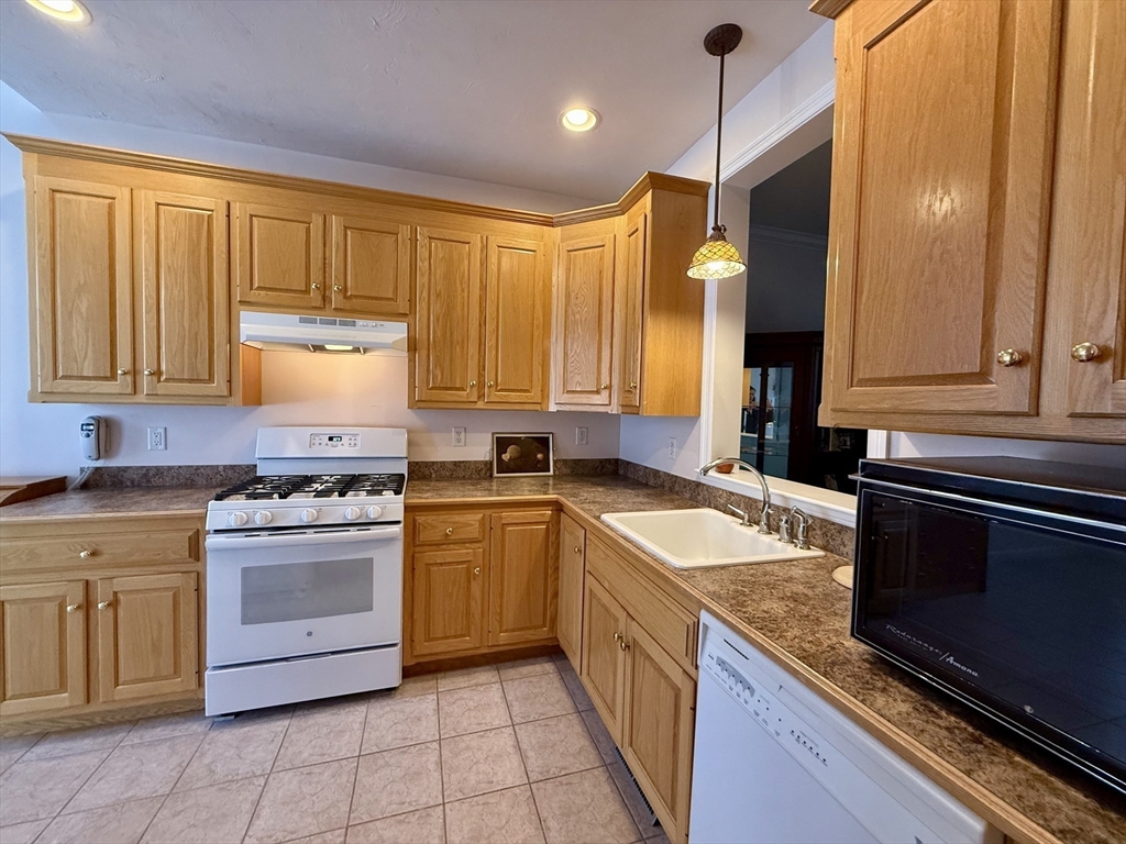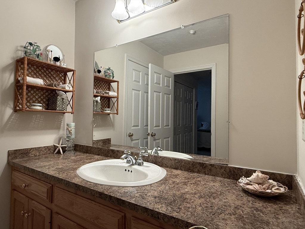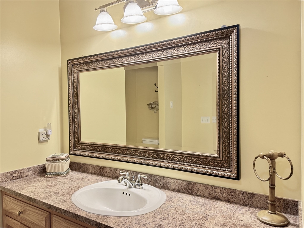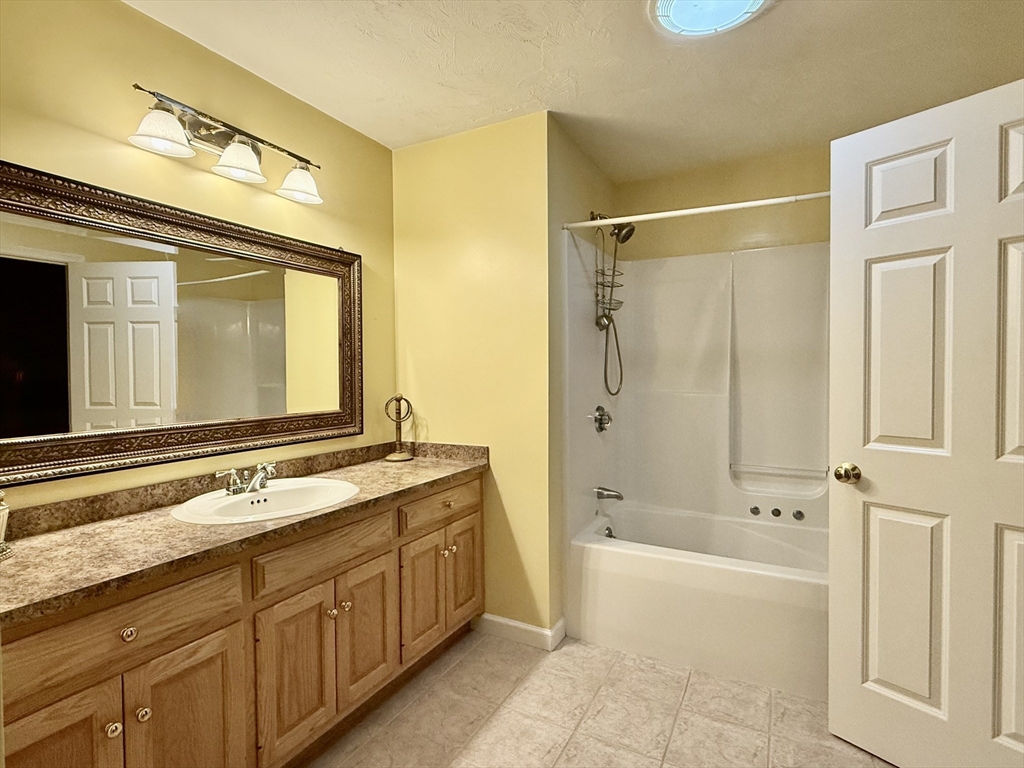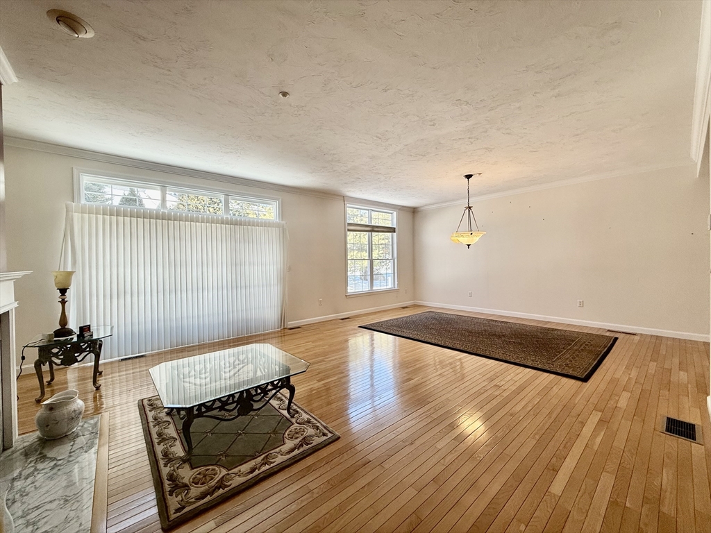 Impeccably maintained townhouse offering approximately 2,280 sq ft of refined living space with two bedrooms and two-and-a-half baths. A gracious foyer opens to a sunlit living room featuring hardwood floors, a gas fireplace with marble surround, and sliding doors to a private composite deck. The open design provides seamless flow for both everyday living and entertaining. The expansive primary suite showcases vaulted ceilings, generous closet space, and a well-appointed bath with jetted tub and shower. A second bedroom offers its own full bath and ample storage. Additional amenities include central air, gas heating, 200-amp electrical service, and an unfinished lower level with cedar closet and framed areas for potential expansion. An attached one-car garage adds convenience and storage. Ideally located near shopping, dining, commuter routes, and adjacent to scenic conservation land, this residence offers comfort, quality, and move-in readiness.