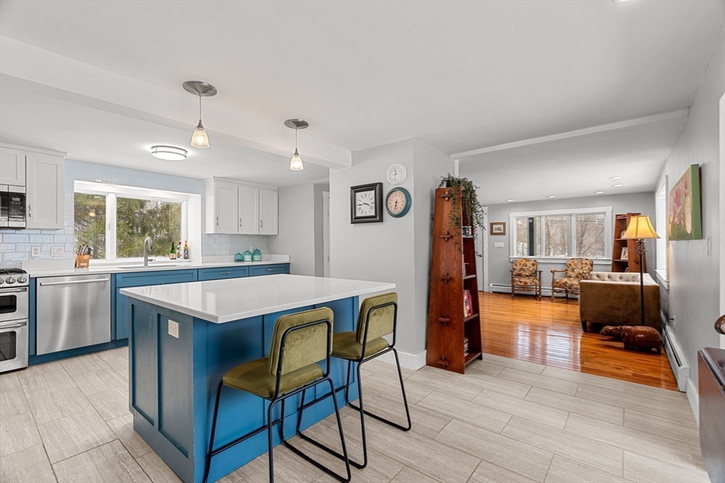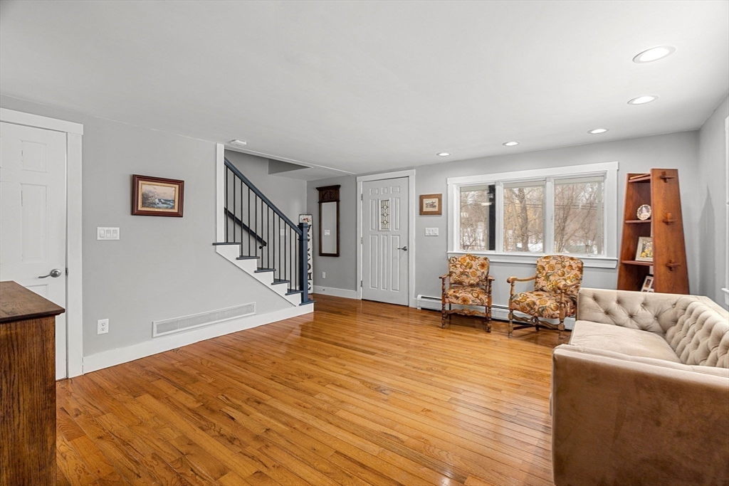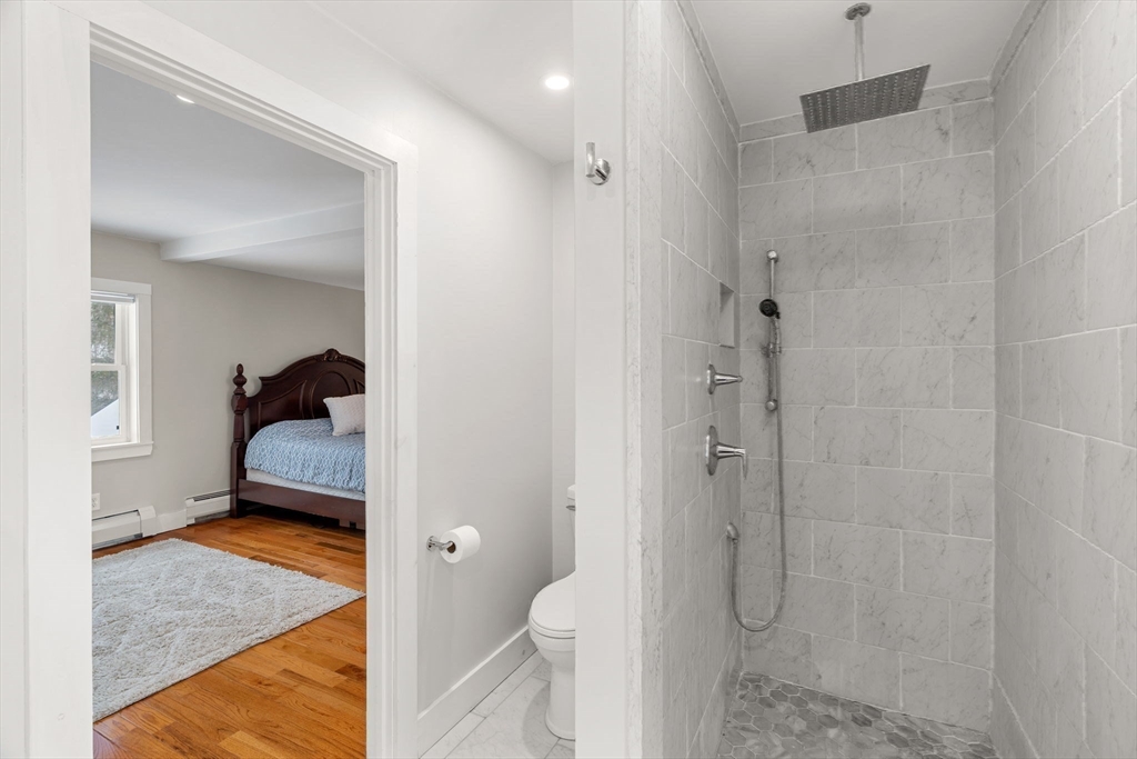 Welcome to picturesque Merrimac, MA, where this private retreat offers space, versatility, and exceptional features. The property includes an oversized 6+ car garage/barn, ideal for contractors, car enthusiasts, collectors, or ample storage—with potential for a 900 sq. ft. inlaw/ADU. The main home features an updated kitchen with island and pantry, open living areas, formal dining room, and a vaulted great room. Upstairs, the spacious primary suite offers a balcony, en suite bath, gas fireplace, walk-in closet, and flexible bonus space, plus an additional bedroom and full bath. The finished lower level adds a large great room, two bedrooms with walk-in closets, and another full bath. With air conditioning, gas radiant/baseboard heat, and room for everyone, this unique property has it all.