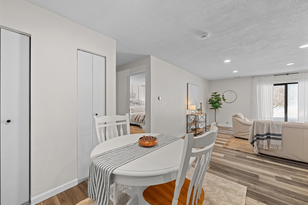Welcome to Thayer Pond Village. This well-maintained 1-bedroom, 1-bath condominium offers comfortable living in a professionally managed community. The ground-level unit features a bright living area with slider access to a patio overlooking landscaped common space. The layout includes an updated bathroom, spacious bedroom, and functional kitchen with dining area. Additional assigned attic storage provides extra space for seasonal items. Enjoy convenient proximity to community amenities including the in-ground pool, recreation areas, and walking paths. The $264 monthly condo fee includes hot water, exterior maintenance, landscaping, snow removal, trash removal, and master insurance. Assigned parking and guest parking available. Conveniently located near Route 20, Route 12, I-290, I-395, and the Mass Pike with shopping, dining, and everyday amenities nearby.