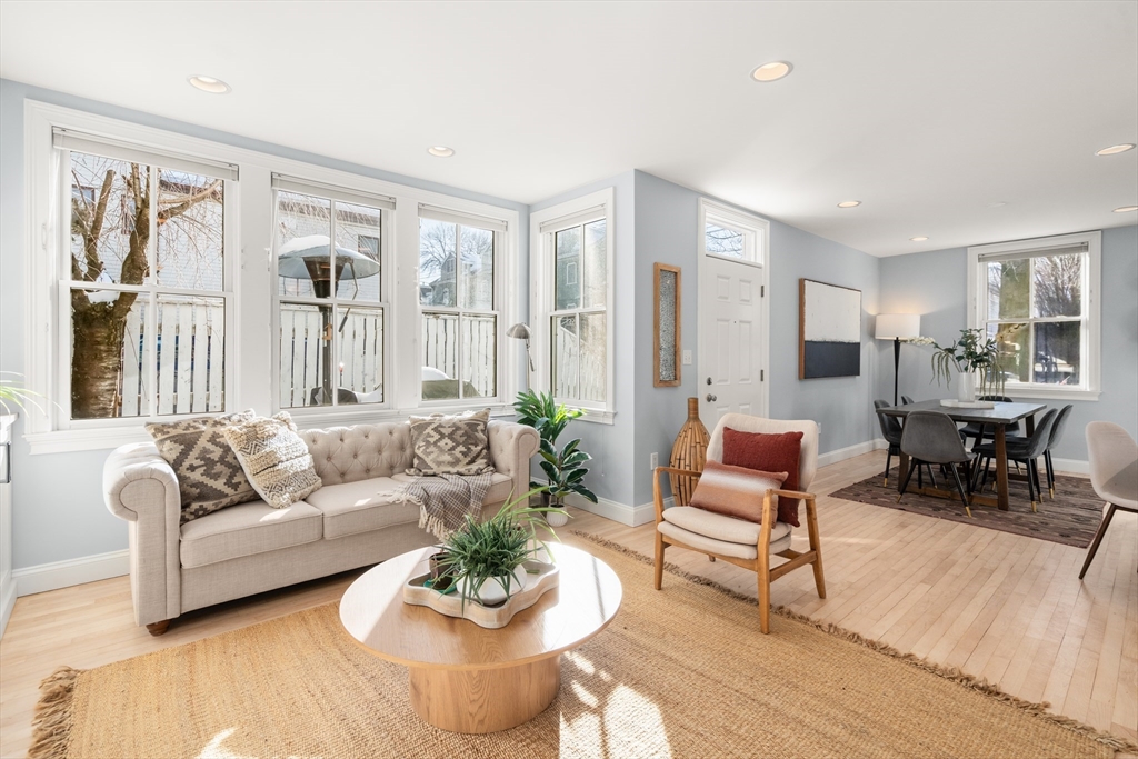 Nestled in the exciting convergence of Kendall Square and East Cambridge, this fully renovated home features high ceilings, tall windows, and ample built-in storage throughout. Through a private entrance, you are greeted by an expansive living room with a chic gas fireplace and custom woodwork. The open dining room has a door to the patio, and flows into the contemporary kitchen with a peninsula, granite countertops, stainless steel appliances, and gas cooking. There's also a 1/2 bath on this floor. Upstairs, there are two bedrooms, a hall bathroom, and laundry. A 20' treetop primary suite provides window seats, and an en-suite bath with a double vanity. The lower level houses a 25' family room with many closets. Other amenities of this townhouse include central air conditioning, professional management, deeded parking, and groundskeeping. Sited within a 1/2 mile radius of the new Lechmere T Station as well as Hurley Park & community garden directly across the street.