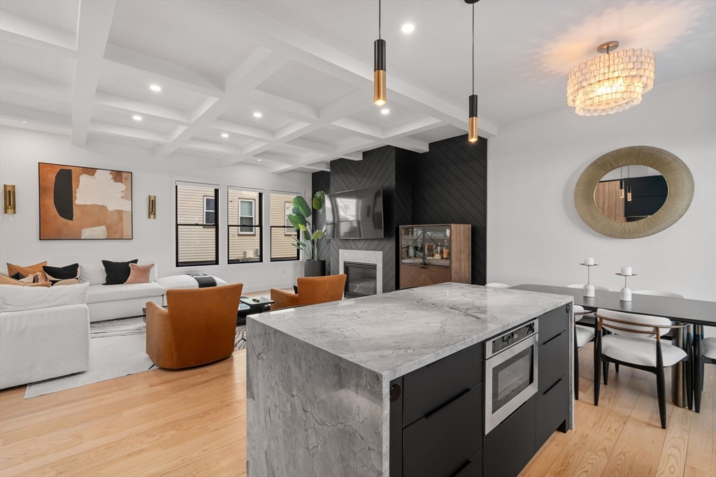 Welcome home to this exceptional new construction townhouse on prestigious Carriage Road along Commonwealth Avenue. This 5-bedroom, 4.5-bath residence blends sophisticated design with effortless functionality, featuring soaring ceilings, rich hardwood floors, coffered detailing, and a striking chevron shiplap fireplace anchoring the sun-filled living space. The chef’s kitchen is thoughtfully designed with premium appliances, custom cabinetry, quartz countertops, and an oversized island ideal for gathering and entertaining. The luxurious primary suite offers a generous walk-in closet and a spa-caliber bath with a dramatic double shower and refined finishes. A finished third level provides flexible space for office, playroom, or lounge, while the expansive lower level is perfect for a gym, media room, or guest retreat. Ideally located near Auburndale Village, commuter rail, parks, restaurants, and major routes, this home delivers elevated living in one of Newton’s most desirable areas.