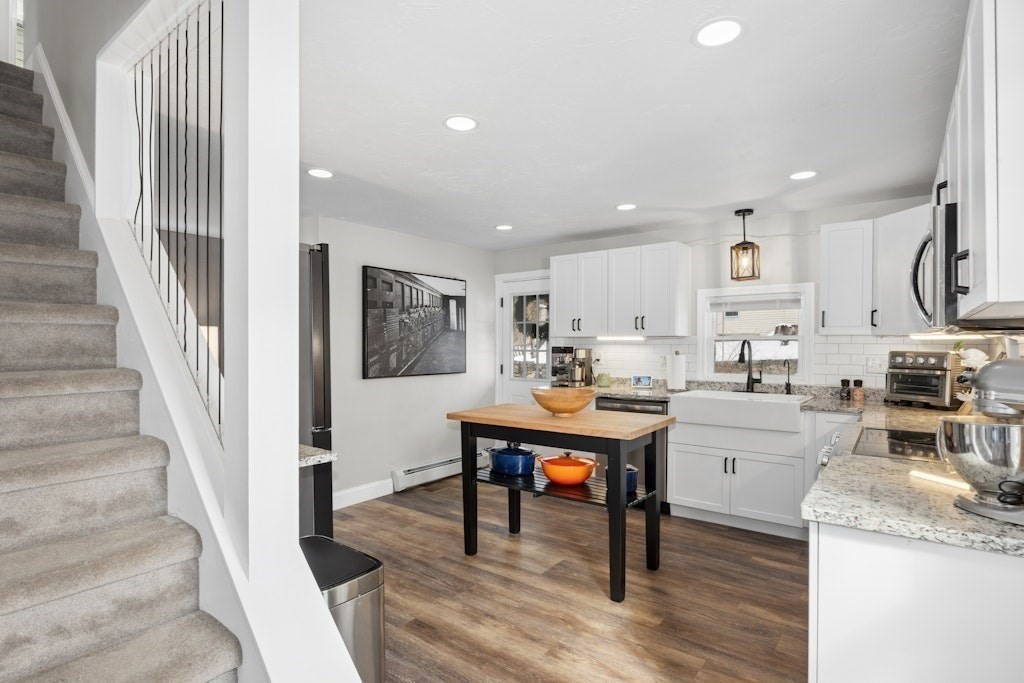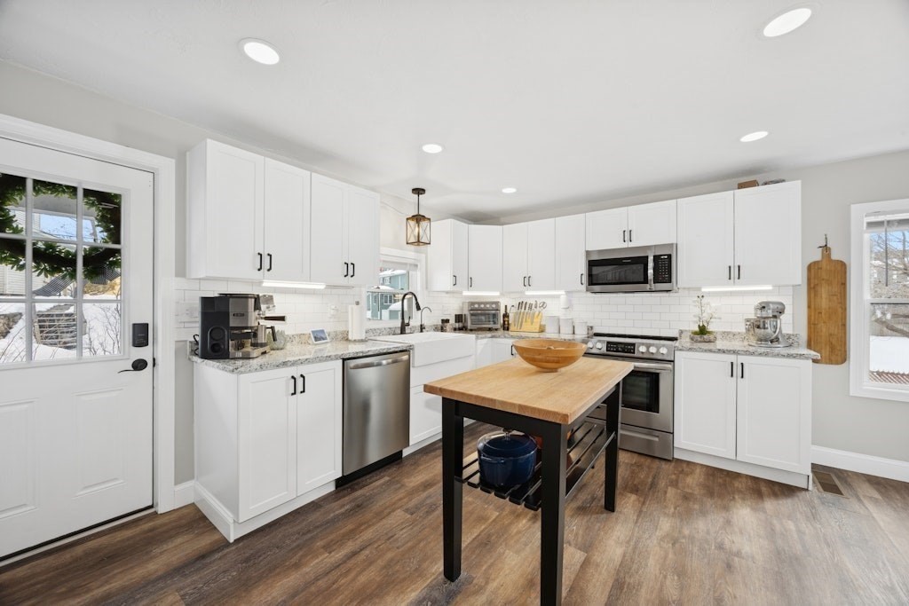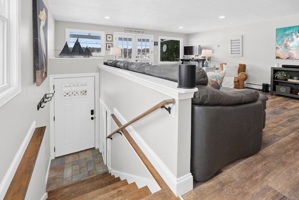 You will love this stunning waterfront home on Lake Quinsigamond! Featuring an open-concept floor plan, this beautifully updated property offers breathtaking water views and unforgettable summer sunsets. Step out from the living room onto a spacious walk-out deck—perfect for entertaining or simply relaxing while overlooking the lake. Inside, the dining area provides a warm and inviting atmosphere, complete with a fireplace. Love to cook - the kitchen has ss appliances, granite countertops, island and plenty of cabinet space. The entire home has been thoughtfully renovated, including a new roof, windows flooring, updated electrical with 200-amp service, and new plumbing. Upstairs, you’ll find three bedrooms, a full bath, and convenient laundry room. Enjoy year-round lake living with swimming, boating, fishing & ice-skating right outside your door. Additional highlight - full basement w/three storage bays. Located on a quiet dead-end street and near local restaurants, stores & highways.