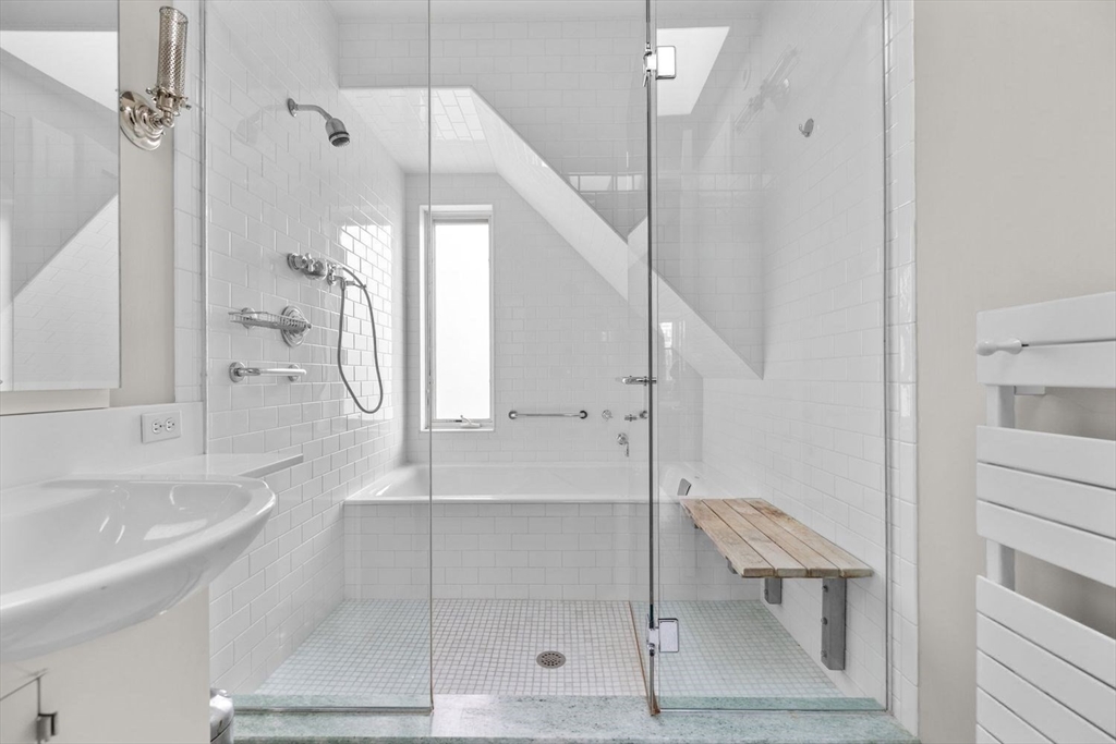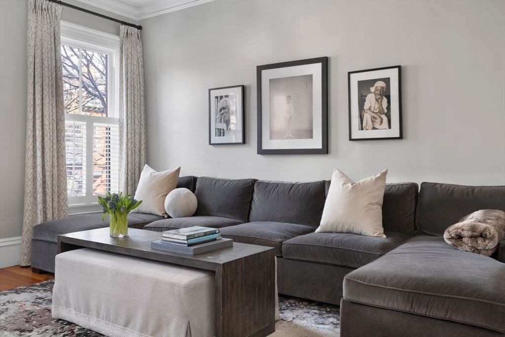 48 Appleton Street is a renovated townhouse blending 19th-century charm with modern elegance across five thoughtfully designed floors. The parlor level features a chef’s kitchen with white cabinetry, stainless appliances, and a natural stone island, adjoining a formal dining room that sets a sophisticated tone.The second floor boasts a dramatic Great Room with soaring ceilings, double fireplaces, and bay windows, perfect for entertaining. Upstairs, oversized bedrooms offer sitting areas and large closets, while the top-floor primary suite impresses with a wall of windows, built-ins, and a spa-like wet room with a separate tub and shower.The garden level includes a fourth bedroom or family room with patio access, laundry, and abundant storage. A private roof deck offers sweeping views of Back Bay and Downtown. Nestled in South End’s Golden Triangle, this home is nearby premier dining, shopping, and Back Bay station, and is complete with five-zone heating and central air.