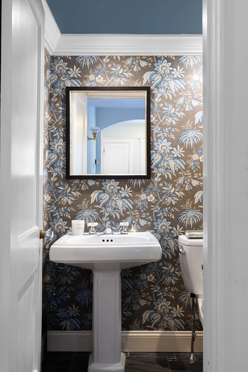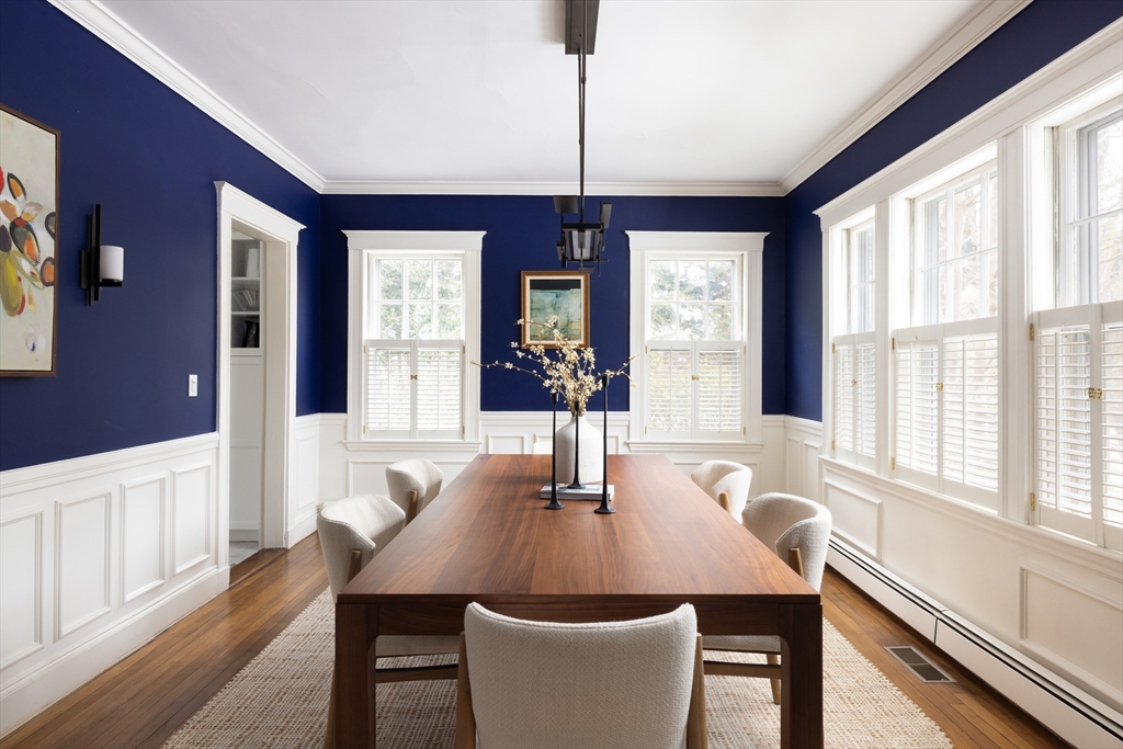 This spectacular Colonial Revival-style residence is set on a beautiful level lot in Waban. The lovely foyer opens to a large living room with a fireplace and a dining room with fine period moldings. The exquisite, newly renovated kitchen is appointed with custom cabinetry, top-of-the-line appliances, and an eating area. The oversized family room, with high ceiling and fireplace, overlooks the yard and adjoins a screened-in porch with a hipped roof. Also found on this level are an office, mudroom, and access to a three-car garage. An elegant staircase, with original details, gently winds to the next level featuring a primary bedroom with a walk-in closet and a spa-like bathroom; two other bedrooms; a renovated bathroom; and a bonus room. The third floor has two more bedrooms and a full bathroom. The lower level offers a playroom, exercise space, and storage. Additional highlights: gleaming hardwood floors, AC, and gas systems. The Angier School, “T”, and Waban Center are all nearby.