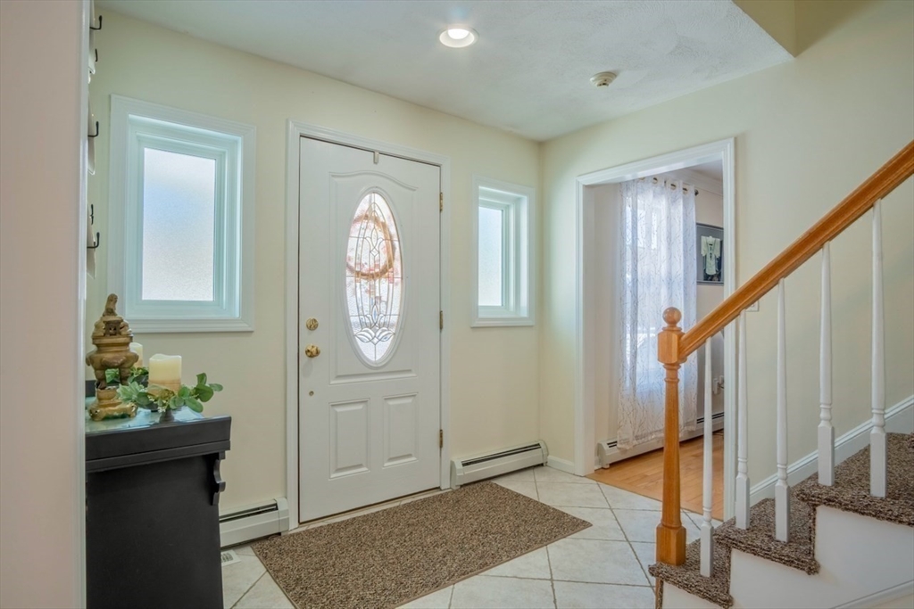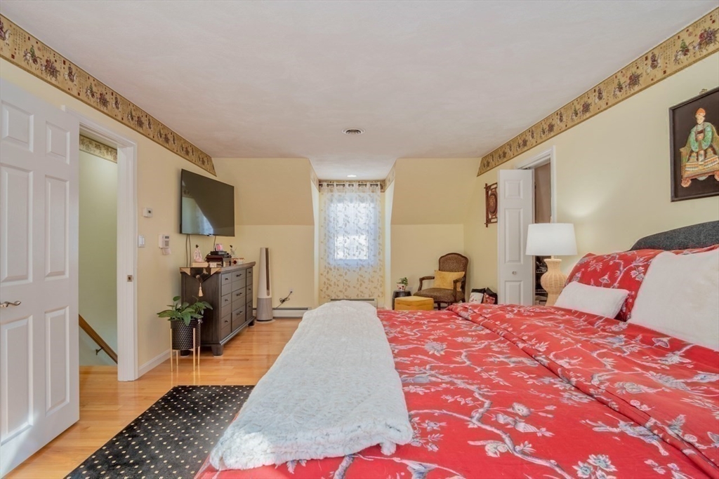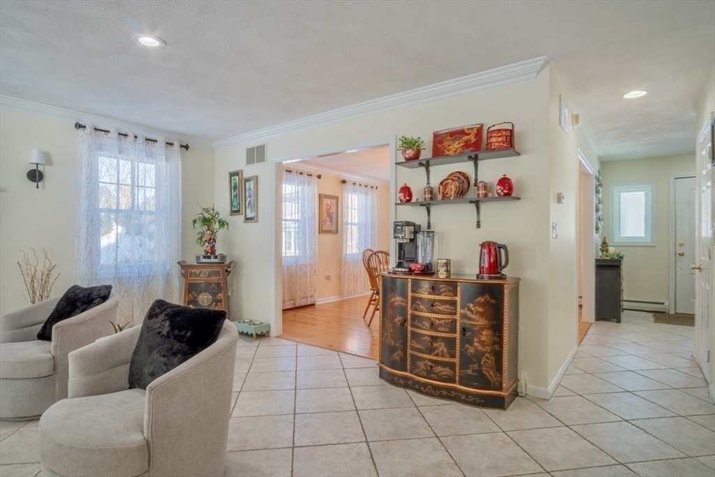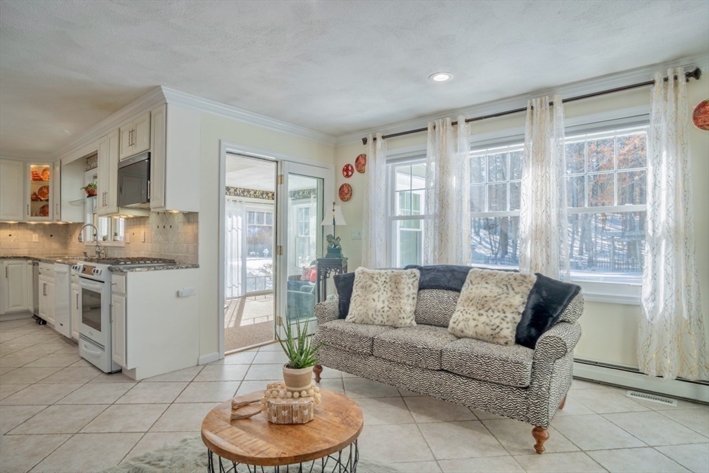 Stunning & Pristine Cape on 3/4 acre beautifully landscaped level lot with gentle slope and wooded privacy on a cul-de-sac in Rowley, MA, charming, rural and coastal town with easy access to Routes 95, 1 & 133. This Home has been carefully maintained by the current owners for 26 years. Living and Dining Rooms w/ hardwood floors open to tiled updated, quartz & stainless Kitchen and Family Room with fireplace/ pellet stove overlooking backyard, gardens and shed. Family Room opens to sunlit 4-Seasons Room with atrium door to patio w/pergola and backyard. First floor has 3/4 bath with shower, updated vanity & toilet plus laundry closet with hook-ups. Upstairs find 3 large bedrooms with hardwood floors, lots of light and closets. Primary Bedroom has 2 large custom, walk-in closets with heat & A/C, one is cedar lined. Second floor full bath has jacuzzi tub and separate, renewed shower, double vanity sinks. Newer FHW heat/hot water and updated Central A/C. Open Sat & Sun 3/7 & 3/8, 1-2:30PM