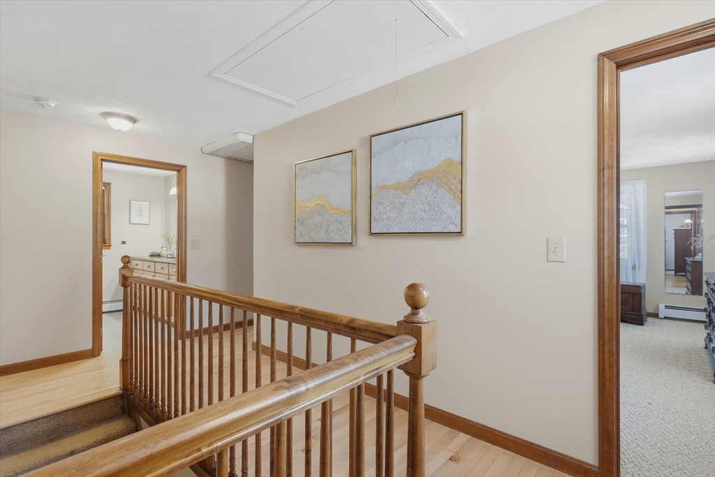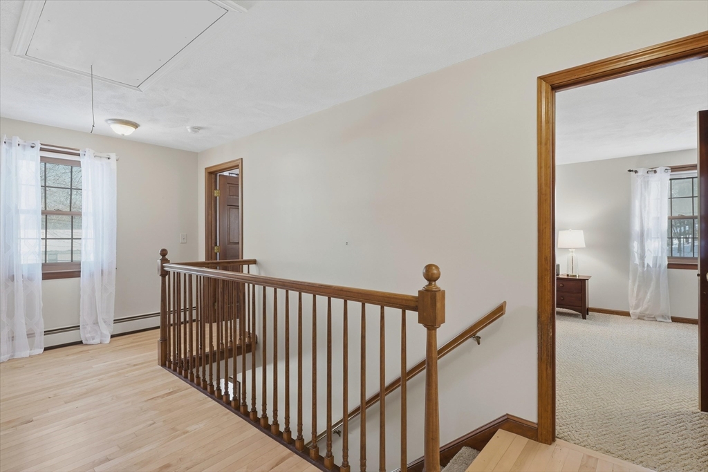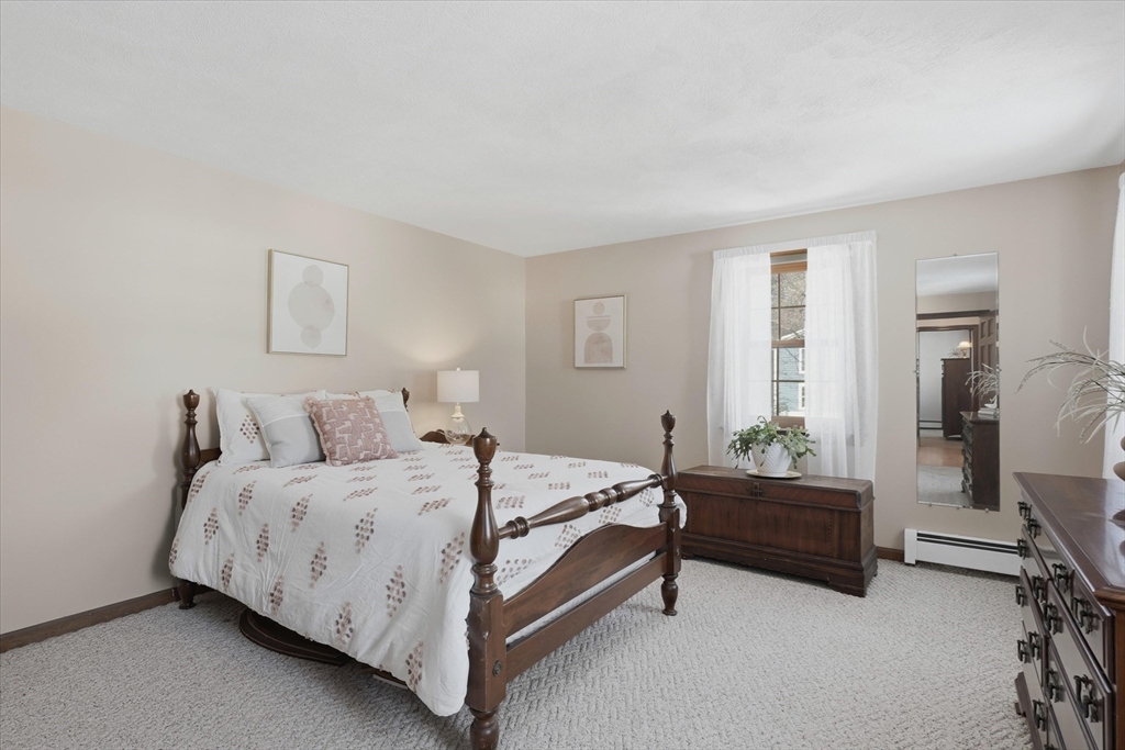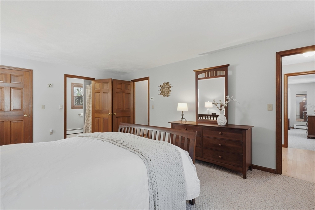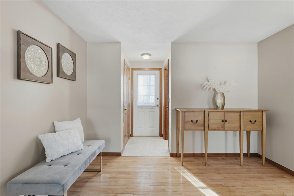 Welcome home to this classic 3 bedroom, 2.5 bath Colonial filled with natural light & timeless appeal. A traditional layout offers warm, comfortable living with sunlit family & dining spaces that create an easy flow for everyday living & entertaining. The kitchen features granite countertops & connects seamlessly to the main living areas. French doors open to a spacious screened porch overlooking the private backyard, perfect for relaxing or outdoor enjoyment. Upstairs, the generous primary suite offers an oversized walk in closet & en suite bath with quartz countertops. Two additional bedrooms & a full bath with quartz counters provide flexibility for family, guests, or a home office. Maple hardwood floors add warmth throughout. A spacious two car garage w/ newer garage doors, a storage shed & a 7 year old boiler add value, functionality & peace of mind. Convenient to top rated schools, shopping, dining & commuter routes to Boston, this home offers comfort, convenience & easy living!