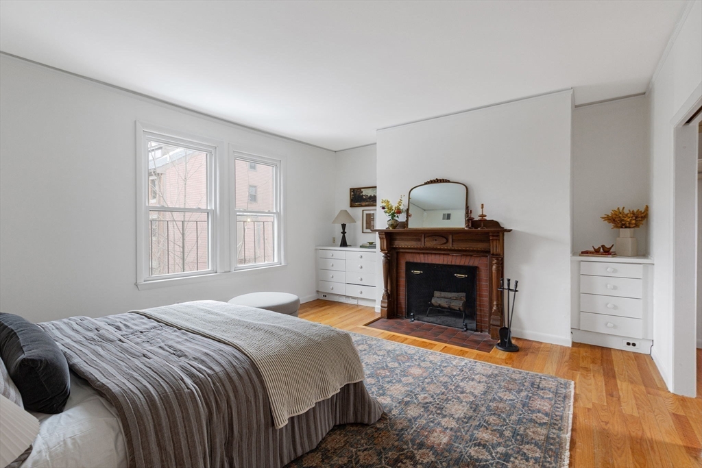 Tucked in the heart of Mid-Cambridge, this two-level home pairs timeless details—oak floors, high ceilings, and crown molding—with rare perks including two wood-burning fireplaces, an exclusive brick patio and garden, designated parking, central AC, and exceptional storage throughout. The main level is made for entertaining, with a living room anchored by a fireplace, efficient kitchen, dining area, a flexible office or sitting room, convenient half bath, and direct access outside to the private patio and garden. Upstairs offers 2 bedrooms, a full bath, and in-unit laundry, including a bay window nook and a primary suite with a second fireplace and walk-in closet. Abundant closet space across both levels, complemented by additional basement storage, adds everyday ease. Set within a well-maintained, professionally managed building with easy access to the Red Line, the Charles River, and major highways—moments from everyday conveniences and dining of Harvard, Central, and Inman Squares.