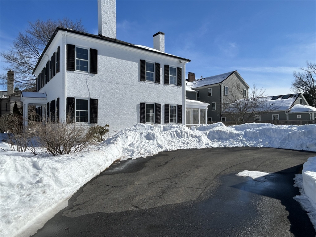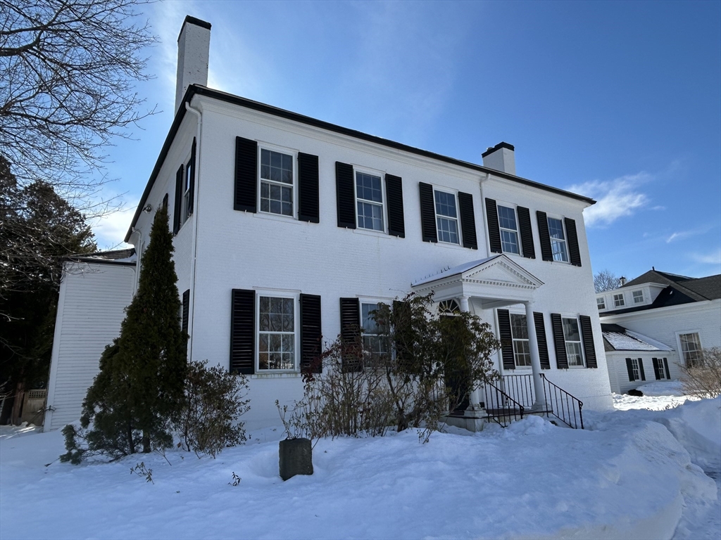 This classic hip roof brick Colonial offers timeless elegance in an exceptional setting at the heart of the historic village of Dedham. Prominently sited overlooking the picturesque First Church Green, home to the beloved weekly Farmers’ Market during the summer months, this stately home blends historic charm with everyday convenience. Filled with natural light, the home features beautifully proportioned rooms, high ceilings, tall windows, and three decorative fireplaces. The first floor offers a front-to-back living room, dining room, study, half bath and kitchen with attached laundry and direct access to a fenced yard. Upstairs are four spacious corner bedrooms and two full baths. A detached two-car garage completes the property. Just blocks from Dedham’s vibrant village center, you’ll enjoy effortless access to local shops, dining, and entertainment. Close proximity to private schools, major highways and the commuter rail, offering convenient access to Boston, Providence, and NY!