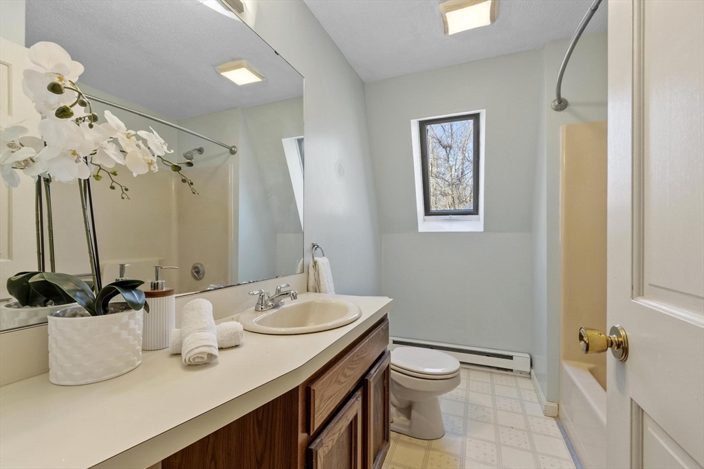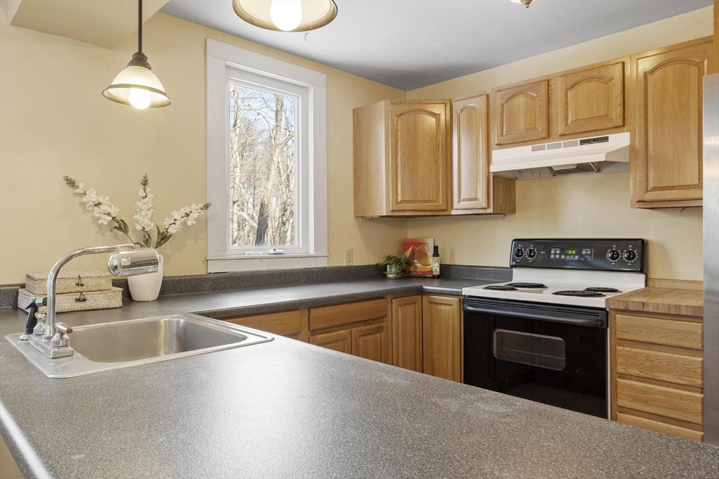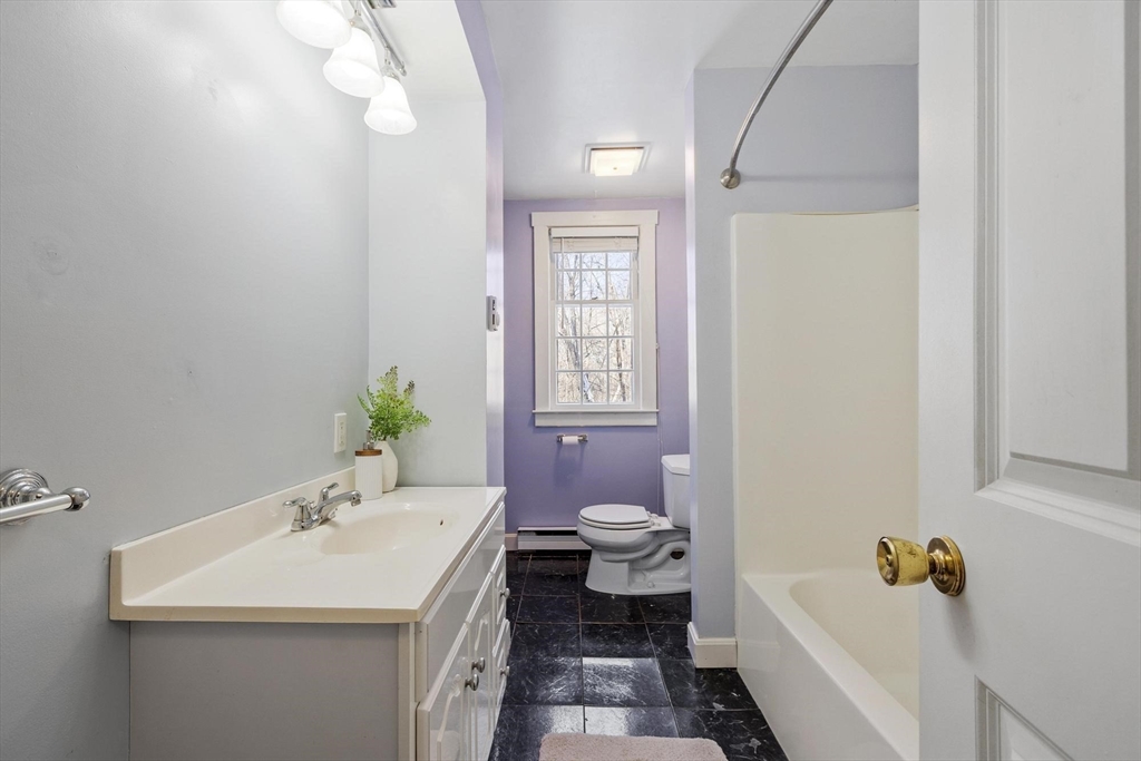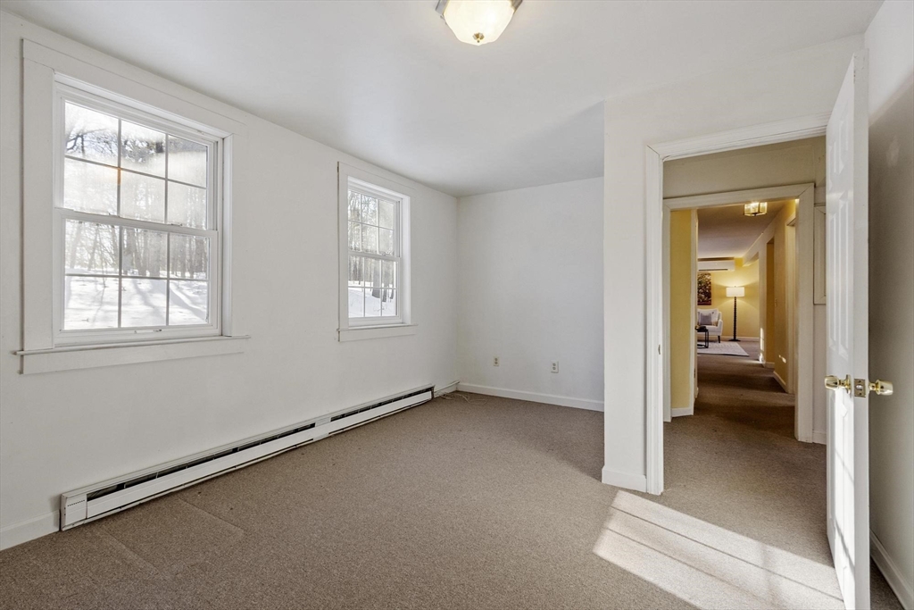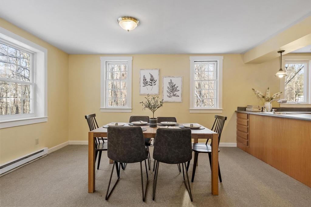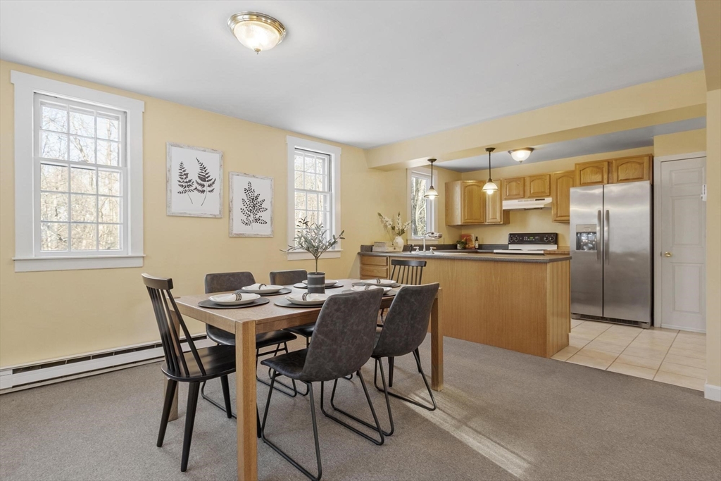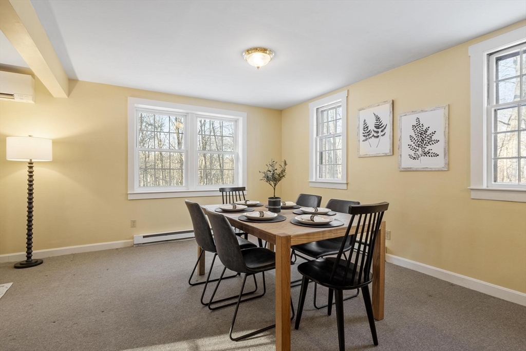 A peaceful retreat with everyday conveniences just moments away! Travel down the private driveway to a private setting with wooded views and direct access to abutting conservation land. Just moments from local schools and the town center, this location offers an ideal blend of natural beauty and accessibility. Inside, an open-concept floor plan connects the kitchen, living, and dining rooms, creating a comfortable and functional main living space. The first floor includes two bedrooms, also suitable for a home office, along with a full bath. The second floor features a spacious bedroom and full bath, providing a private suite. Additional potential awaits in the unfinished attic, offering an opportunity for future expansion. A brand-new roof installed in 2025 and a passing Title V for three bedrooms provide buyers with confidence in the home’s major systems. This property combines location, privacy, and opportunity in a desirable setting. Explore the opportunities that await you!