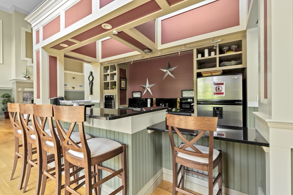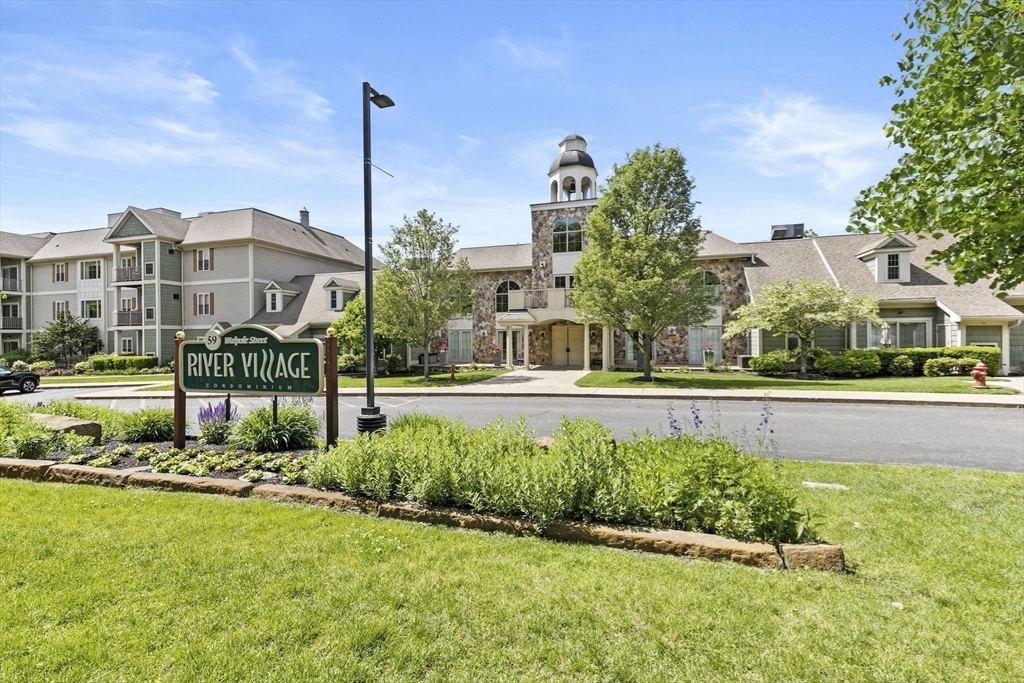 Welcome to the highly sought after River Village community! This updated luxury condo offers exceptional modern finishes, with a well thought-out living space, in an excellent commuter location. The unit features an open layout that flows into a living room with a gas fireplace and sliders leading to a private patio. There are two generous bedrooms, including a primary suite with a walk-in closet and private bath. The second bedroom has a walk-in closet & is next to a full bath, both bathrooms renovated within the last 2 years. This gorgeous condo is in move in condition complete with all the modern furniture. River Village provides amenities, including a large community room with a full kitchen, bar, pool table,TV, plus a fitness center, reading room, and an outdoor patio with a gas grill and fireplace overlooking the Neponset River. A shared office space is available for residents. Come see the elegance of what River Village has to offer.