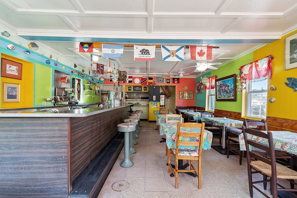 Sailor Stan’s has been an iconic landmark since 1977, offering the perfect blend of business opportunity and coastal living. The restaurant portion features seating for 34–36 guests, a welcoming outdoor deck, and a convenient half bath—ideal for continuing its long tradition as a beloved breakfast and lunch spot. The attached residential section offers 3 bedrooms, 2 baths, a full kitchen, and a comfortable living area, all highlighted by second-floor views of picturesque Smith Cove. Outside, enjoy a charming side space perfect for a table and chairs set, providing a great spot to relax. While the property is in need of significant renovations and is being offered as is, it provides the chance to own both commercial & residential spaces on stunning Rocky Neck!