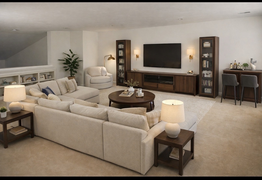 Welcome to Red Mill Village, a tree lined 55+ community located ner major highways with easy access to Providence, Boston & Cape Cod.This 2 bedroom plus bonus room offers an open floor plan with a dining area that flows into a kitchen with stunning granite countertops and custom cabinets.The spacious living room boasts floor to ceiling windows and a gas fireplace.The first floor primary bedroom includes a walk in closet and two additional closets with a full en suite bathroom. The main level offers a laundry room, a 1/2 bath and a private enclosed patio.Upstairs features a spacious loft with linen closet, a large second bedroom with a walk in closet and full bath, additionally there is a two car garage and a charming front porch. Walking trails, community garden, inground heated pool, a clubhouse with two function rooms. No showings prior to Open House on Sat 3-7-26
