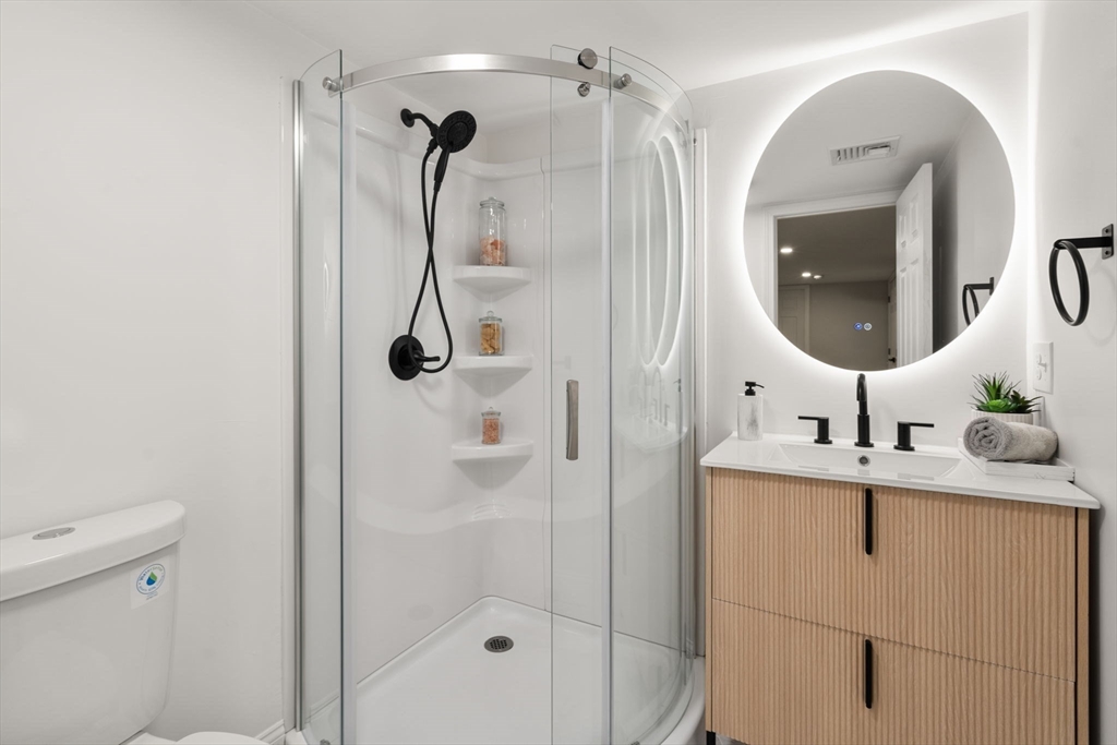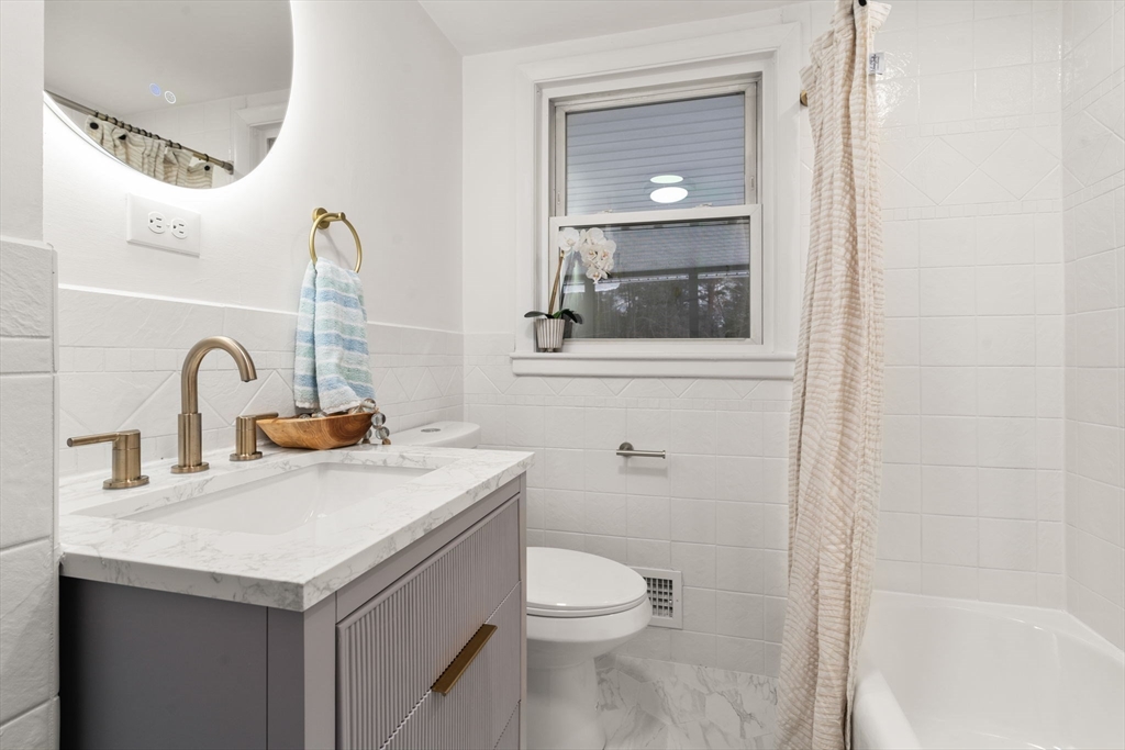 Located in one of SHARON’S MOST HIGHLY COVETED NEIGHBORHOODS (East District), this METICULOUSLY RENOVATED home offers privacy, style, and the feel of BRAND-NEW CONSTRUCTION. Set on an OVERSIZED LOT ON A QUIET SIDE STREET, the property features a PRIVATE BACKYARD SURROUNDED BY NATURE and a HUGE SCREENED-IN PORCH perfect for relaxing with morning coffee, dining al fresco, or entertaining. Inside, the sun-filled living space features DRAMATIC VAULTED CEILINGS WITH SKYLIGHTS, HARDWOOD FLOORS THROUGHOUT, A FIREPLACE, AND ELEGANT DECORATIVE WALL MOLDINGS. The UPDATED KITCHEN offers BRAND NEW SS APPLIANCES, CALACATTA QUARTZ COUNTERS and more. The WALK-OUT LOWER LEVEL includes a bonus living area, NEW FULL BATHROOM, and a LARGE BEDROOM WITH BACKYARD ACCESS. Upstairs offers THREE ADDITIONAL ROOMS AND A FULLY RENOVATED BATHROOM. 3 bdr septic, 4 potential bedrooms ALL NEW SYSTEMS INCLUDING HVAC, SIDING AND MORE. Close to LAKE MASSAPOAG, RESTAURANTS, HIGHWAYS, AND 25 min COMMUTER RAIL TO BOSTON.
