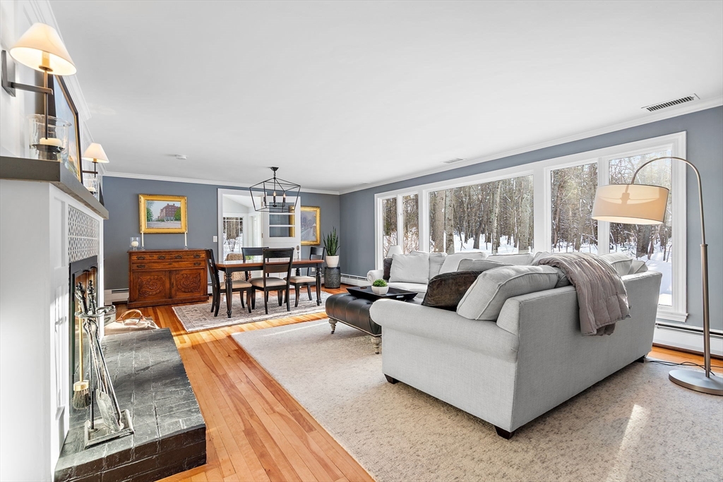 MASTERFULLY RENOVATED & EXPANDED RANCH, OFFERING SINGLE LEVEL LIVING AT ITS FINEST! This beautifully updated home has everything you need: featuring a RENOVATED KITCHEN with a charming built-in banquet & access to the FENCED IN BACKYARD! Light floods into the bright living room through the oversized windows. You can certainly picture gatherings here while gazing at the fireplace! The family room makes a cozy den! Enjoy the SCREENED IN PORCH with panoramic views & the back deck that overlooks the abutting conservation land! The far end of the house is anchored by three generously sized bedrooms, including a primary suite that truly sings with a vaulted ceiling, walk-in closet & RENOVATED BATH! THE FINISHED LOWER LEVEL includes a home gym & fabulous recreation space! THREE CAR ATTACHED GARAGE! All this can be yours! Close to Mattison Field, Verrill Farm and all the beauty of conservation in West Concord!