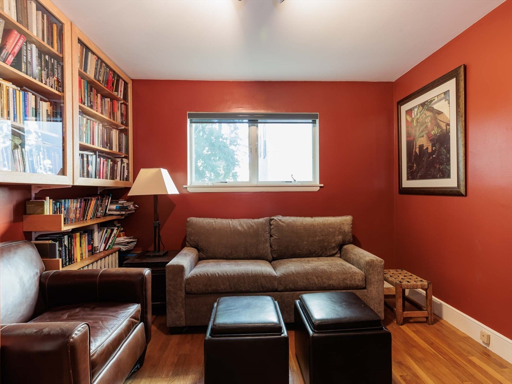 Great Furnished, 1 bedroom plus/study conveniently located with-in 5 minutes of Harvard Square, Harvard Law & Leslie. Featuring a large master bedroom with a king sized bed, a study, eat-in Retro kitchen with stainless steel appliances and a cozy living room with gas burning stove and French glass doors leading to the private enclosed deck. Hardwood floors throughout, 1 car private driveway. Easy access to the redline, shops and restaurants. Flexible lease term.
