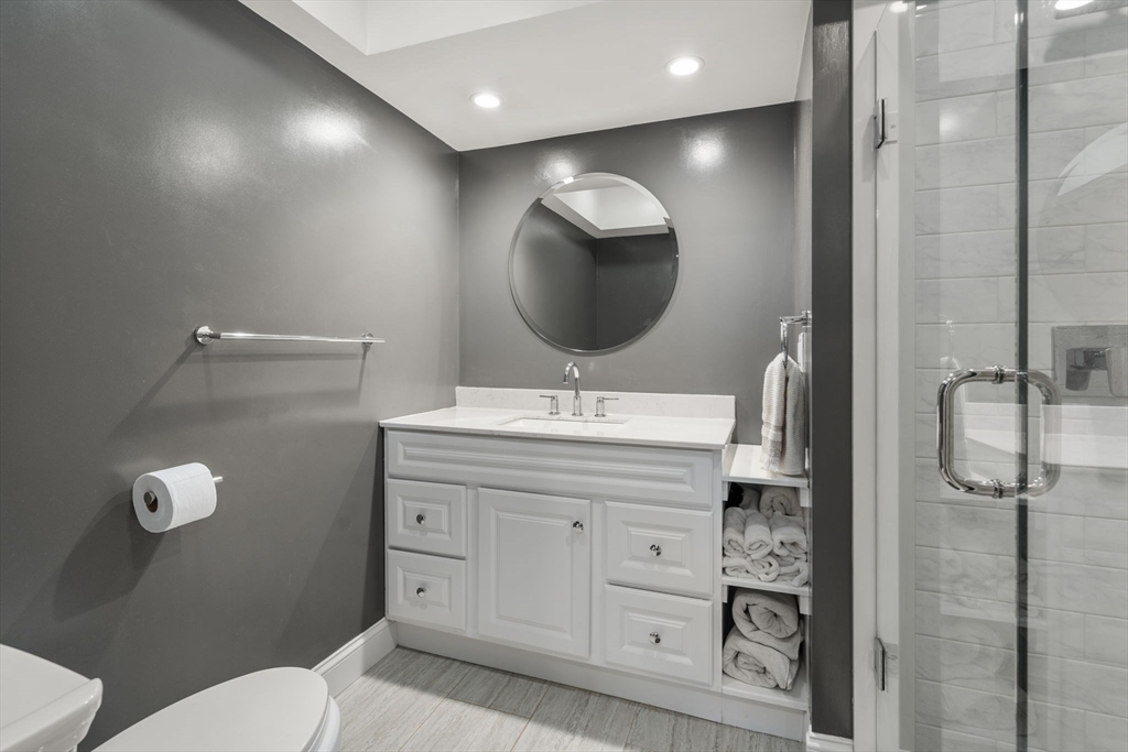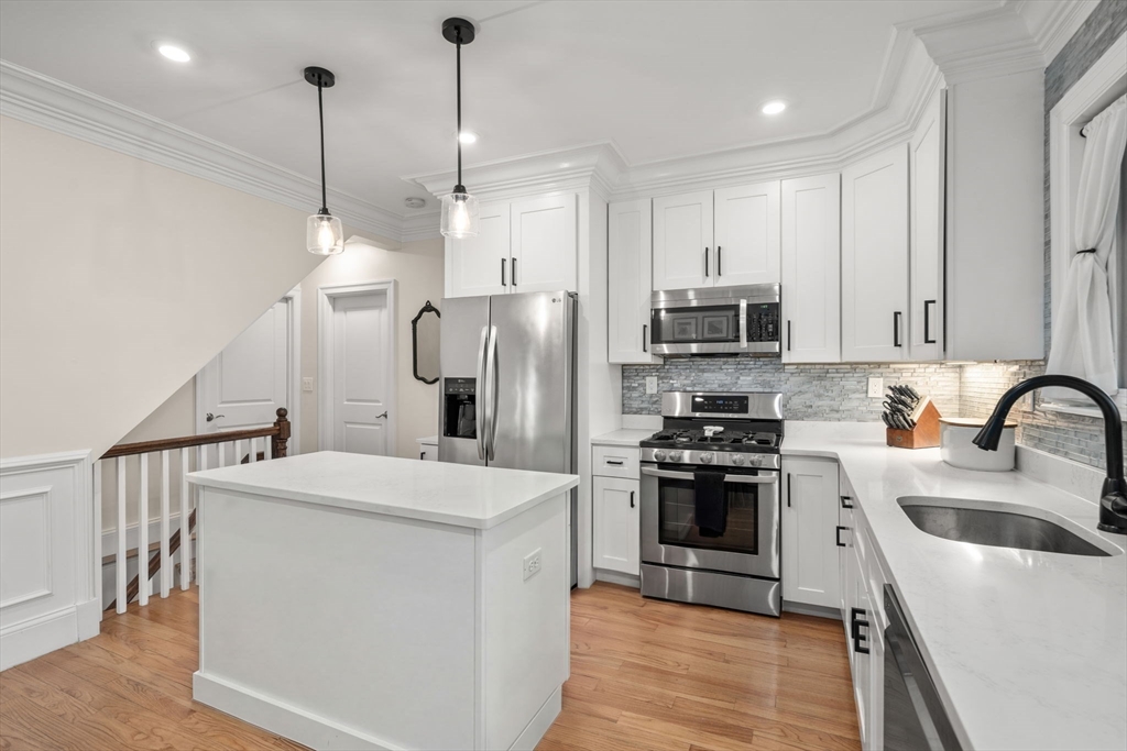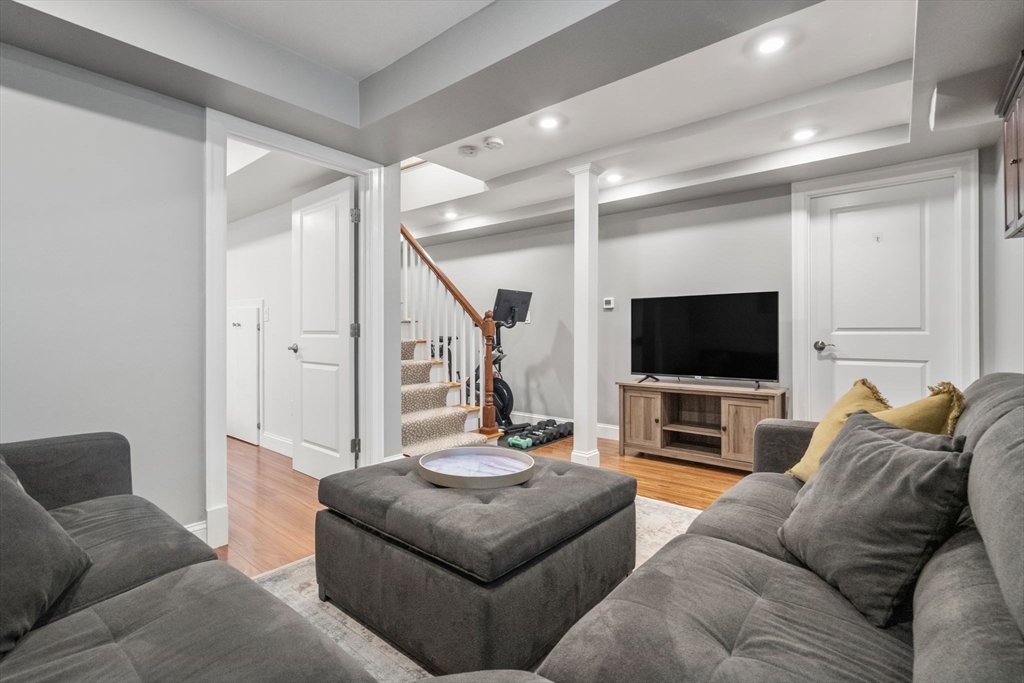 Stunning 3-bedroom, 2-bath condo ideally located where Watertown meets Belmont and Waltham. This multi-level home lives like a single-family, featuring an open floor plan, exclusive use driveway, and a large fenced-in private yard. Renovated w/ charm and character in 2018, offering a bright living room w/ sightlines to the dining area into the yard via a glass slider. The white kitchen has an island and is open to the dining space. The smooth flow of the main level and easy connection to the outdoor areas make this home perfect for living/entertaining. 2 bedrooms and a full bath conveniently located on the 1st floor. The bright lower level offers an expansive family room, ideal for recreation/additional living space. The primary suite is also located on this level and includes a full bath w/ a tiled shower and glass enclosure. Exclusive-use areas include a charming front porch, covered back porch, and a private fenced-in yard w/ patio. Minutes to commuter rail, shops, Cambridge/Boston.