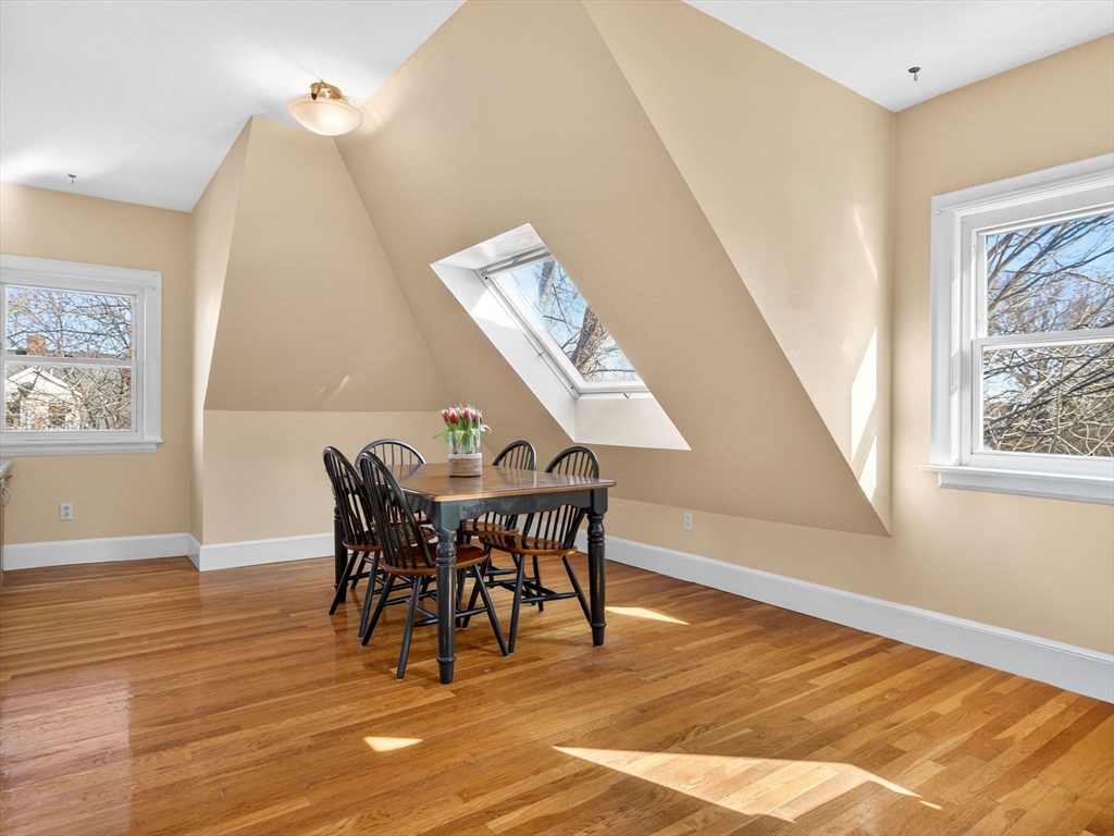 Rare Ashmont Hill Victorian | Accessible Top-Floor Sanctuary | Available for the first time in 35+ years, this spacious 1442sf home at 30 Welles Ave offers a treehouse feel with the stature of a historic manor. Pet-friendly, in-unit laundry. Occupying the top floor of a stately, owner-occupied 3-unit Victorian, 3BR/1BA condo is a sun-drenched retreat with soaring lines and architectural soul. Intricate woodwork, stained glass entry, and window seats with cedar-lined storage. Chairlift from ground floor to unit: a rare, inclusive luxury. High-efficiency living with newer attic-installed furnace (2020) and full insulation. Private attic storage , TWO private basement storage areas, plus deeded parking. Large shared yard with dedicated raised garden bed for Unit 3. A rare opportunity in a premier, active neighborhood association, near the Red Line and short blocks to Via Cannuccia, Dot Ave and Washington buses and amenities.