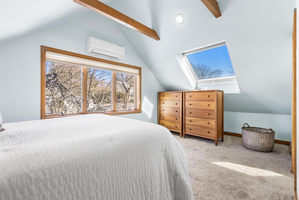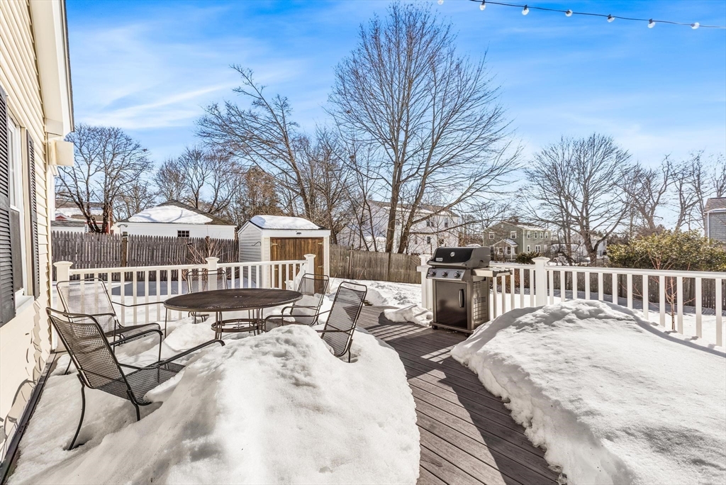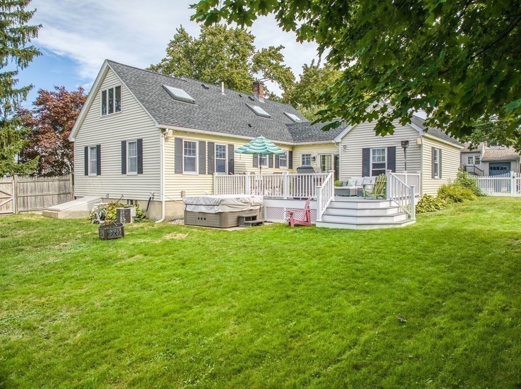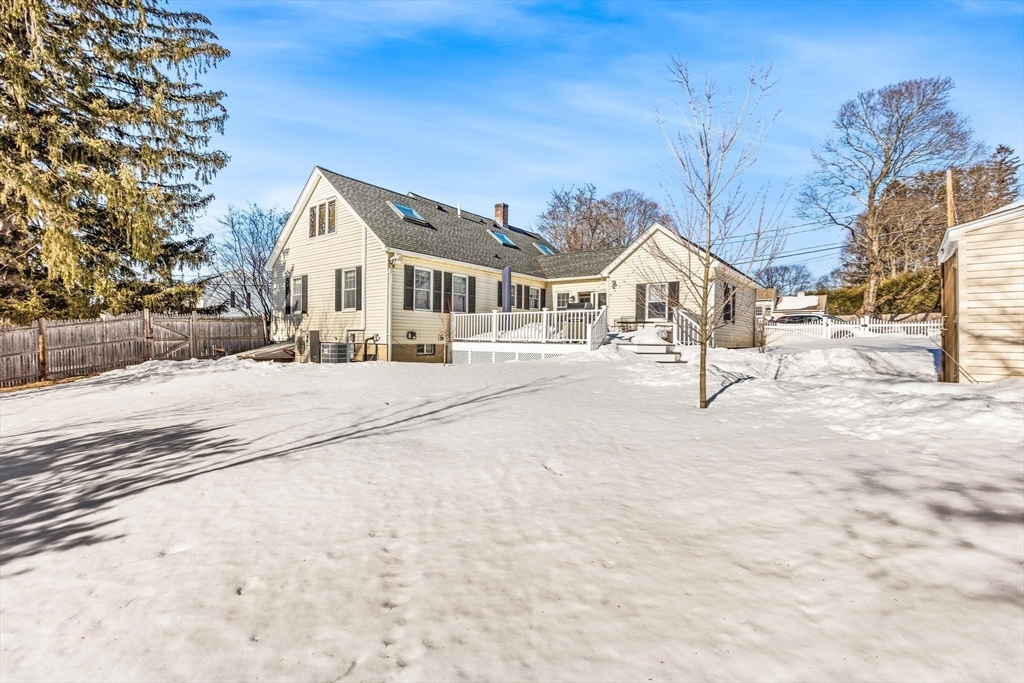 Tucked into the heart of the coveted Library District, this storybook Cape is the one buyers wait for. Located on a beloved neighborhood street known for its strong sense of community, this beautifully maintained home blends classic charm with thoughtful updates and true move-in readiness. Sunlight pours through updated windows, illuminating graceful archways and inviting living spaces with wonderful flow. The kitchen anchors the home with granite counters and generous seating, opening seamlessly to the dining and family rooms. Upstairs, cathedral ceilings and skylights create airy, character-filled bedrooms. The lower level offers bonus space with expansion potential for additional living area. Step outside to a fenced, private-feeling yard with mature plantings and a spacious newer composite deck with amazing sunset views. Soon the snow will melt, revealing a lush backyard oasis to enjoy! NEW $30k HVAC w/heat pump heat & ac & backup HE gas furnace and mini splits on the 2nd floor.