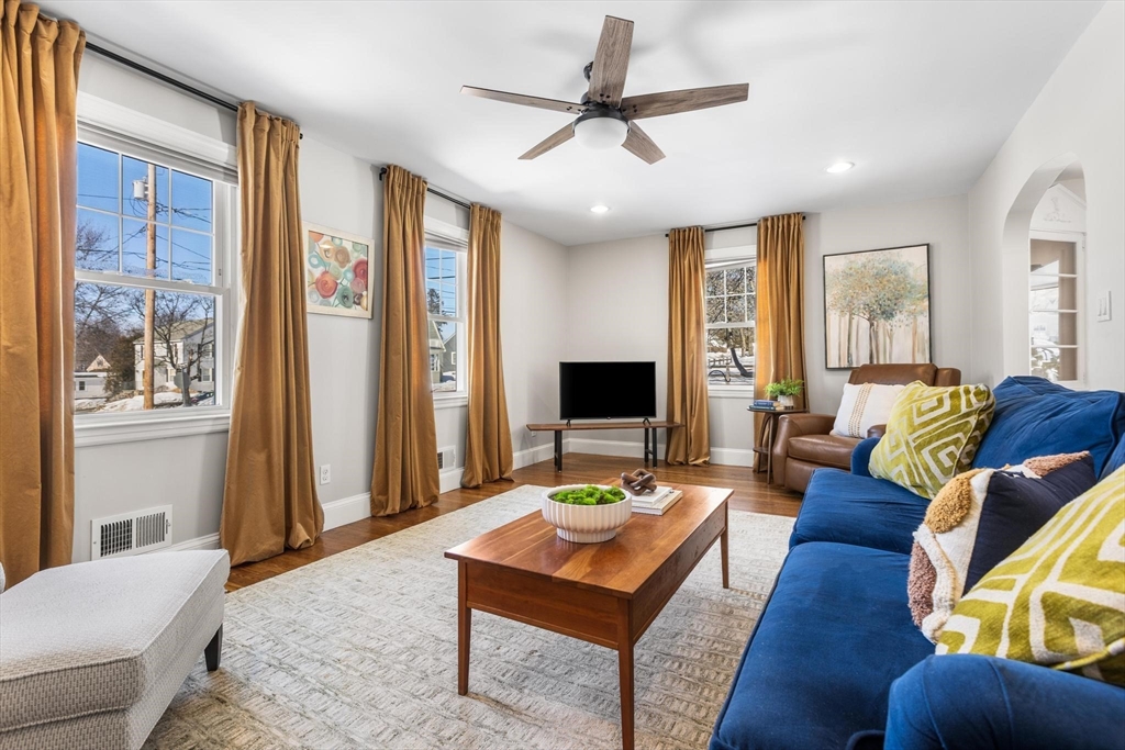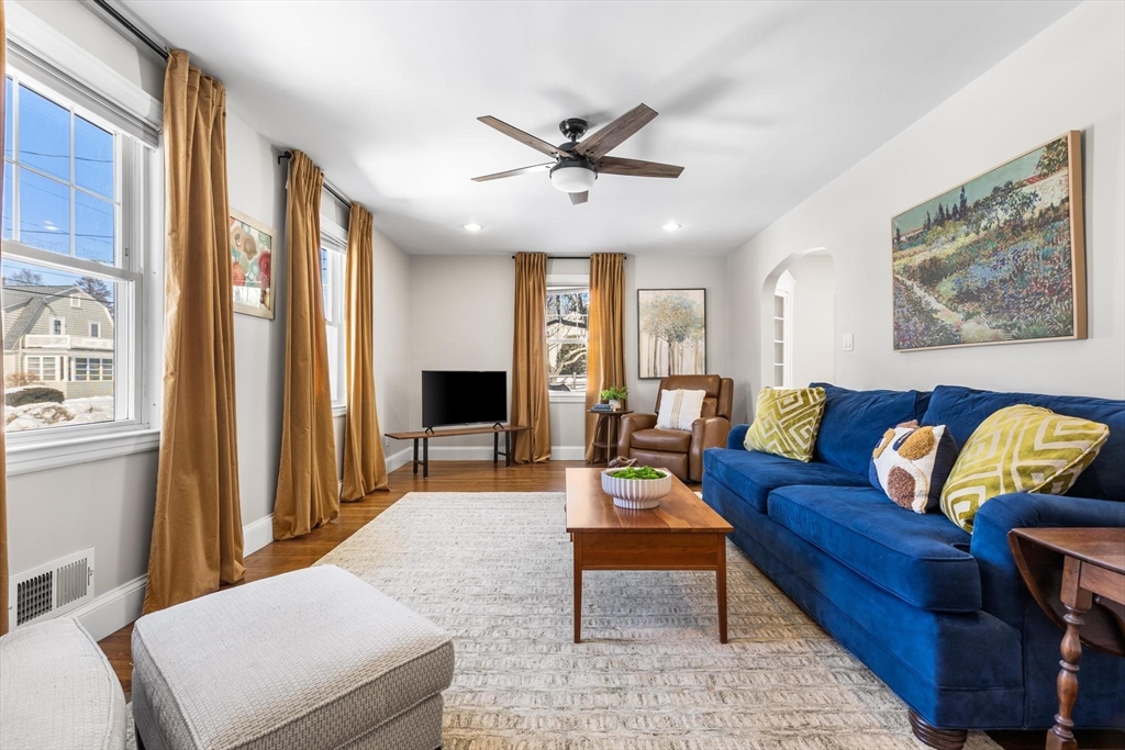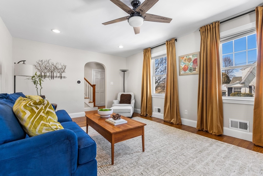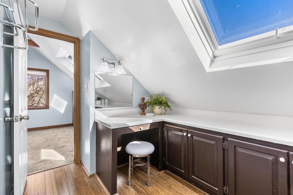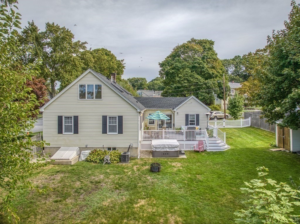 Tucked into the heart of the coveted Library District, this storybook Cape is the one buyers wait for. Located on a beloved neighborhood street known for its strong sense of community, this beautifully maintained home blends classic charm with thoughtful updates and true move-in readiness. Sunlight pours through updated windows, illuminating graceful archways and inviting living spaces with wonderful flow. The kitchen anchors the home with granite counters and generous seating, opening seamlessly to the dining and family rooms. Upstairs, cathedral ceilings and skylights create airy, character-filled bedrooms. The lower level offers bonus space with expansion potential for additional living area. Step outside to a fenced, private-feeling yard with mature plantings and a spacious newer composite deck with amazing sunset views. Soon the snow will melt, revealing a lush backyard oasis to enjoy! NEW $30k HVAC w/heat pump heat & ac & backup HE gas furnace and mini splits on the 2nd floor.