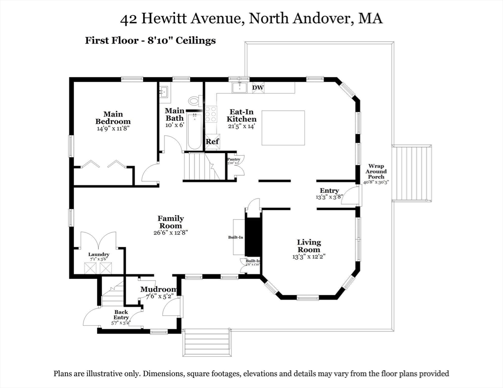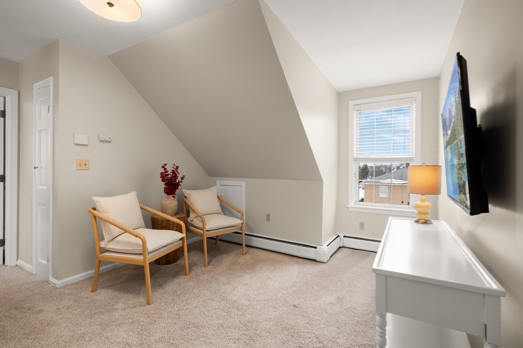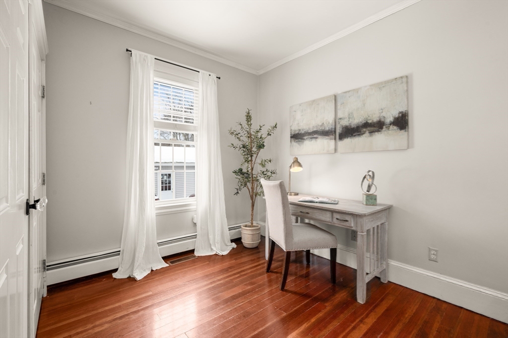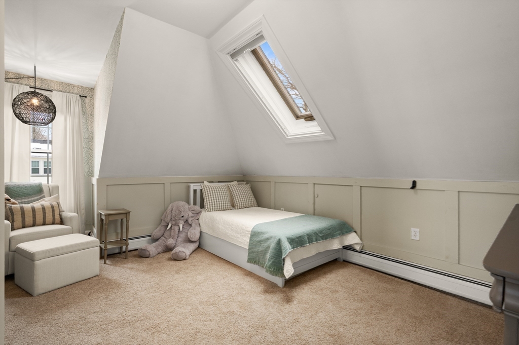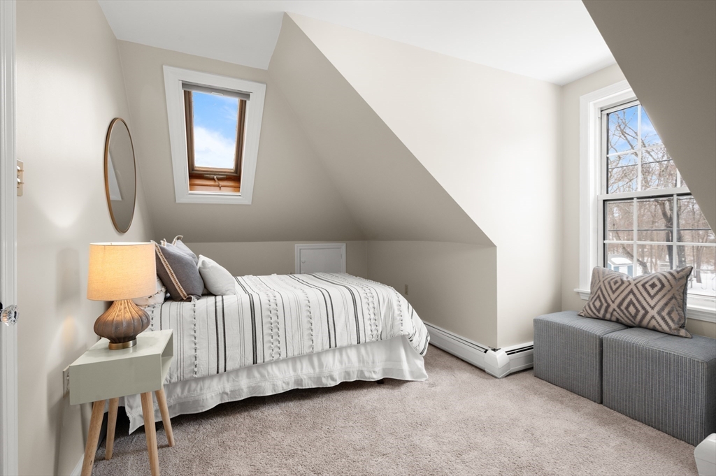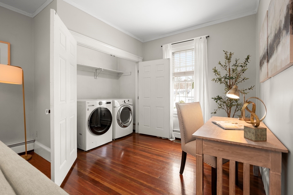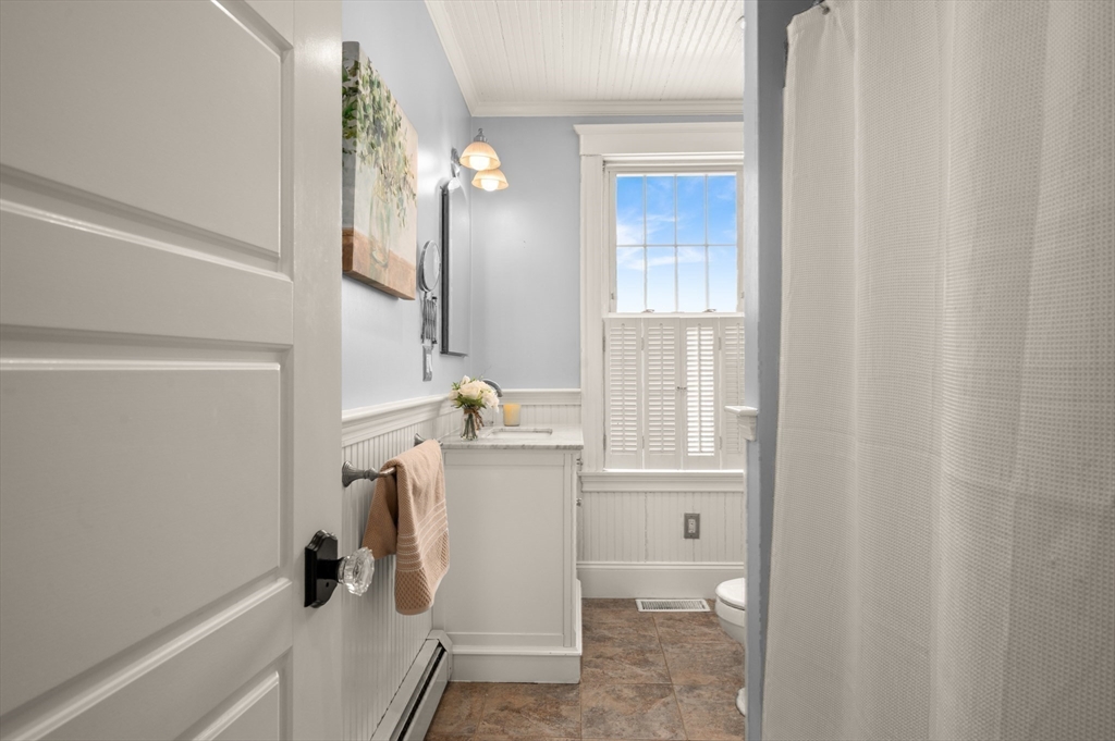 Charming bungalow with beautiful, modern updates and sunny, wrap-around porch near North Andover's picturesque Old Center! Showcasing tasteful improvements & gorgeous renovated kitchen, this special residence captivates from entry. Kitchen w/dining area features white marble counters, subway textured tile backsplash, custom island, gold accents & high-quality stainless appliances including premium six burner gas range. Light filled main level welcomes w/gleaming wood floors, stylish lighting, chic accent wallpaper & thoughtful details. Convenient first floor primary, spacious family room, full bath, laundry & mudroom highlight functional main level layout. Second floor offers bonus room, two more bedrooms & another full bath. Recently converted to natural gas, home offers new boiler, tankless water heater, central air & new PVC pipes. Vinyl siding & composite porch & fence provide ease of living. Enviable curb appeal & desirable location w/sidewalks to town common & quaint Old Center!