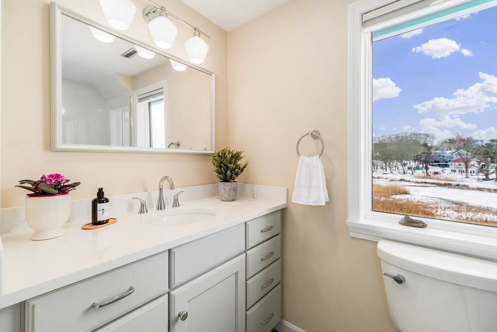 Enjoy the best of Cape Ann! Having undergone a complete interior and exterior transformation, this rare residence defines the modern Gloucester aesthetic. Unlike anything else in this coveted complex, the home has received a comprehensive "2026 facelift"—featuring a designer kitchen, spa-inspired bathrooms, and high-end finishes. It is, quite simply, in the finest condition of any ONF unit to ever hit the market- like new construction. Nestled in a private setting just a short walk or drive to famed Good Harbor Beach, the home offers serene marsh and ocean views. Start your mornings at the quartz breakfast bar watching local birdlife, sit out on the deck to watch the ocean or retreat to the third-floor office/bedroom where the ocean views provide the ultimate backdrop for remote work. The second floor is anchored by a completely refurbished primary suite. Need more space? The expansive lower level can be spacious guest quarters, a high tech media room or whatever suits your needs.