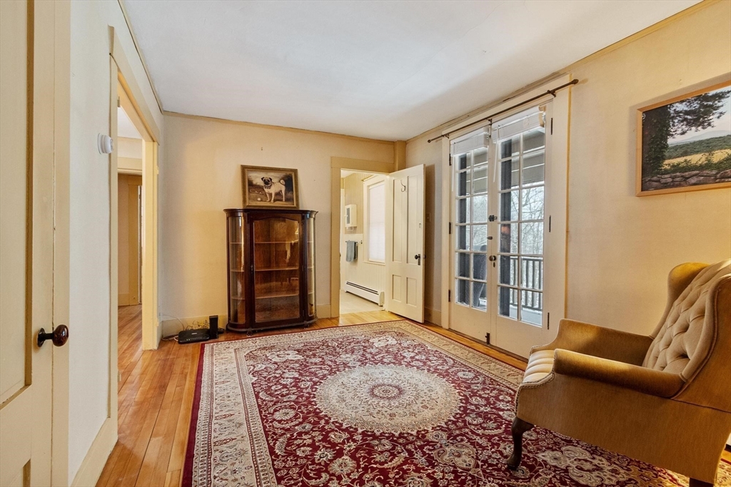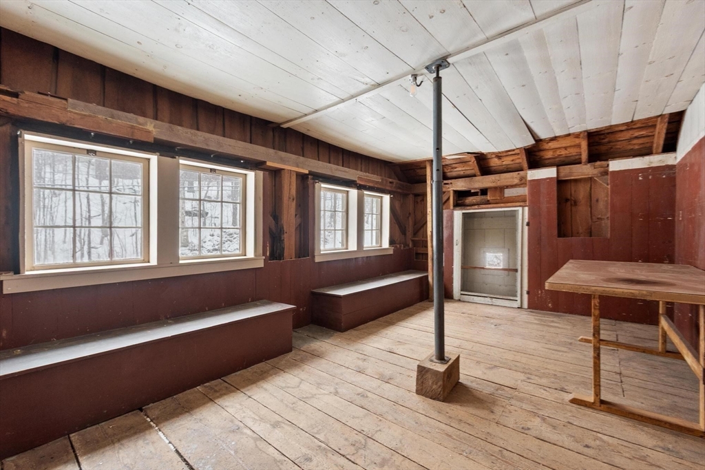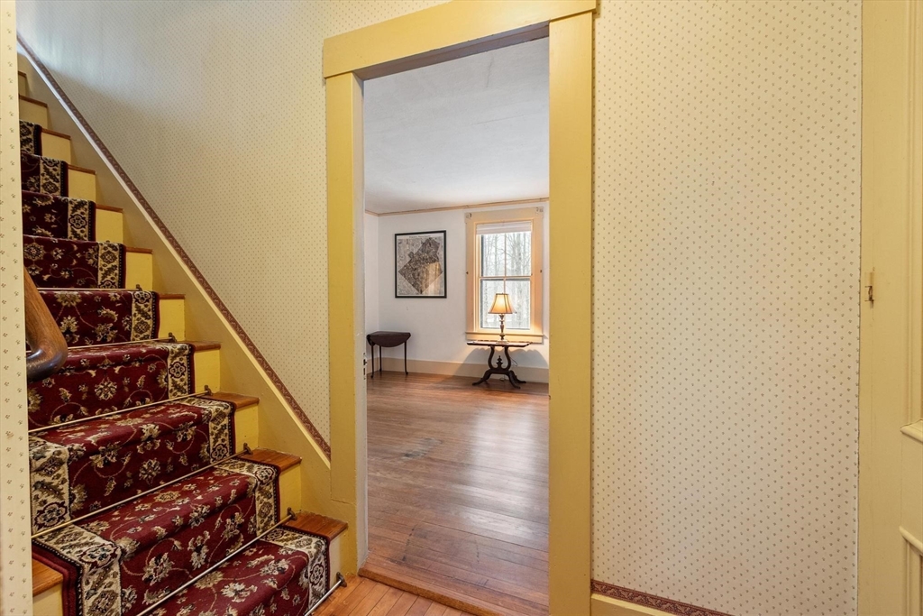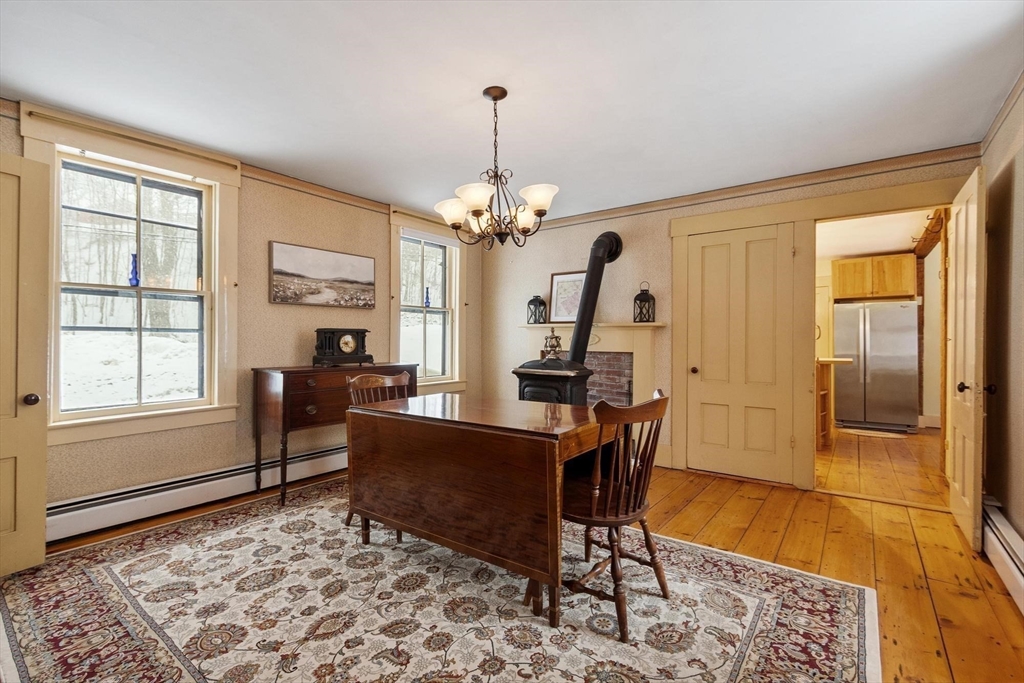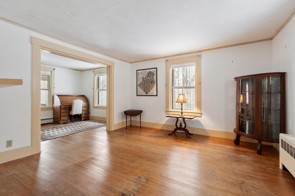Originally a schoolhouse moved to this spot in 1834, this antique 4BR/2BA home has all the character you'd expect — hardwood & wide pine flooring, a 52' back porch, and a 36'x20' barn full of potential. The kitchen was updated in 2016 w/hickory cabinets, quartz counters, and a 6-ft island. The front-to-back family room has been used as a first floor bedroom — perfect for single-level living. Mt. Wachusett is minutes away for skiing & hiking, and you're steps from the town library, bandstand, town hall, and the existing & proposed public safety complex. The tennis community is active, high-speed internet keeps you connected, and Worcester is just 17 miles south. Thomas Prince's STEAM program (K-8) rounds out the appeal. This home will resonate w/ buyers who value historic character and see the possibilities in the barn — artist studio, workshop, or potential ADU conversion under new state law. Title 5 inspection will be done when the weather cooperates. 4 bedroom septic replaced 2013.