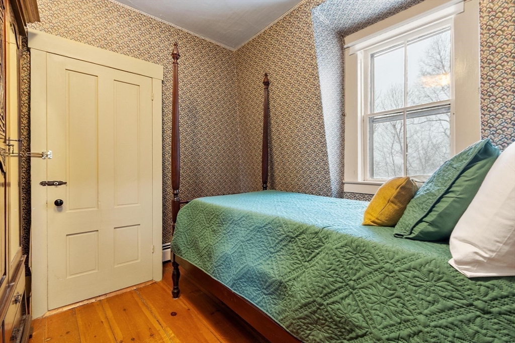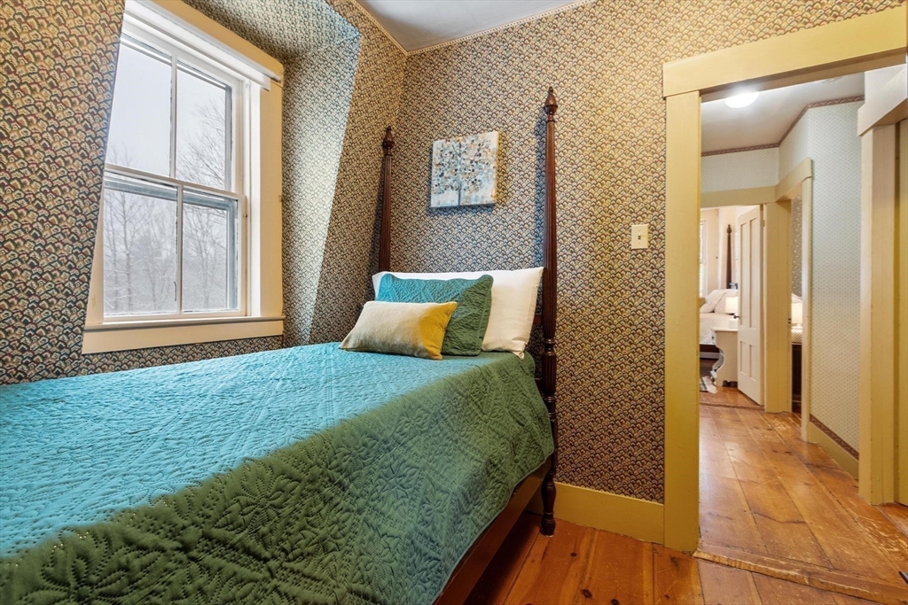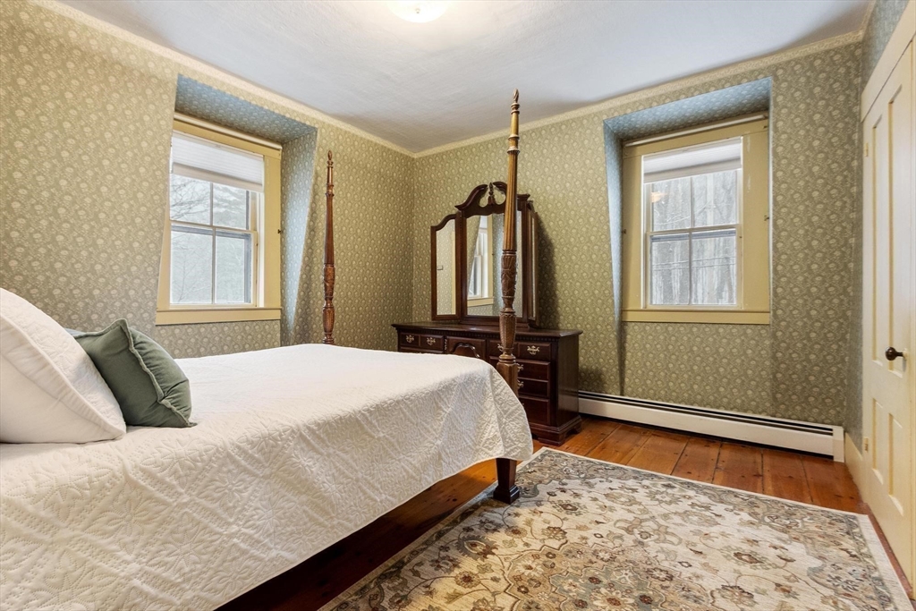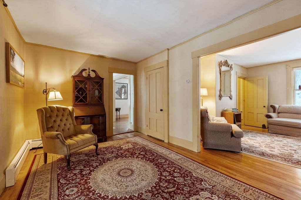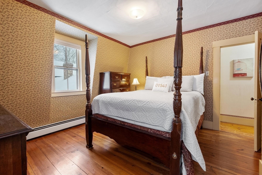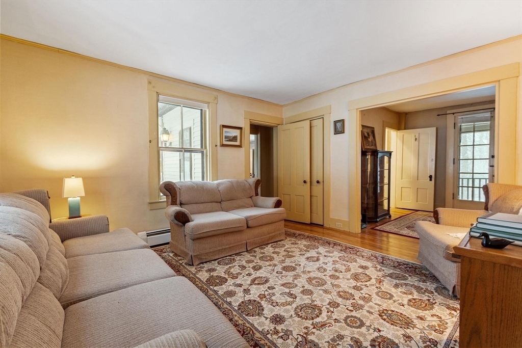 Originally a schoolhouse moved to this spot in 1834, this antique 4BR/2BA home has all the character you'd expect — hardwood & wide pine flooring, a 52' back porch, and a 36'x20' barn full of potential. The kitchen was updated in 2016 w/hickory cabinets, quartz counters, and a 6-ft island. The front-to-back family room has been used as a first floor bedroom — perfect for single-level living. Mt. Wachusett is minutes away for skiing & hiking, and you're steps from the town library, bandstand, town hall, and the existing & proposed public safety complex. The tennis community is active, high-speed internet keeps you connected, and Worcester is just 17 miles south. Thomas Prince's STEAM program (K-8) rounds out the appeal. This home will resonate w/ buyers who value historic character and see the possibilities in the barn — artist studio, workshop, or potential ADU conversion under new state law. Title 5 inspection will be done when the weather cooperates. 4 bedroom septic replaced 2013.