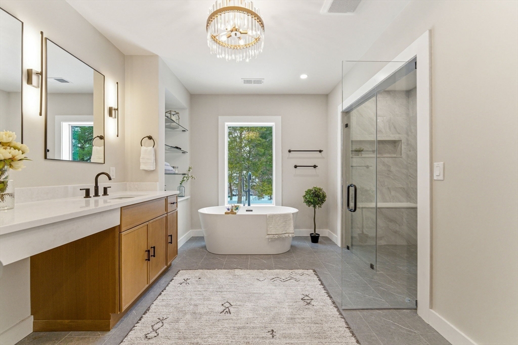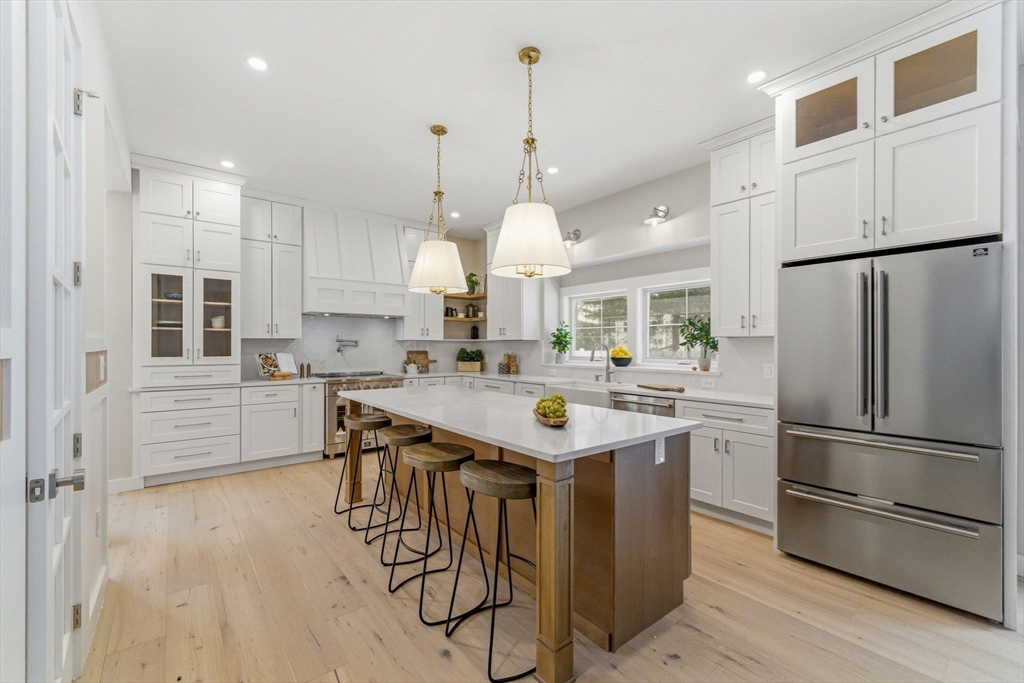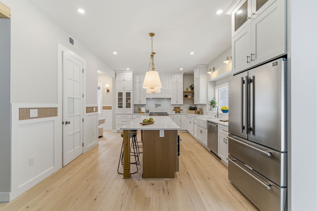 Introducing 54 Pilgrim Rd, Natick — a beautifully rebuilt residence offering the comfort and style of nearly new construction with exceptional craftsmanship throughout. This impressive home features 5 spacious bedrooms, a dedicated office, and 3.5 bathrooms, including en-suite bedrooms on both the first and second floors for flexible living. The open layout is enhanced by soaring 10-foot ceilings, abundant natural light, and elegant custom finishes. The chef’s kitchen features high-end stainless-steel appliances and custom cabinetry, flowing seamlessly into generous living and dining areas ideal for entertaining. An additional flex room offers space for a playroom, gym, media room, or workspace. Outside, enjoy a flat fully fenced backyard perfect for gatherings and outdoor activities, along with the convenience of a two-car garage. A rare move-in ready opportunity combining modern design, quality construction, and a prime Natick location just minutes from Natick Center.