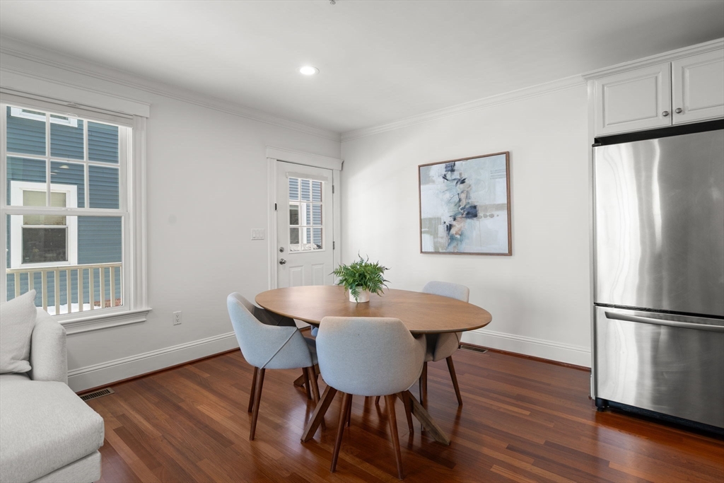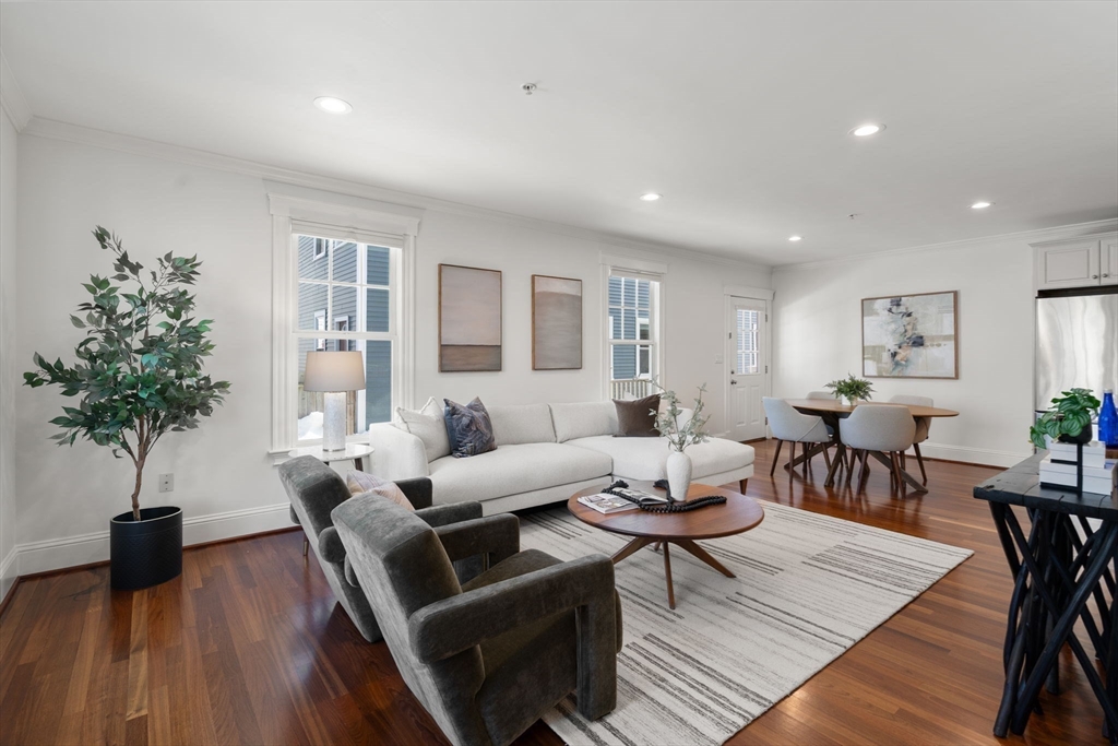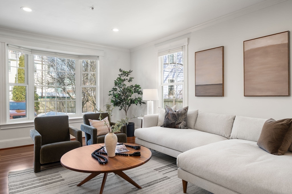 Townhouse ideally positioned between Inman & Union Sq, set back from the street, this beautifully designed 3 bed, 2.5 bath home offers refined urban living within a boutique assoc. Sun filled main level features an open living & dining area framed by bay windows, crown molding, recessed lighting & wood floors, flowing seamlessly into a thoughtfully designed kitchen that anchors the home for effortless entertaining. 2nd level incl 2 spacious bedrooms, a full bath & convenient in unit laundry, while the top floor is dedicated to a serene primary retreat w/ soaring ceilings, skylight, gas fireplace, walk-in closet & spa style bath w/ soaking tub & separate shower. Private outdoor space offers morning coffee or relaxed evenings, complemented by central a/c, off street parking & private basement storage. Moments from the Union Sq Green Line, cafes, acclaimed restaurants, markets, Harvard, MIT & Kendall Sq, this home delivers a rare blend of comfort, design & location in vibrant Somerville
