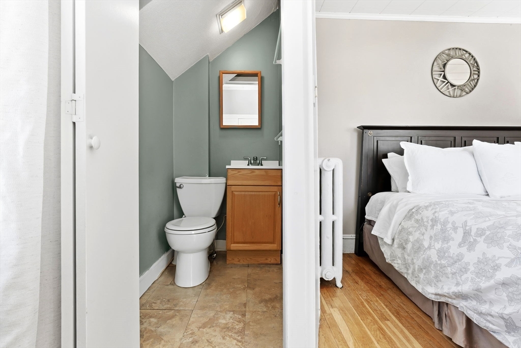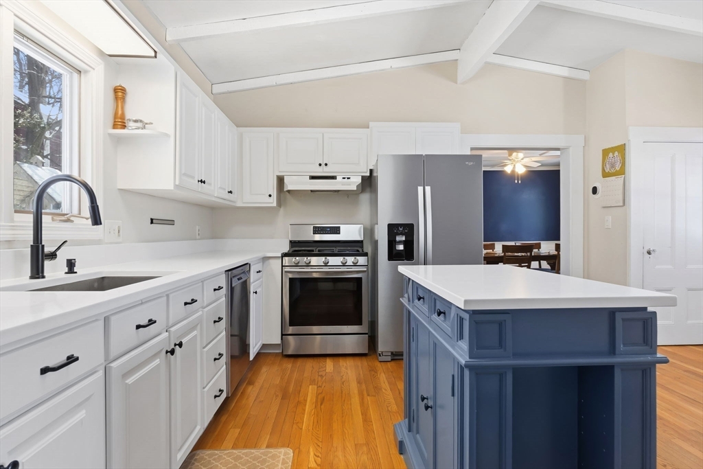 Nestled on a quiet dead-end street, this sun-drenched home blends timeless charm with modern updates and an airy, open feel. Soaring ceilings and gleaming hardwood floors enhance the natural light filling the welcoming living room, perfect for everyday living and effortless entertaining. The formal dining room impresses with elegant coffered ceilings, ideal for holidays and special gatherings. The updated eat-in kitchen features crisp white cabinetry, quartz countertops, a center island, and abundant storage for easy family living. Upstairs are three generously sized bedrooms and a convenient half bath. The lower level includes a spacious basement with excellent storage and a flexible bonus room, ideal for a home office, playroom, gym, or creative studio. Outside, enjoy a charming backyard with patio and green space and a spectacular view of the sunset. Comfort, style, and functionality shine in this peaceful Stoneham setting, ready to welcome you home.