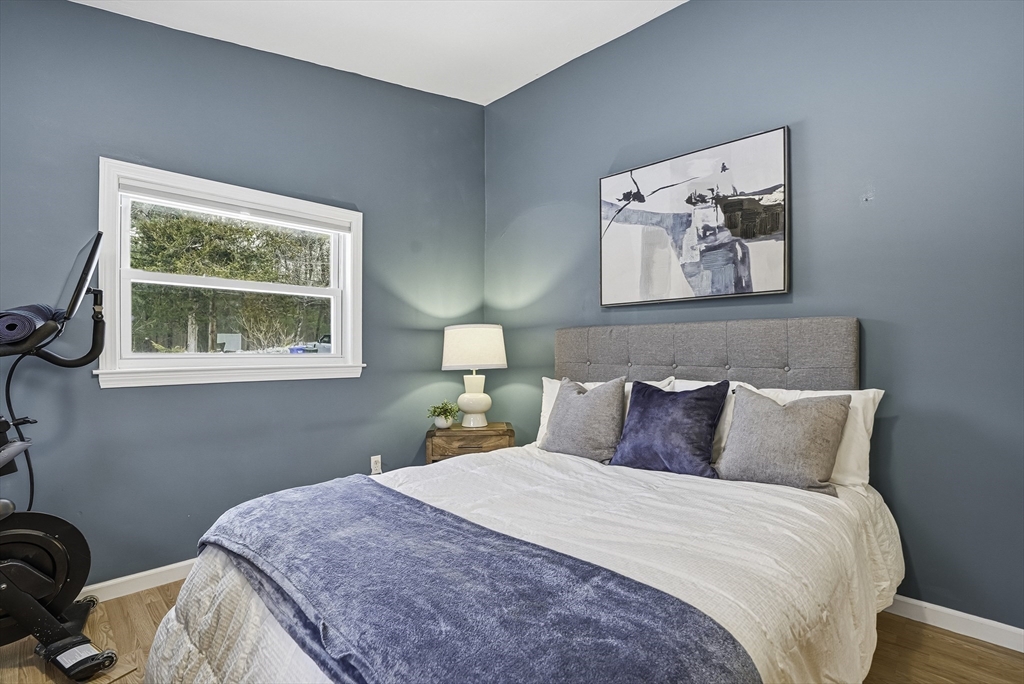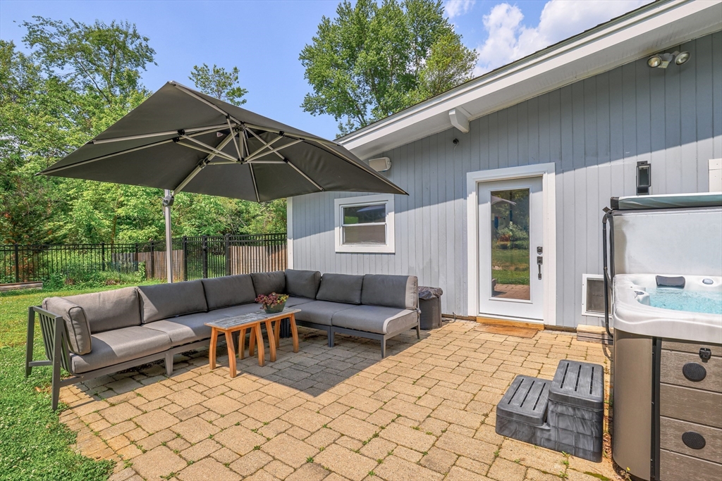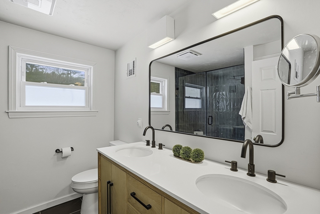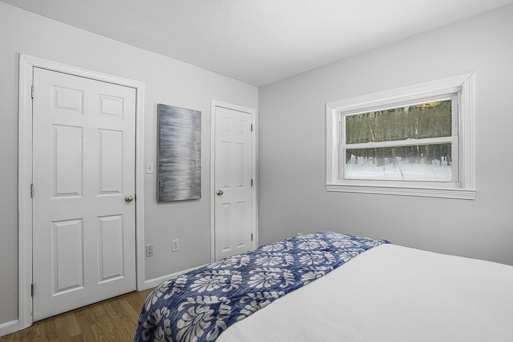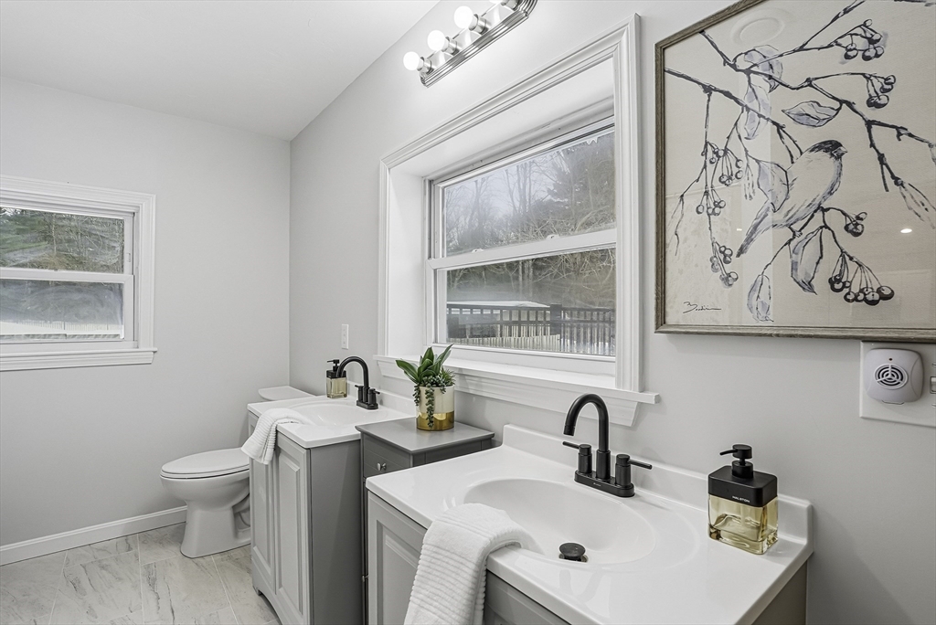 Experience single-level living in this stunning Northeast-facing ranch, gracefully set on 1.5 acres of professionally landscaped, fully fenced grounds. This exceptional property offers the perfect blend of privacy, functionality, & everyday comfort. A thoughtfully redesigned open-concept layout seamlessly connects the kitchen, dining area, & family room, where a soaring vaulted ceiling, statement fireplace, & custom built-ins create a warm yet sophisticated ambiance ideal for entertaining. The beautifully updated white kitchen serves as the heart of the home, showcasing an oversized breakfast island perfect for gatherings, casual dining, and culinary creativity. Three spacious bedrooms, each featuring walk-in closets, provide comfort & functionality. Two amazing baths, one with a dual-sink vanity & designer tiled shower and a brand-new 2nd full bath with dual vanities & tub that adds a spa-inspired touch. Easy access to Ashland commuter rail, I90/495, downtown, top-ranked schools!